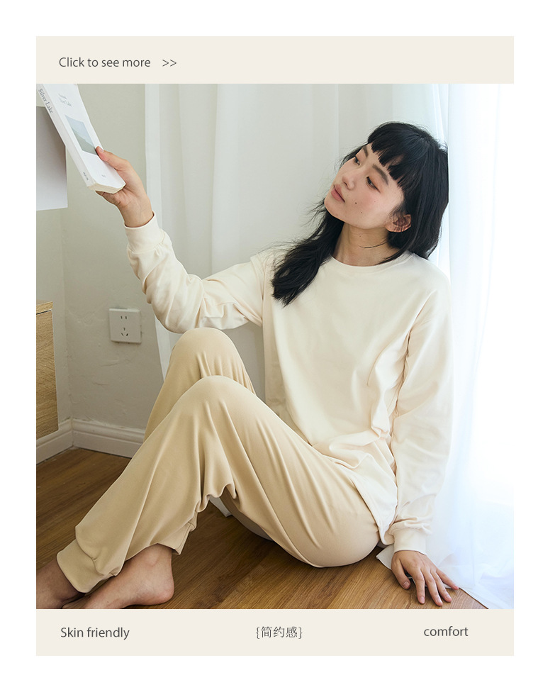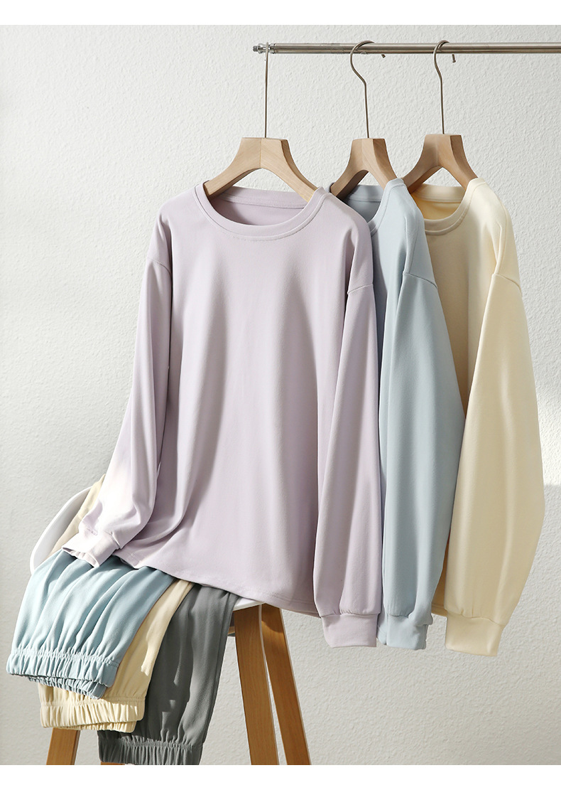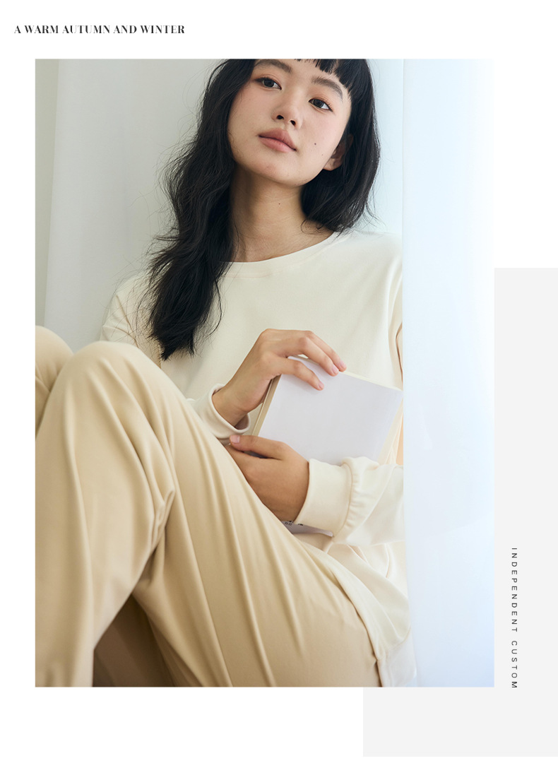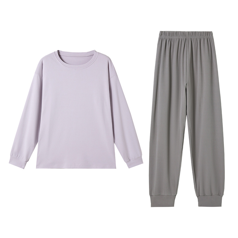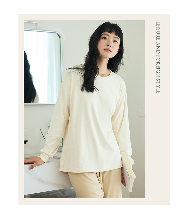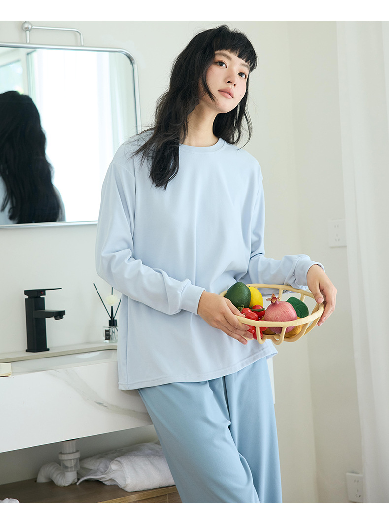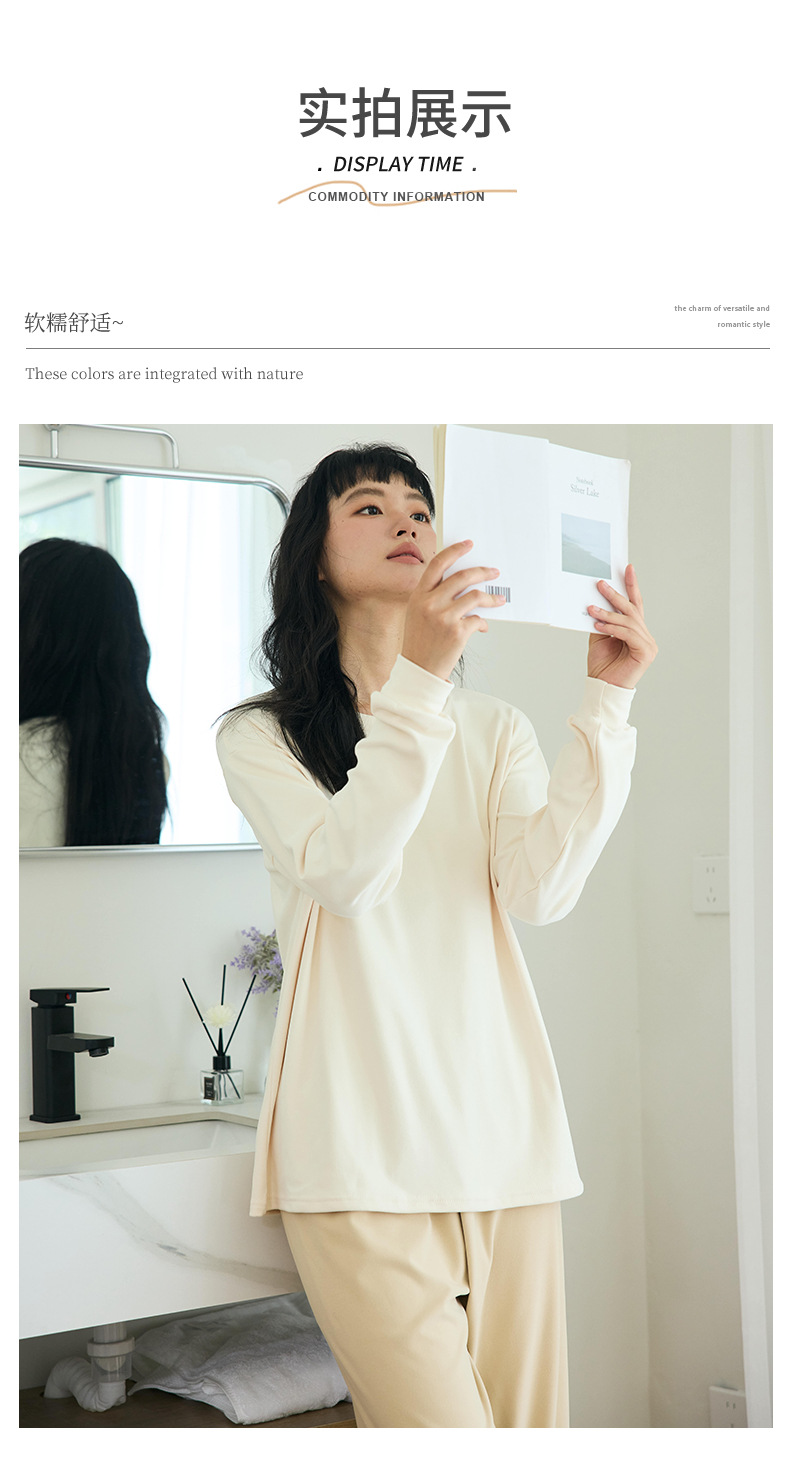 家居服女秋冬撞色套装宽松圆领长袖上衣休闲长裤软糯外穿套头睡衣