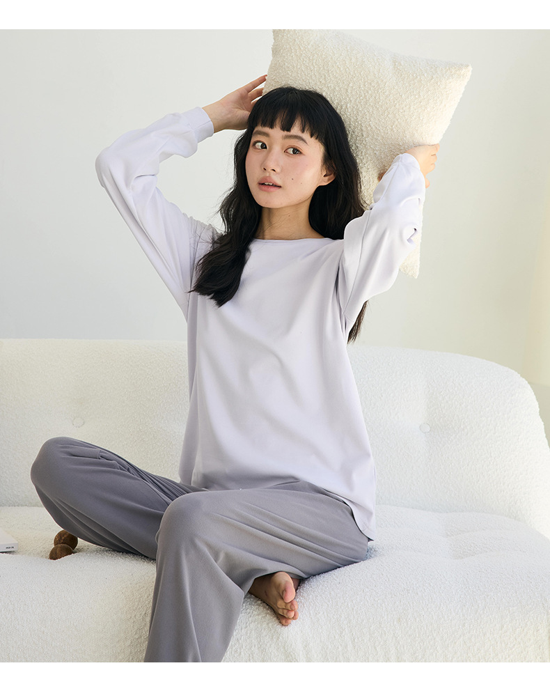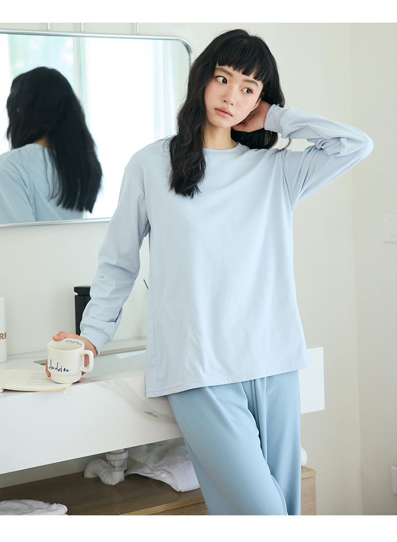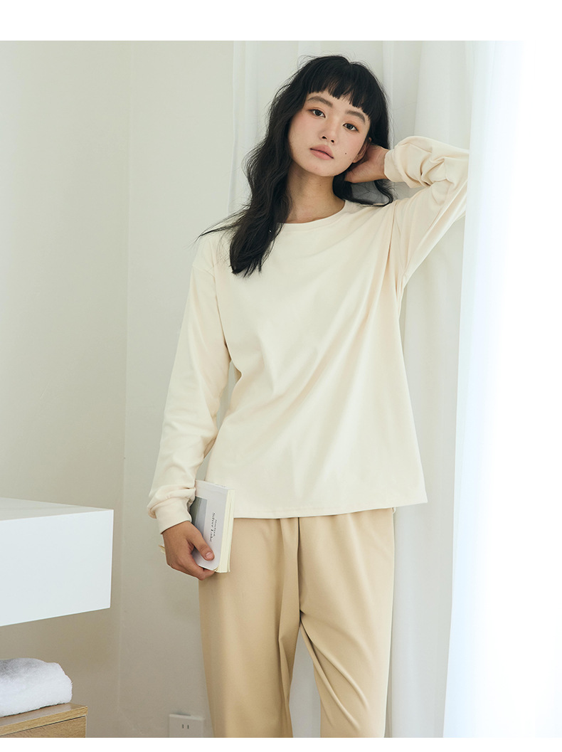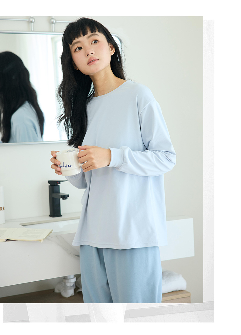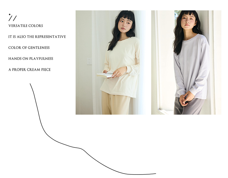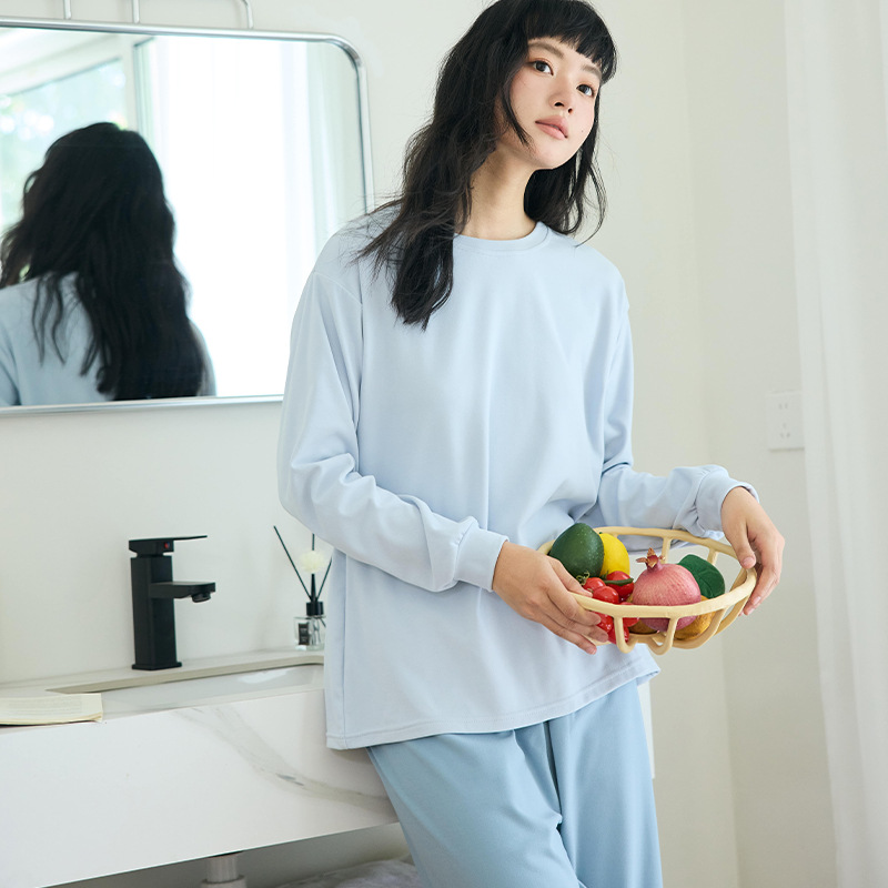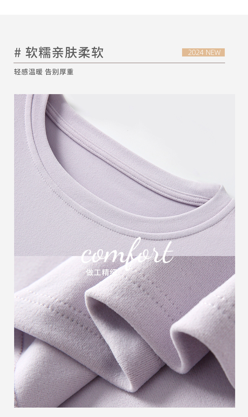 家居服女秋冬撞色套装宽松圆领长袖上衣休闲长裤软糯外穿套头睡衣