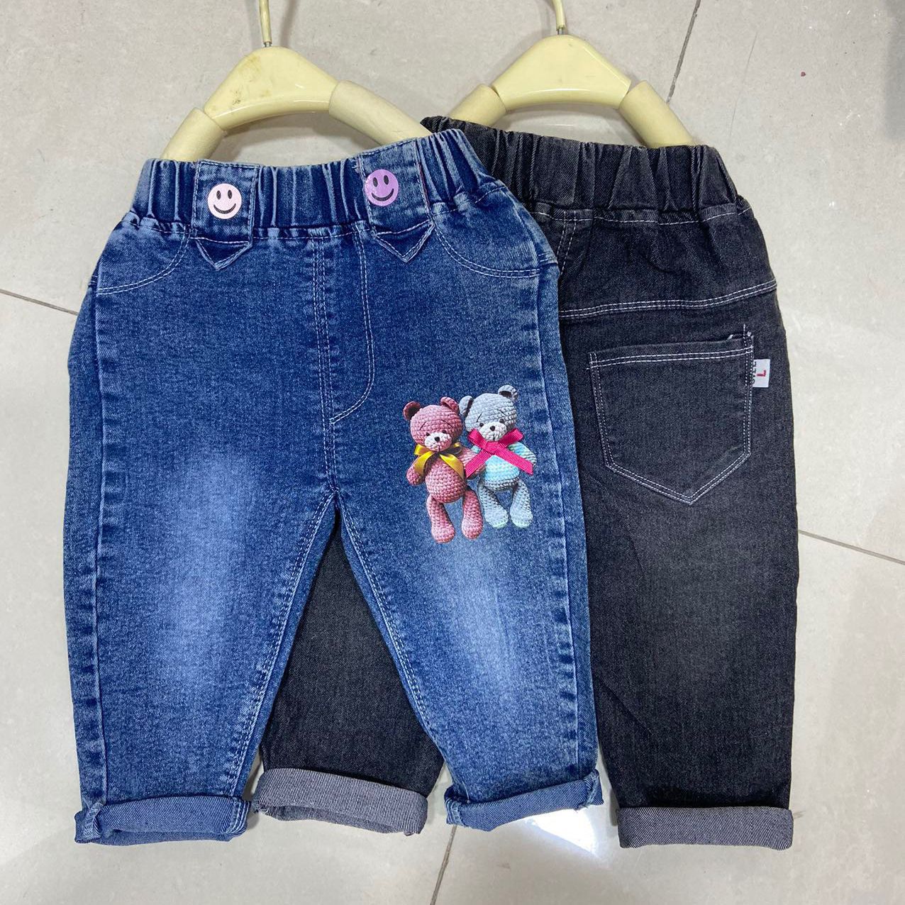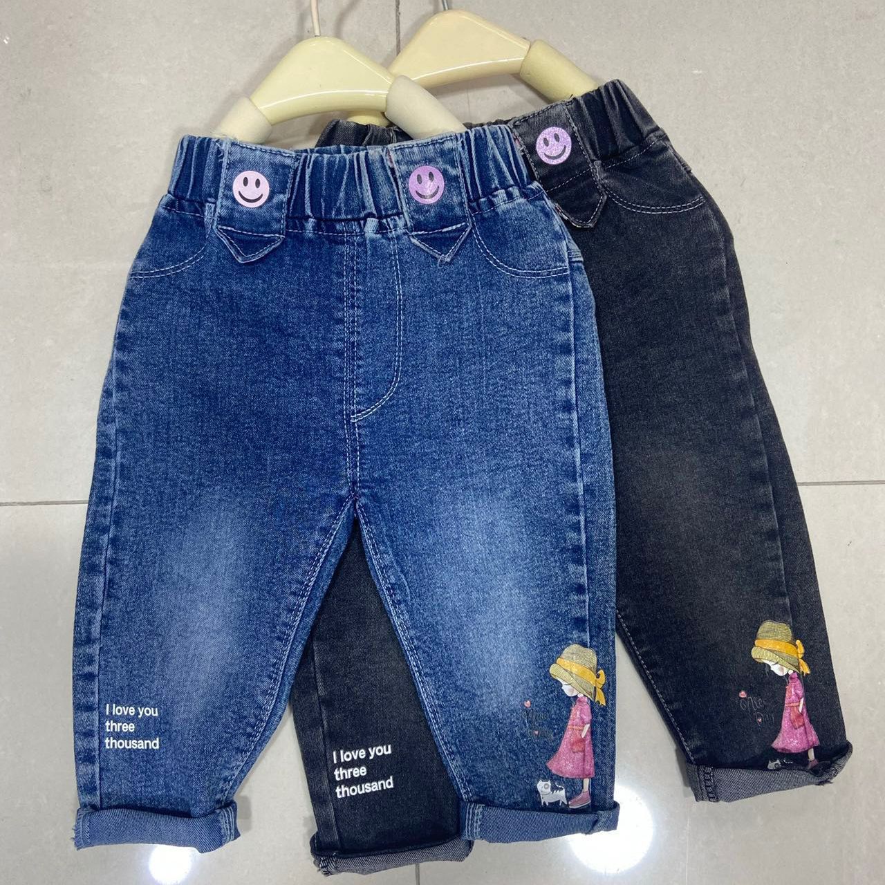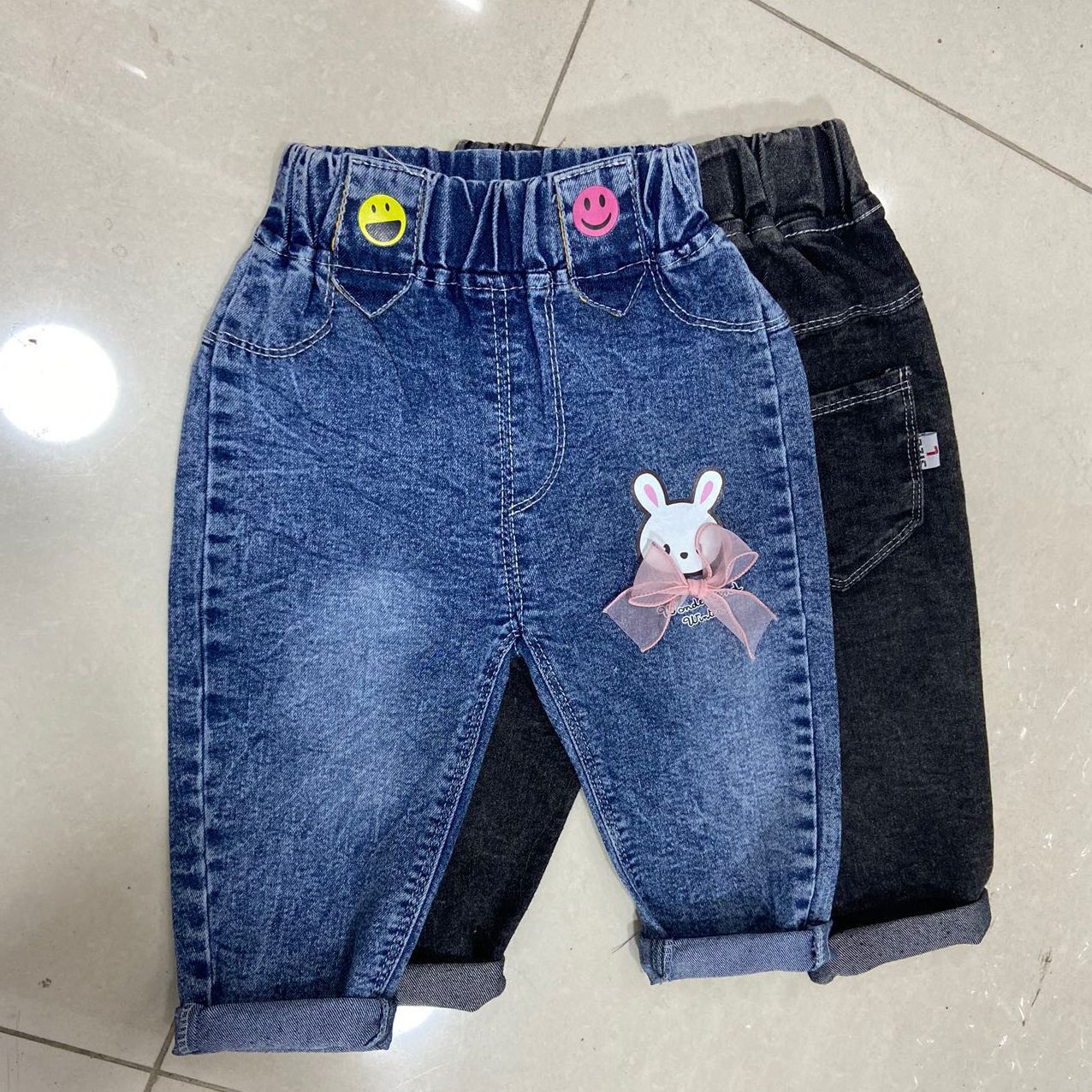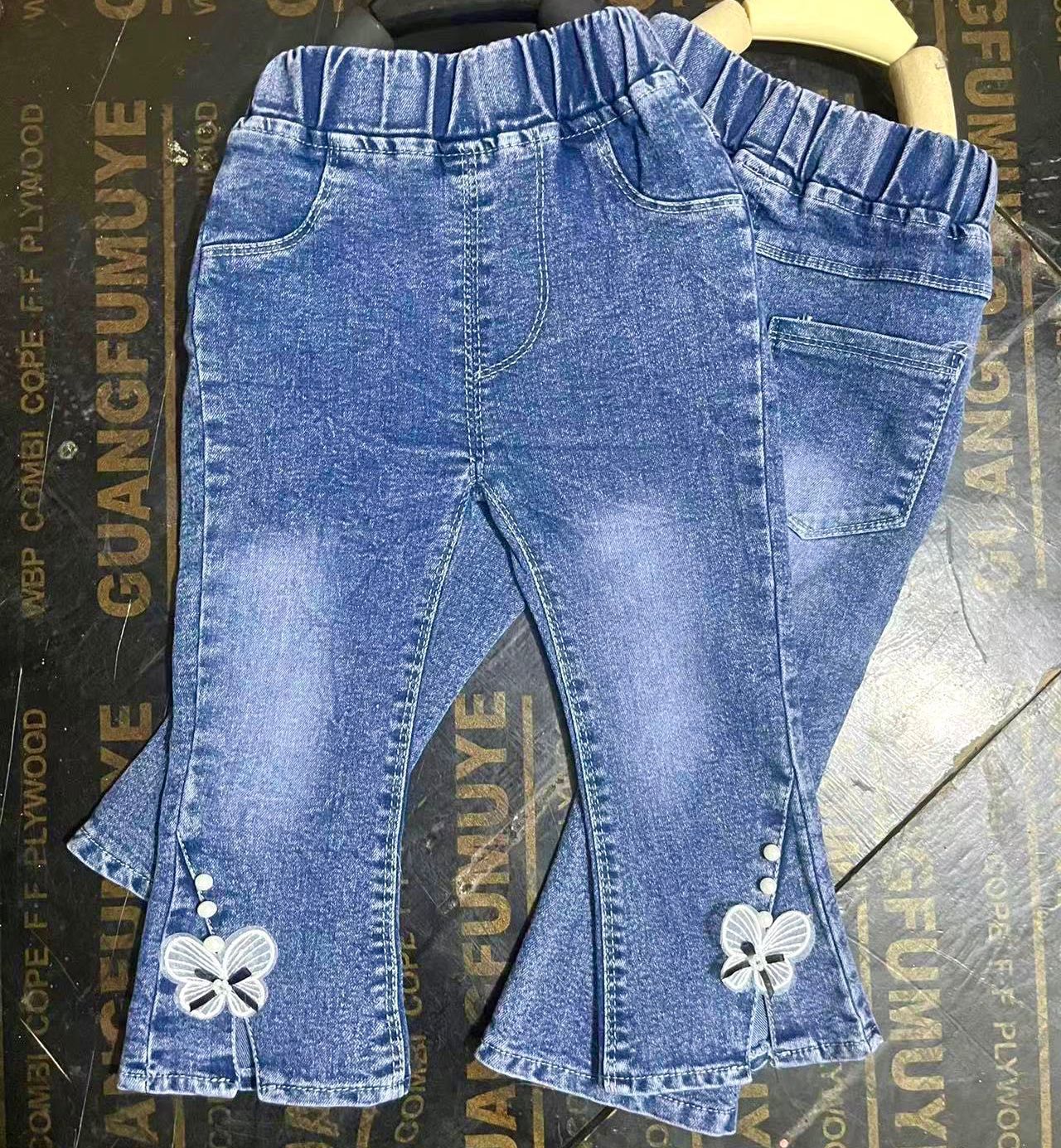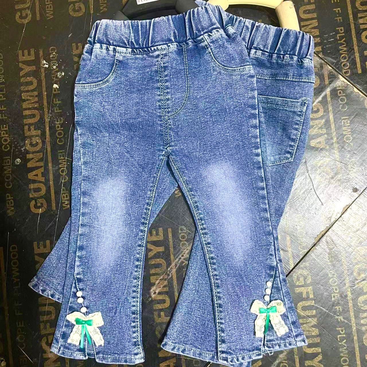 儿童牛仔裤春秋季男孩女孩长裤卡通弹力工装印花中小童宝宝喇叭裤