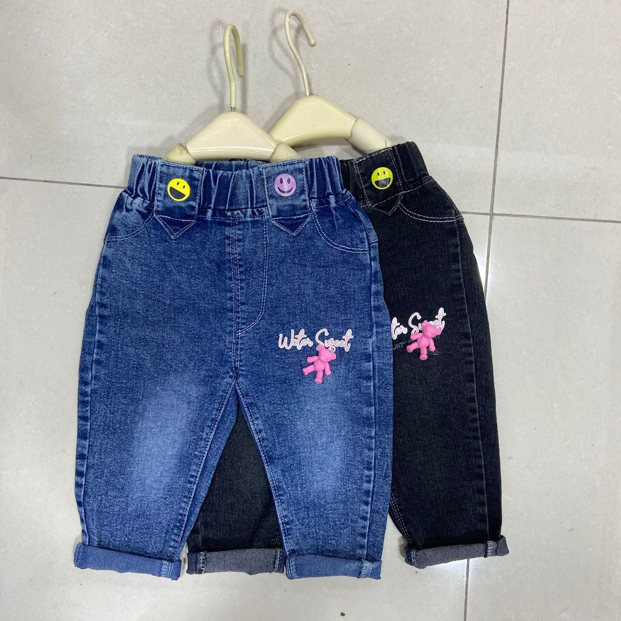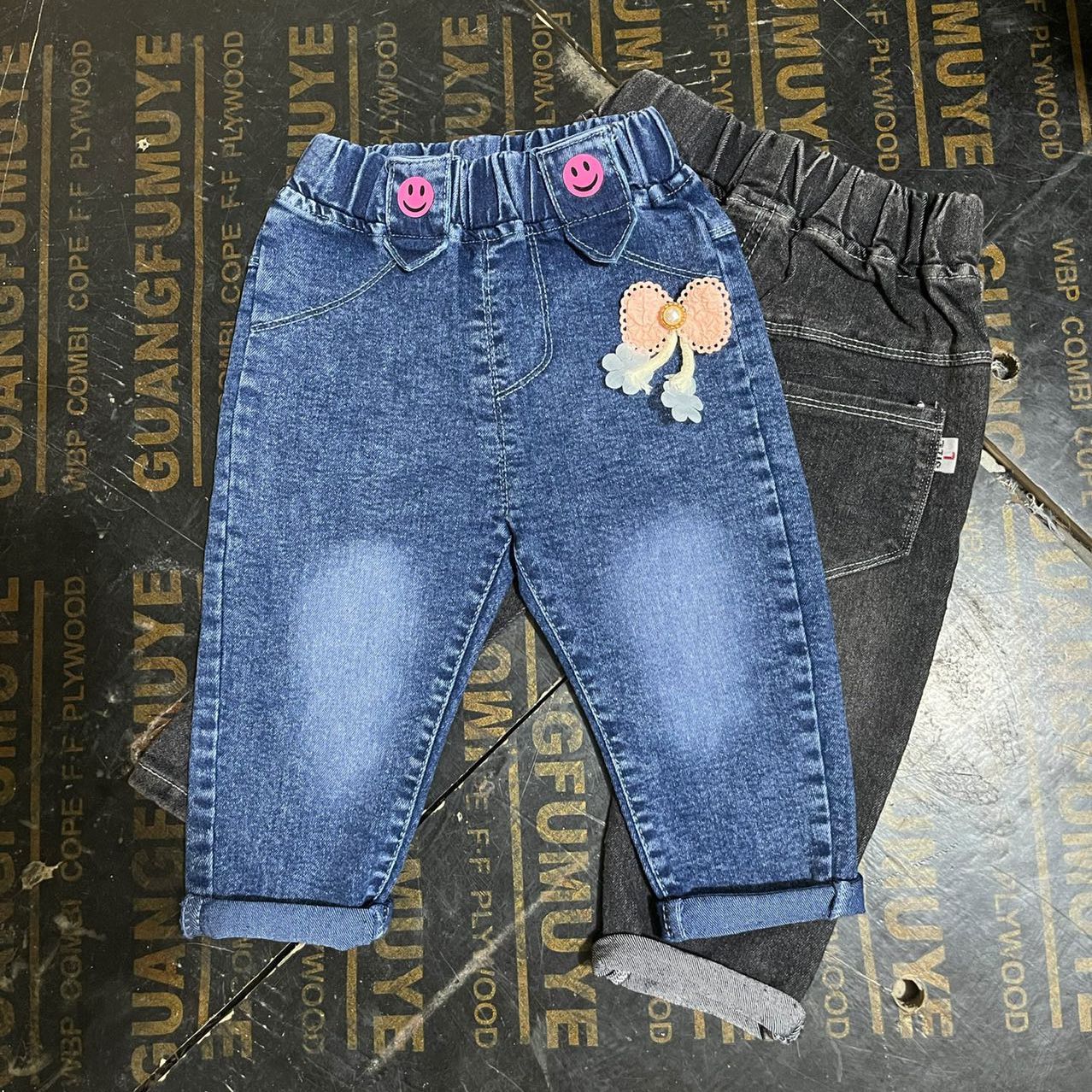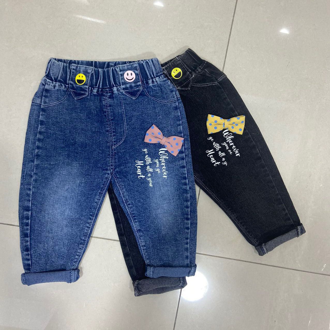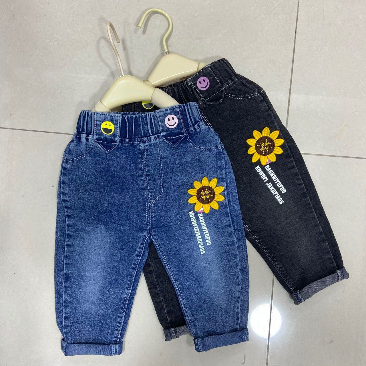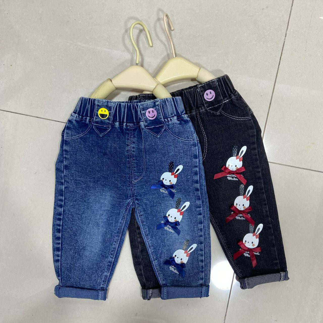 儿童牛仔裤春秋季男孩女孩长裤卡通弹力工装印花中小童宝宝喇叭裤