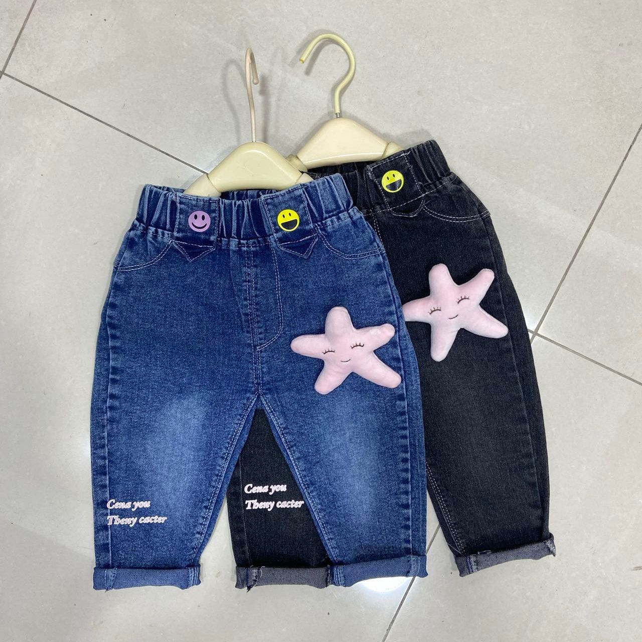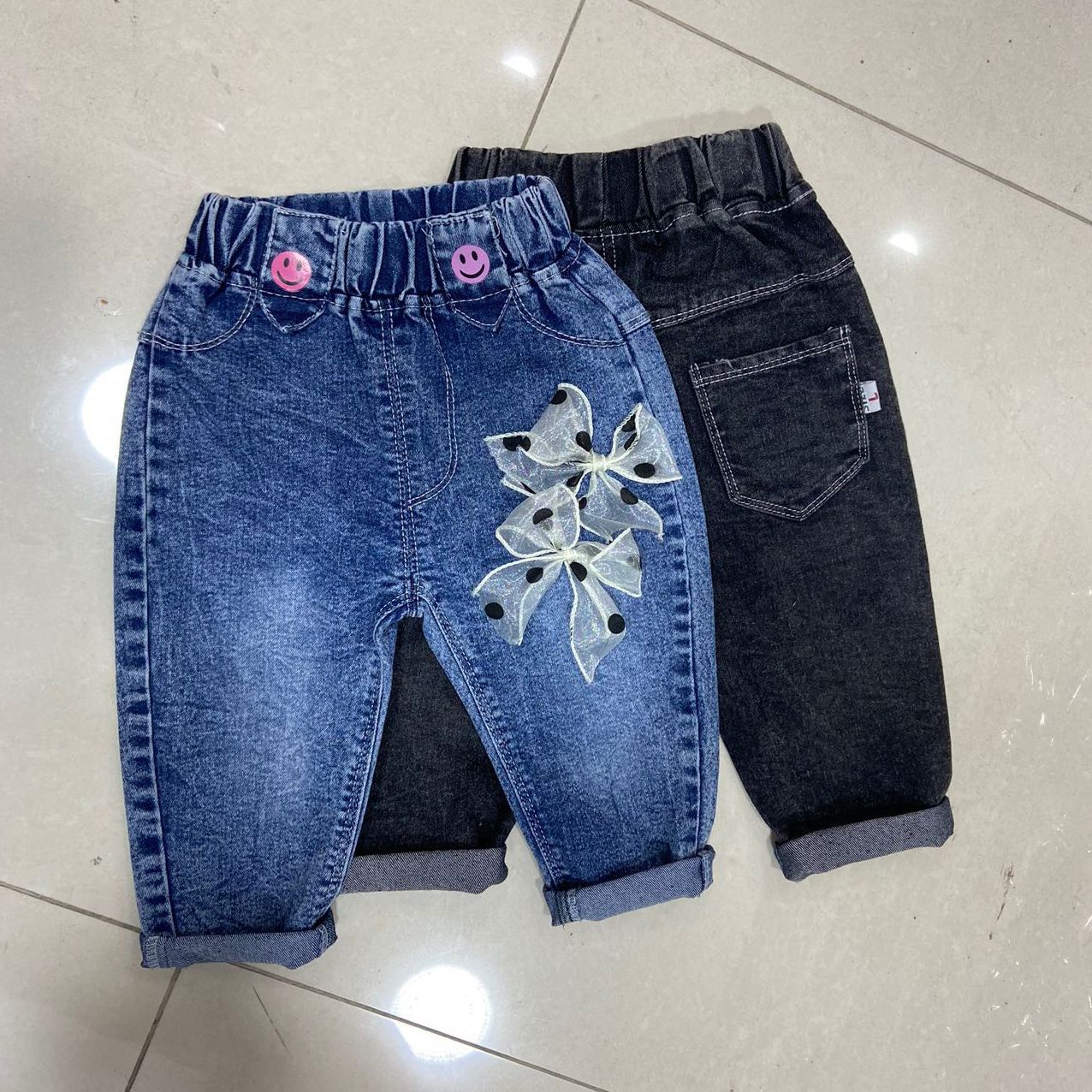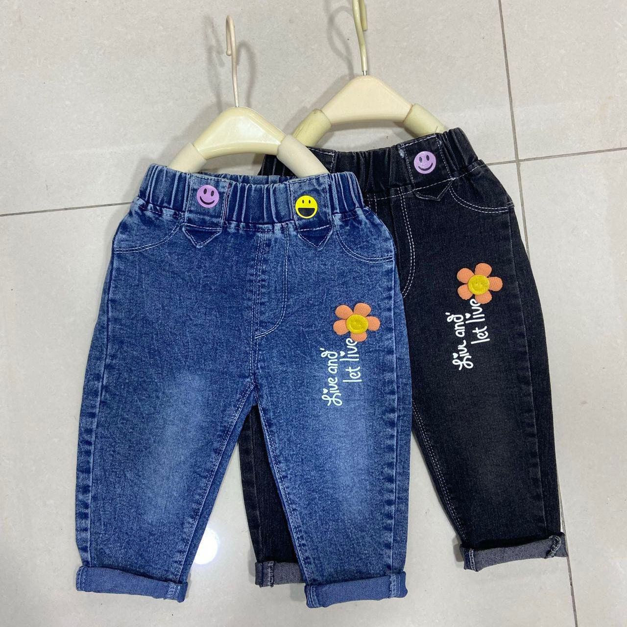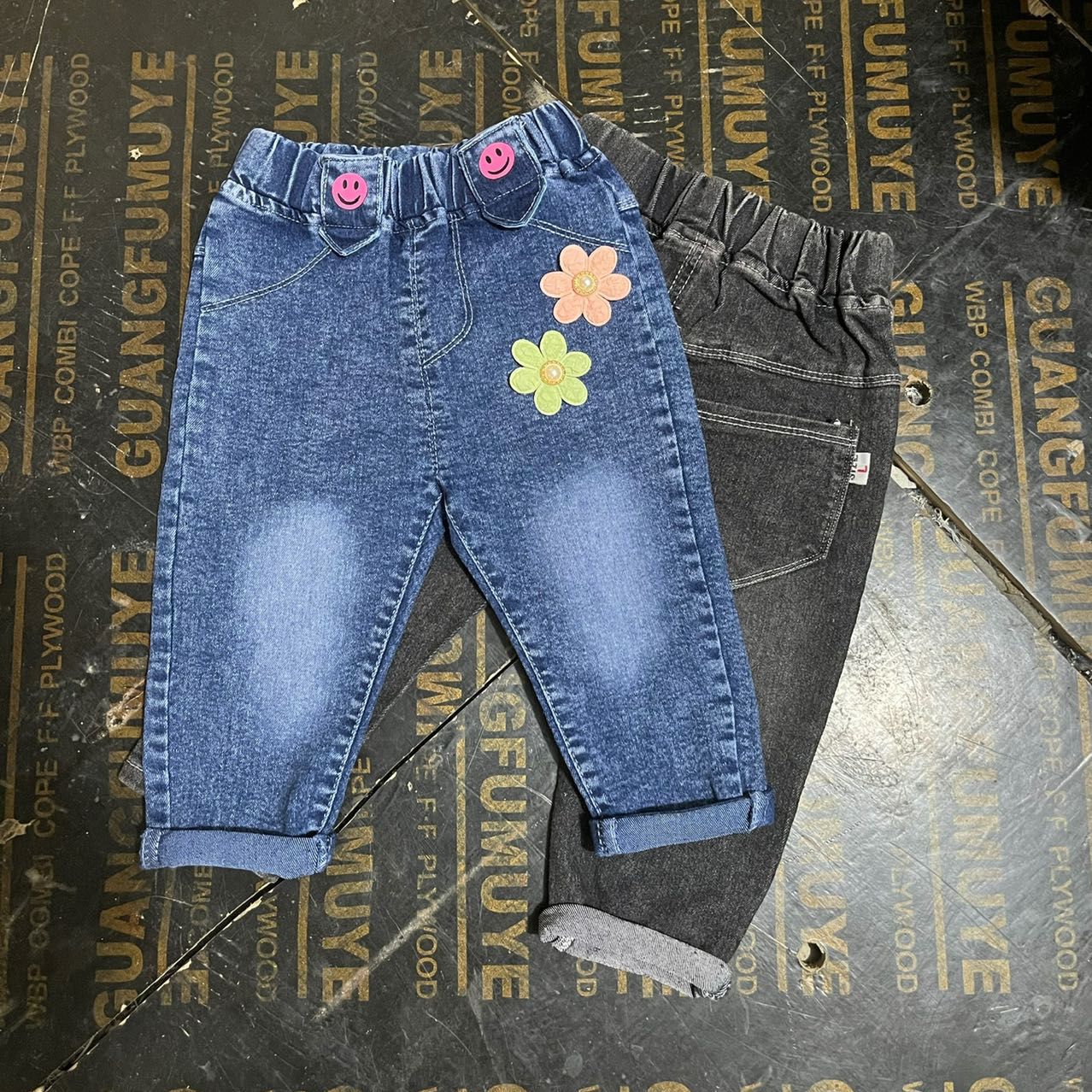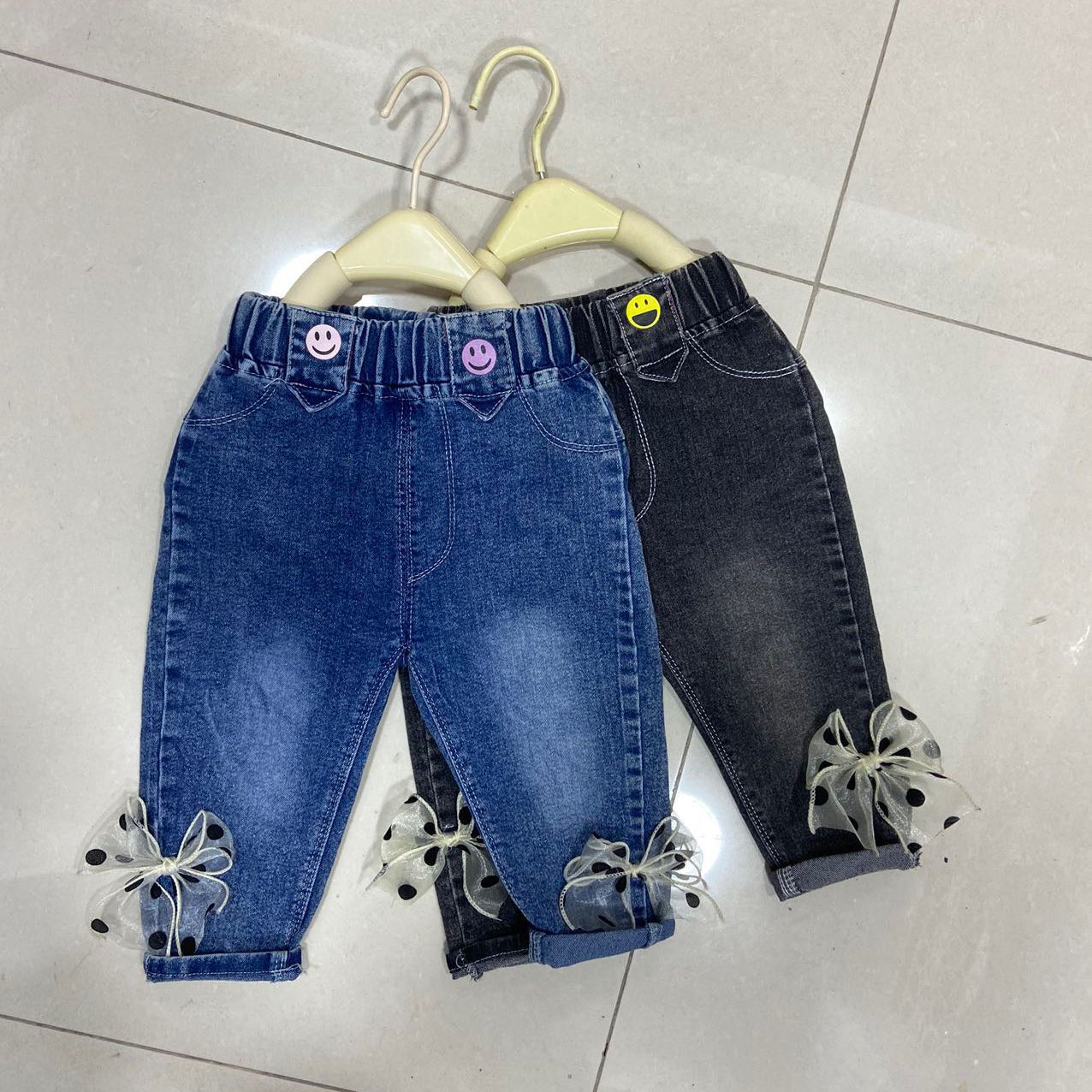 儿童牛仔裤春秋季男孩女孩长裤卡通弹力工装印花中小童宝宝喇叭裤