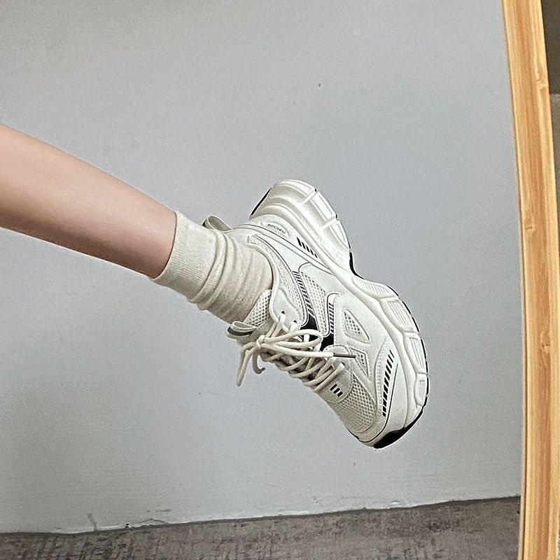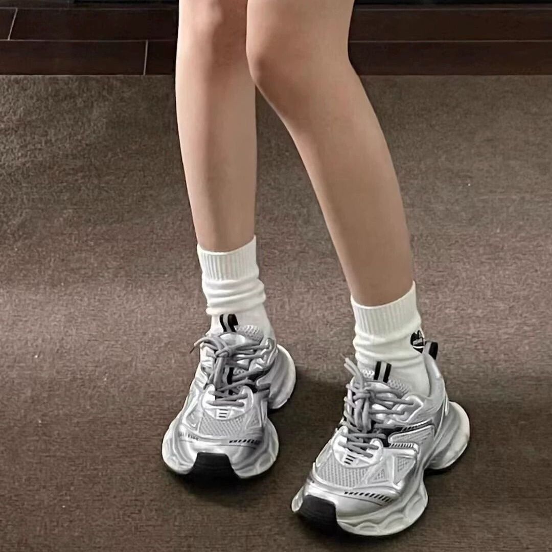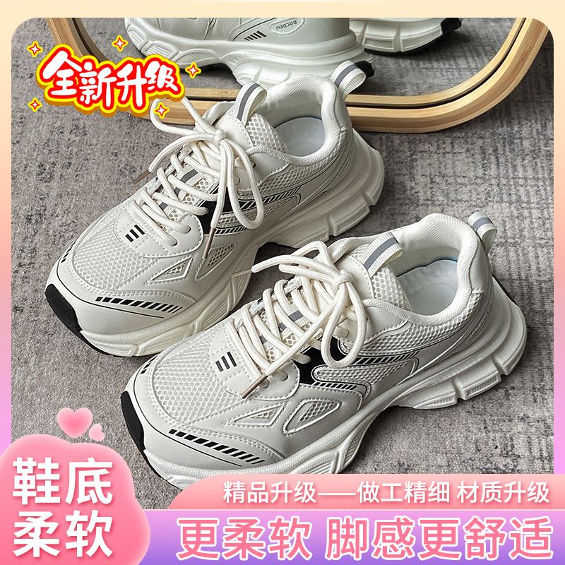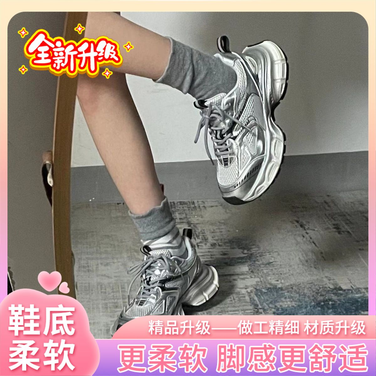 新中式2024新款ins潮厚底银色老爹鞋女春夏轻便运动鞋休闲跑步鞋