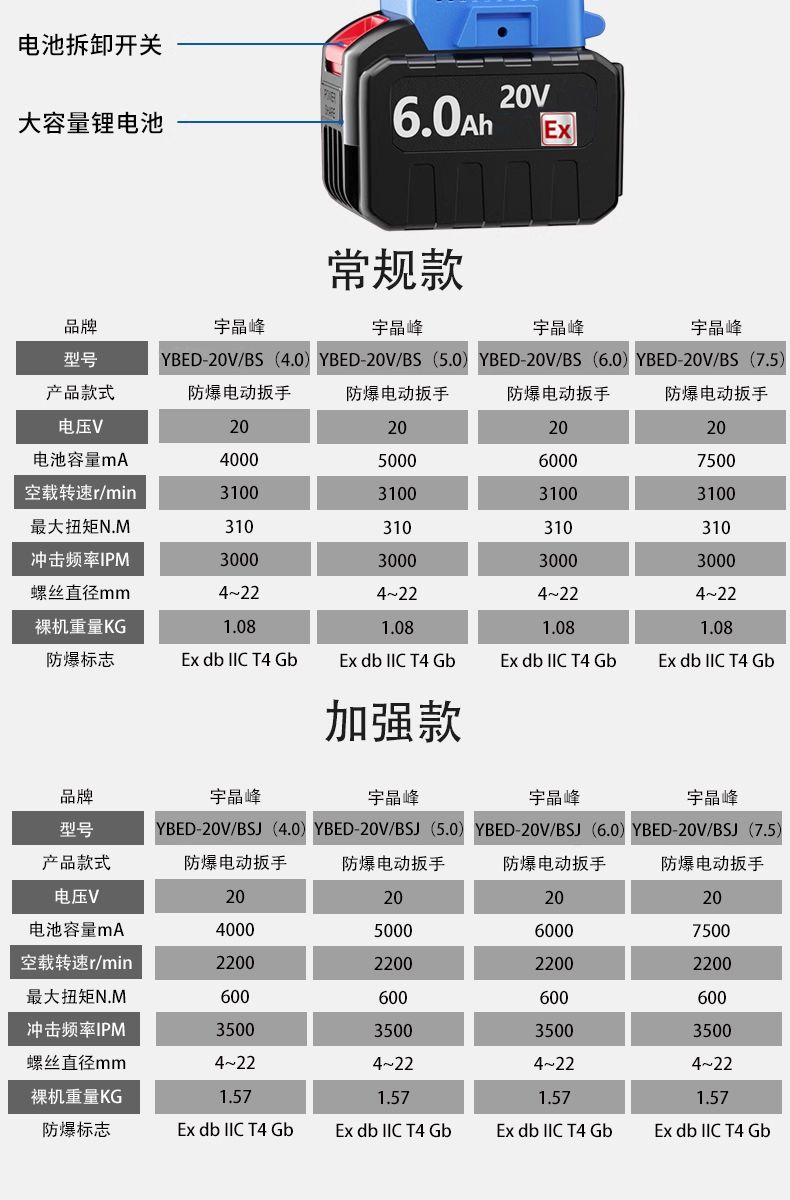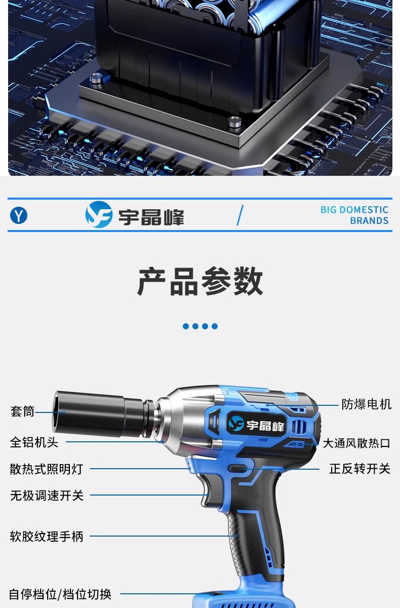 宇晶峰防爆电动扳手锂电池充电式多功能手持工具大扭力无刷电机