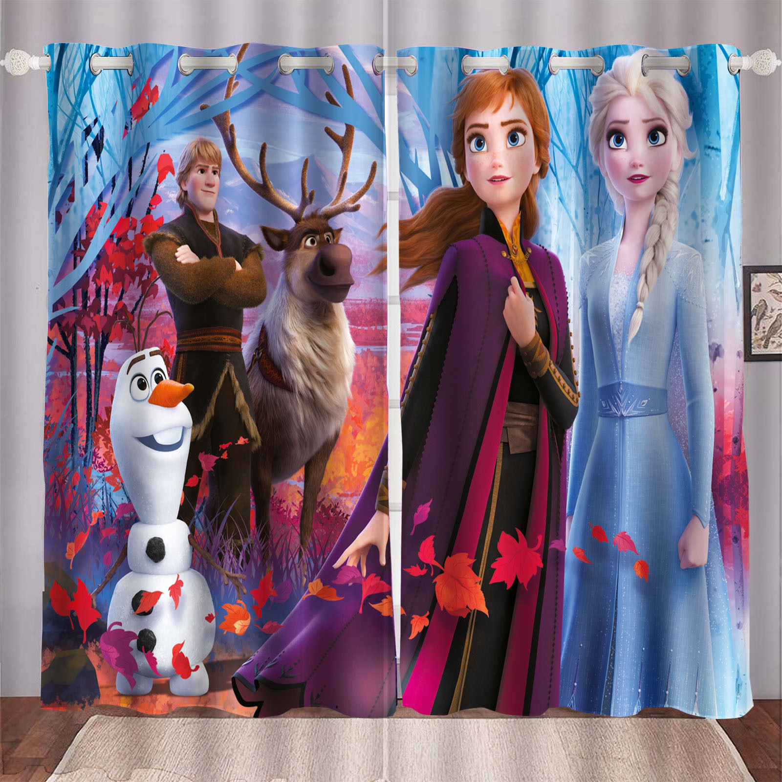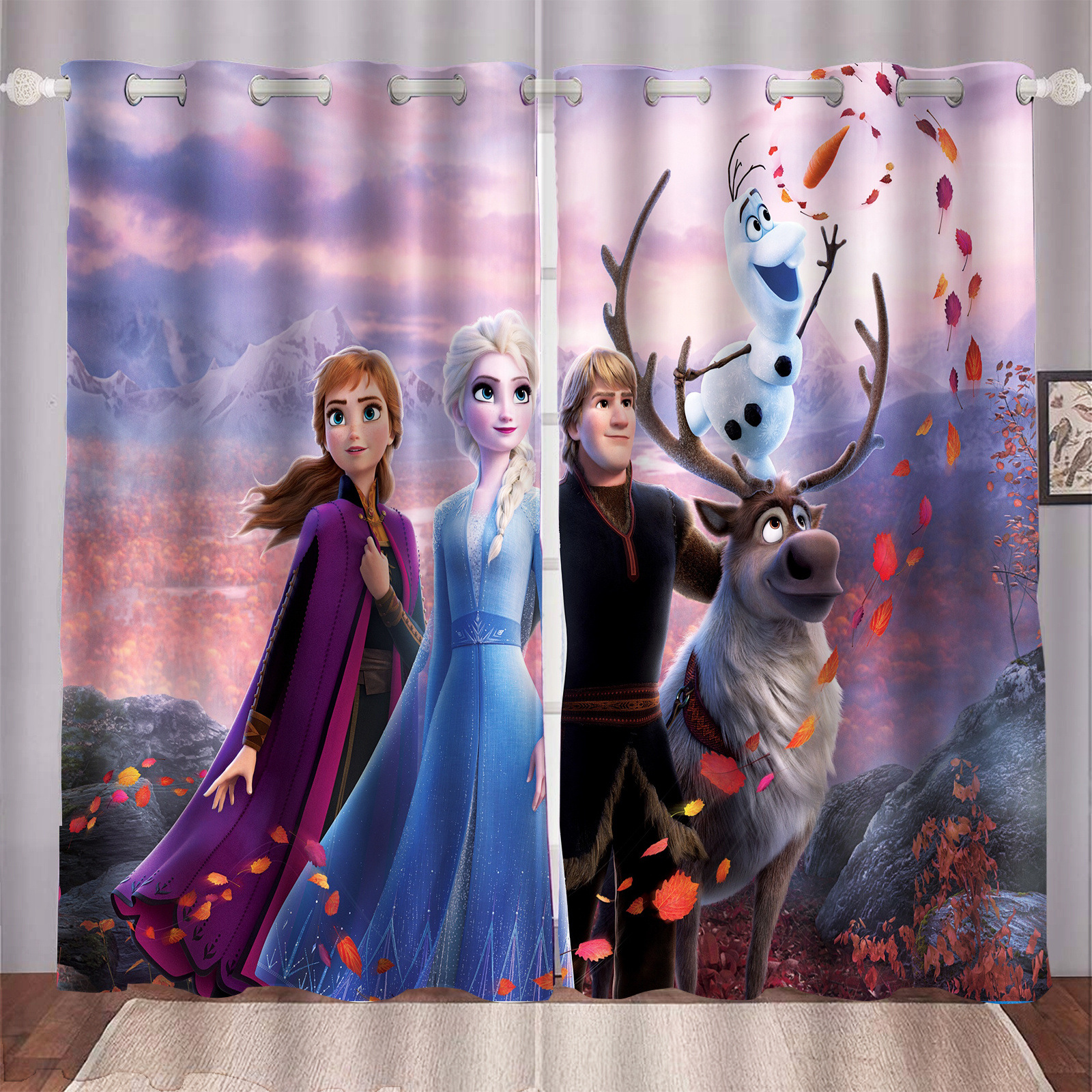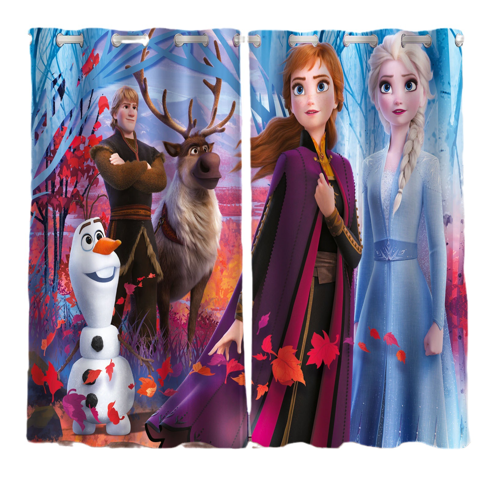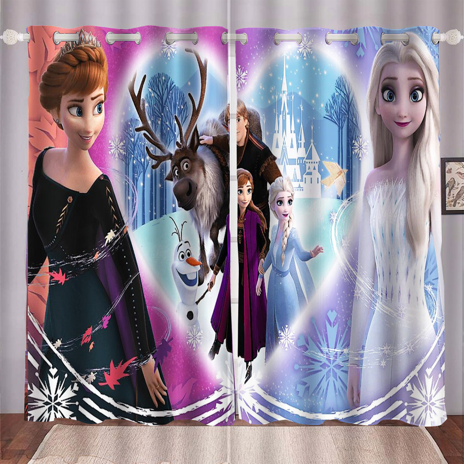亚马逊跨境数码印花窗帘 冰雪奇缘免打孔隔断帘遮光帘工厂定 制