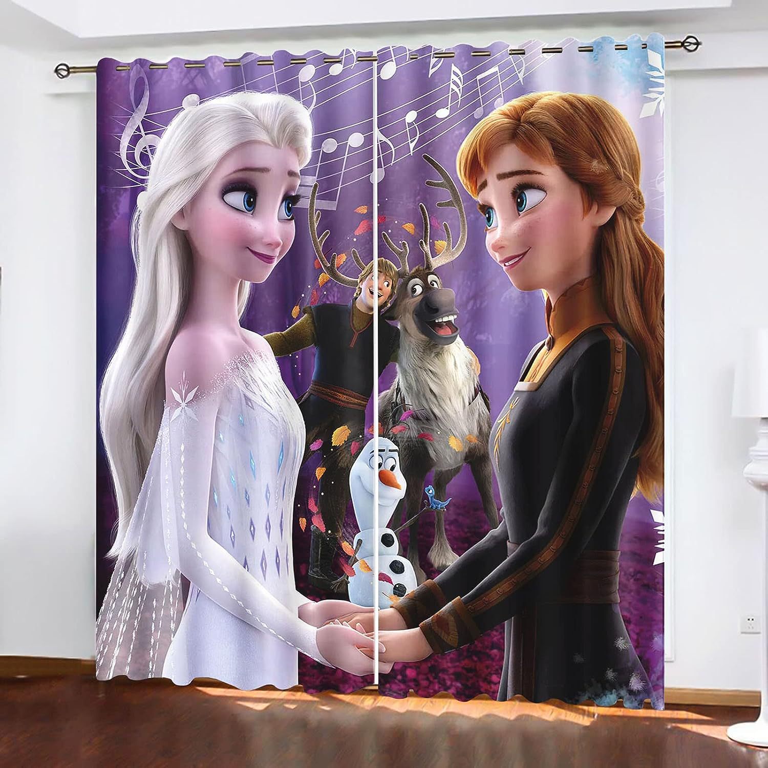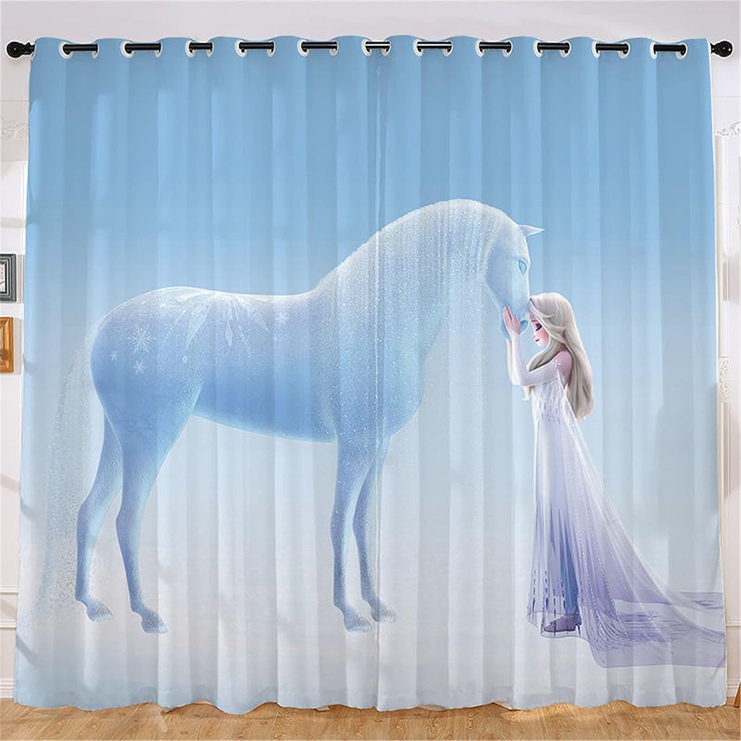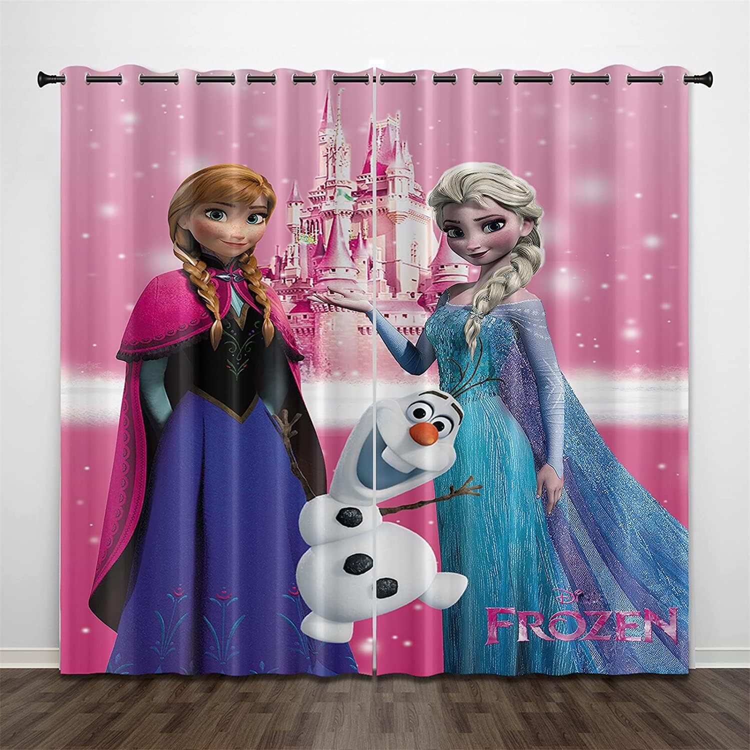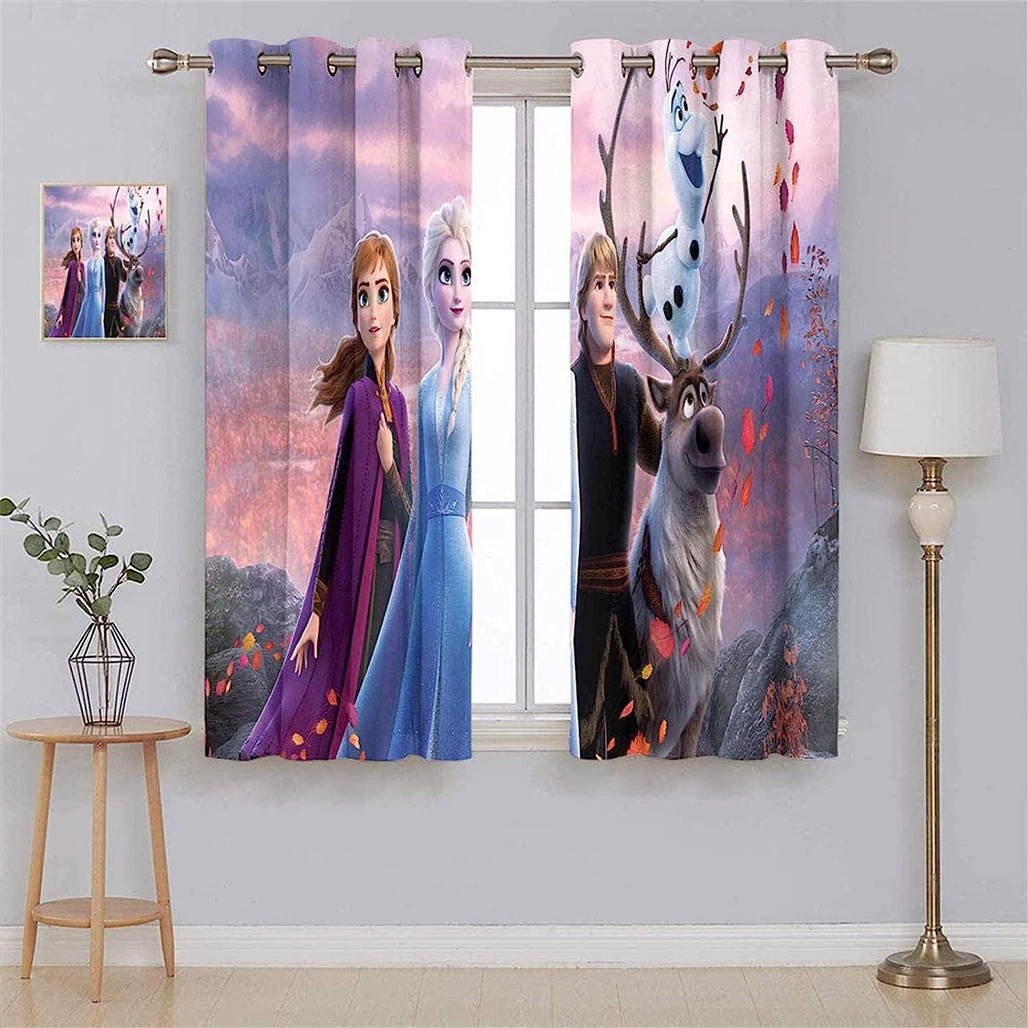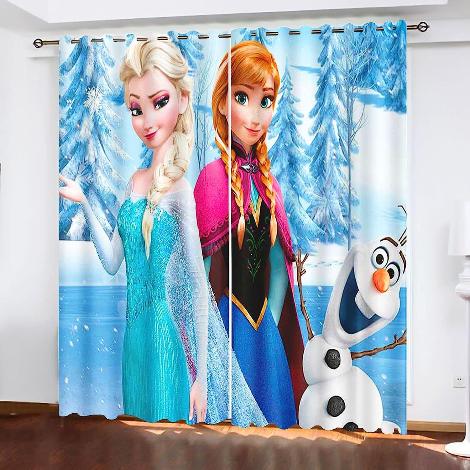 亚马逊跨境数码印花窗帘 冰雪奇缘免打孔隔断帘遮光帘工厂定 制
