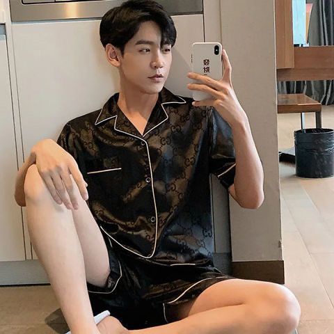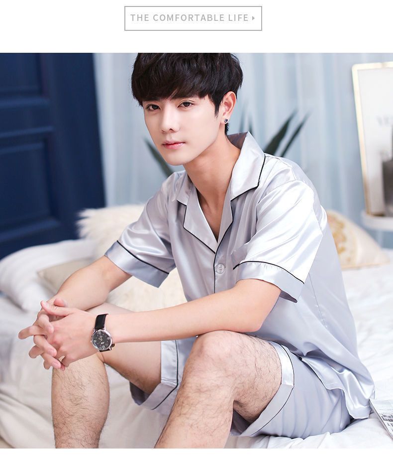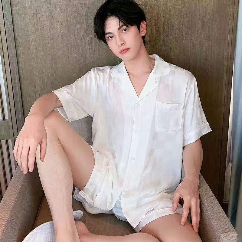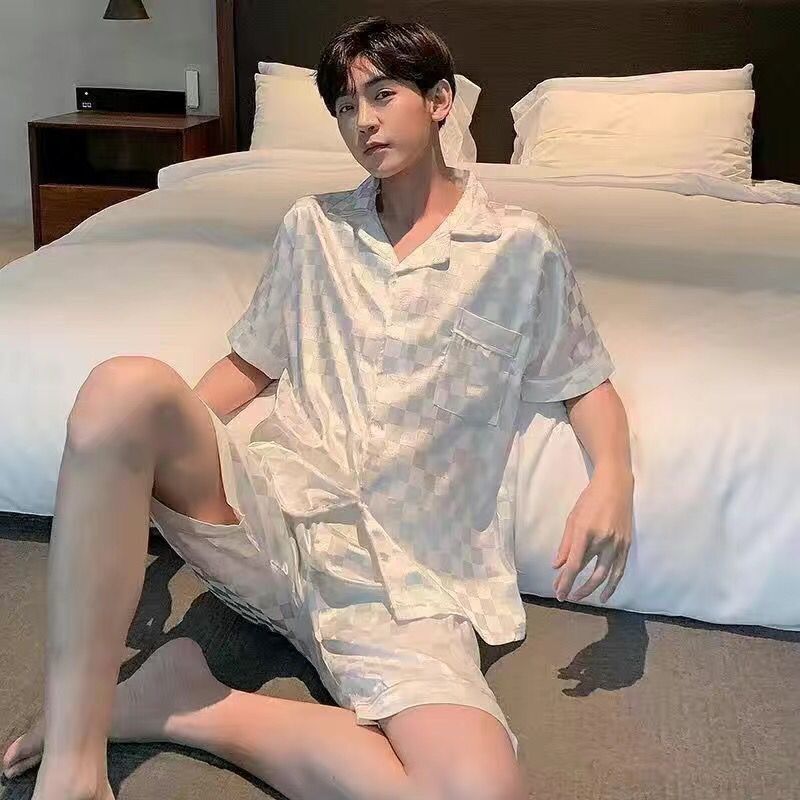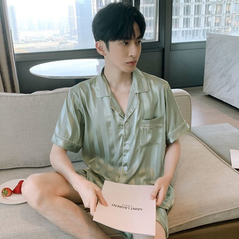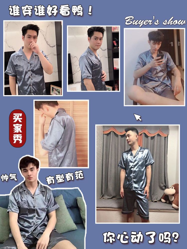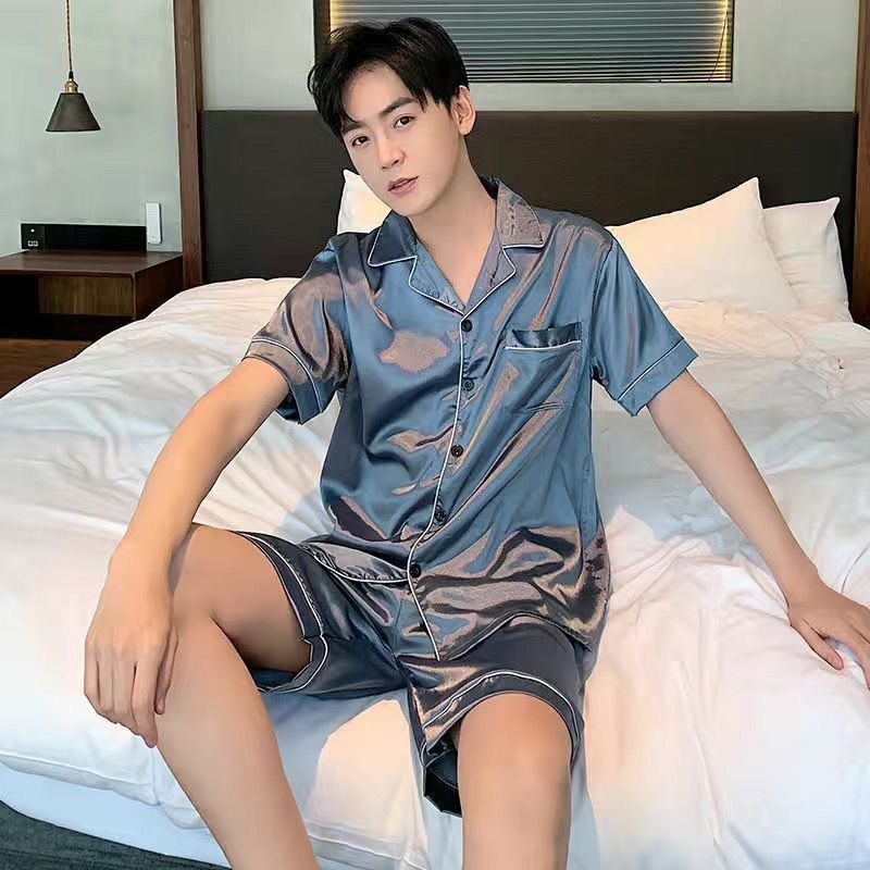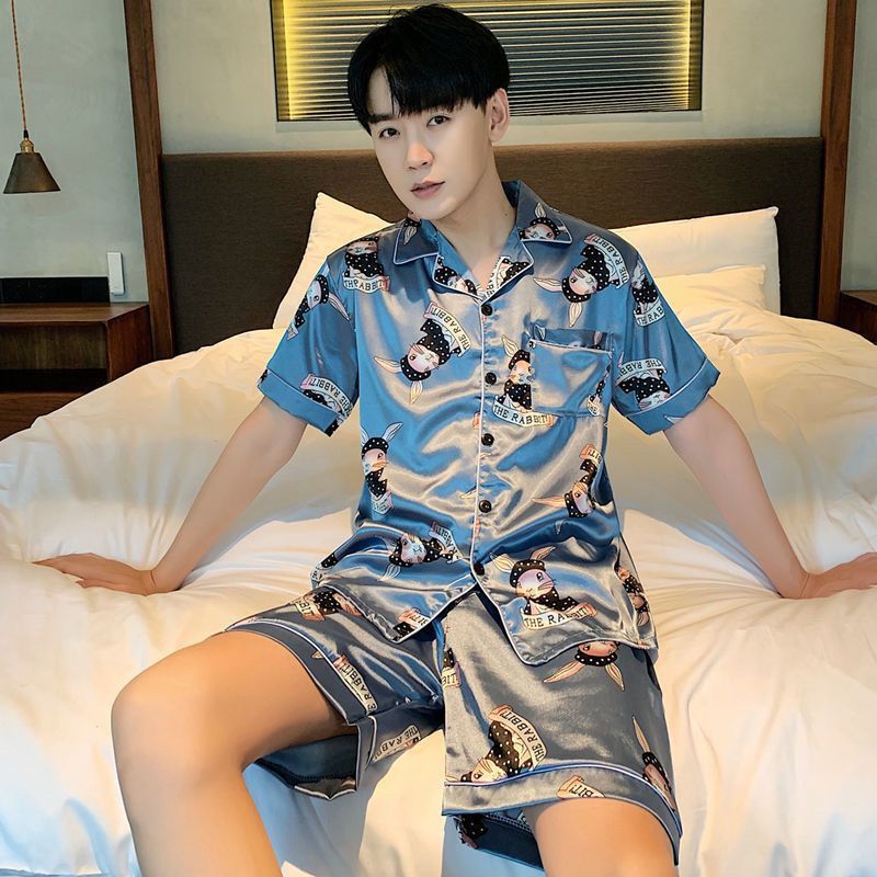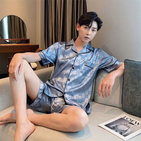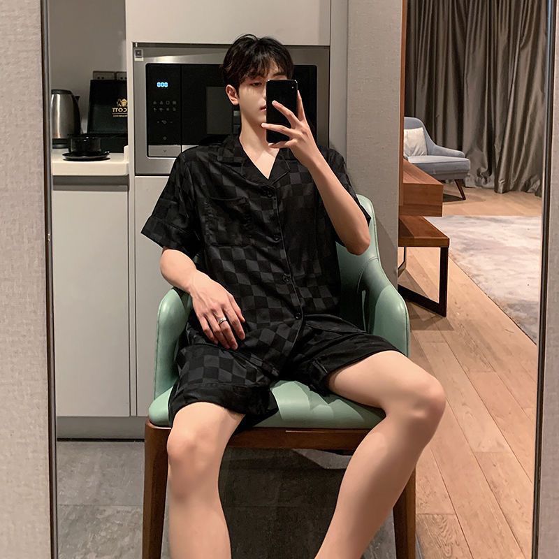 睡衣男夏季短袖冰丝薄款帅气家居服宽松大码丝绸男孩可外穿套装