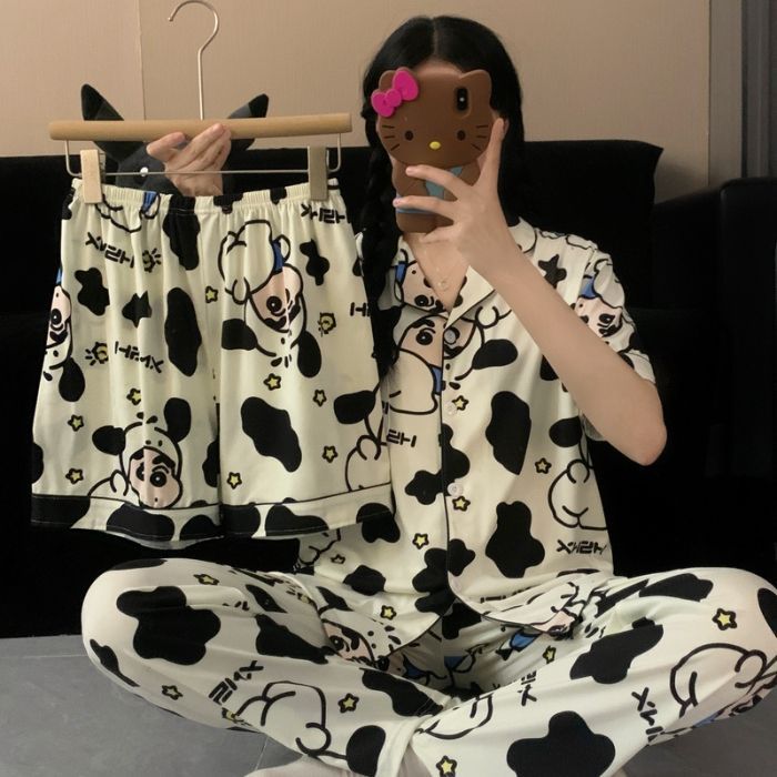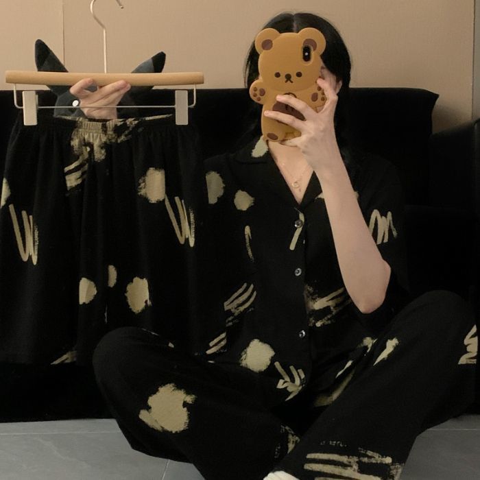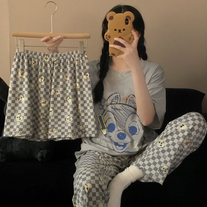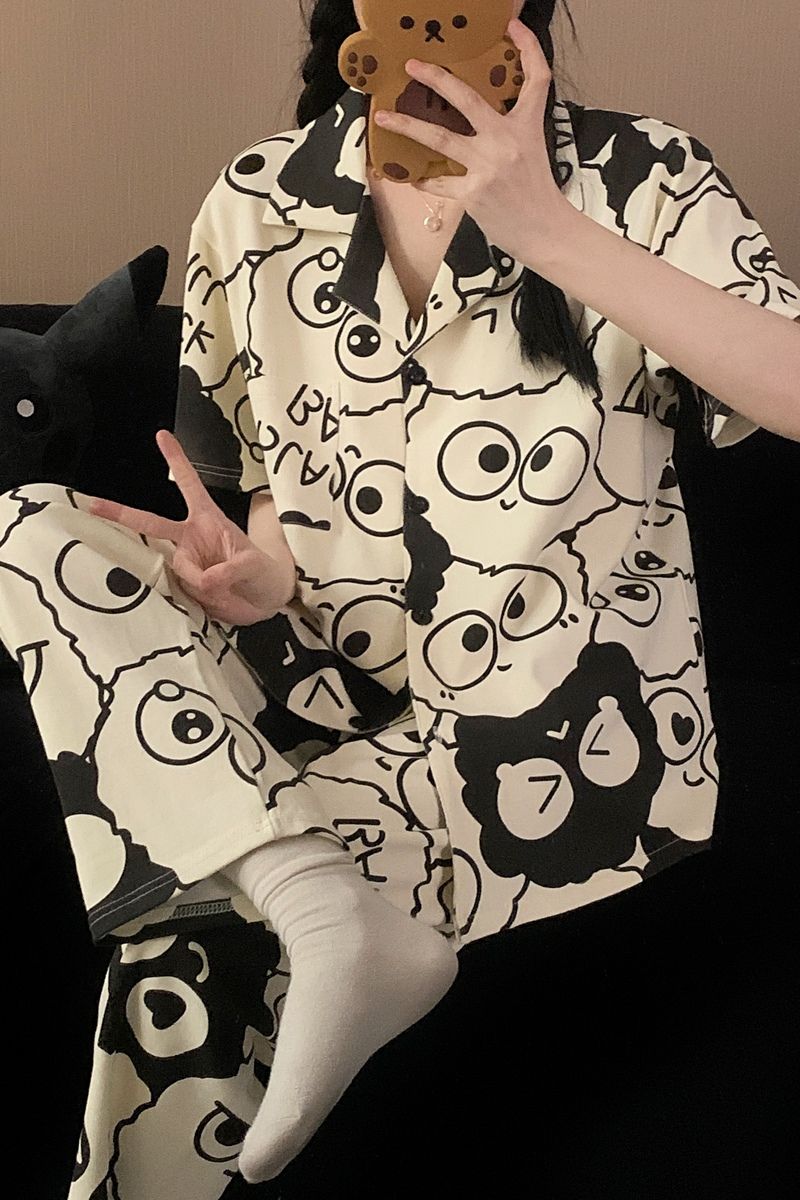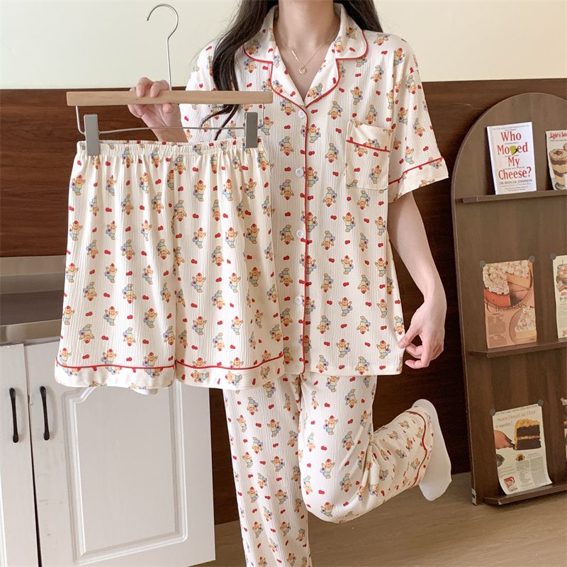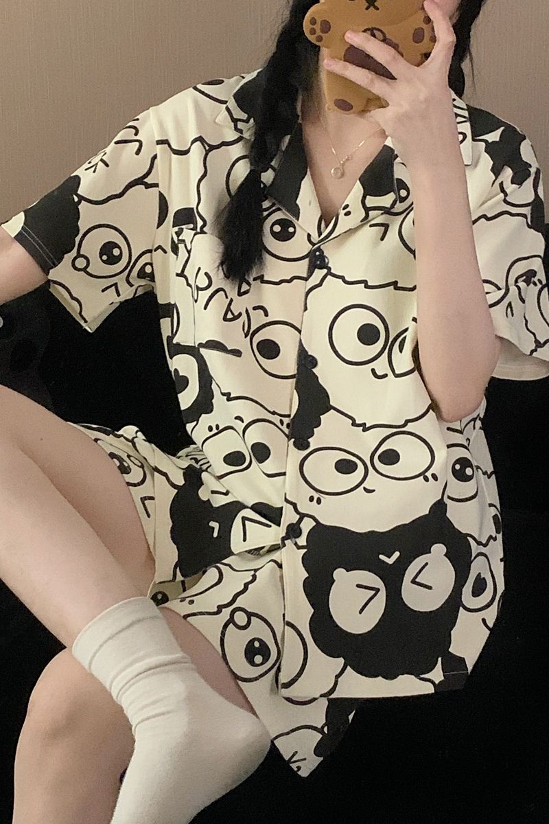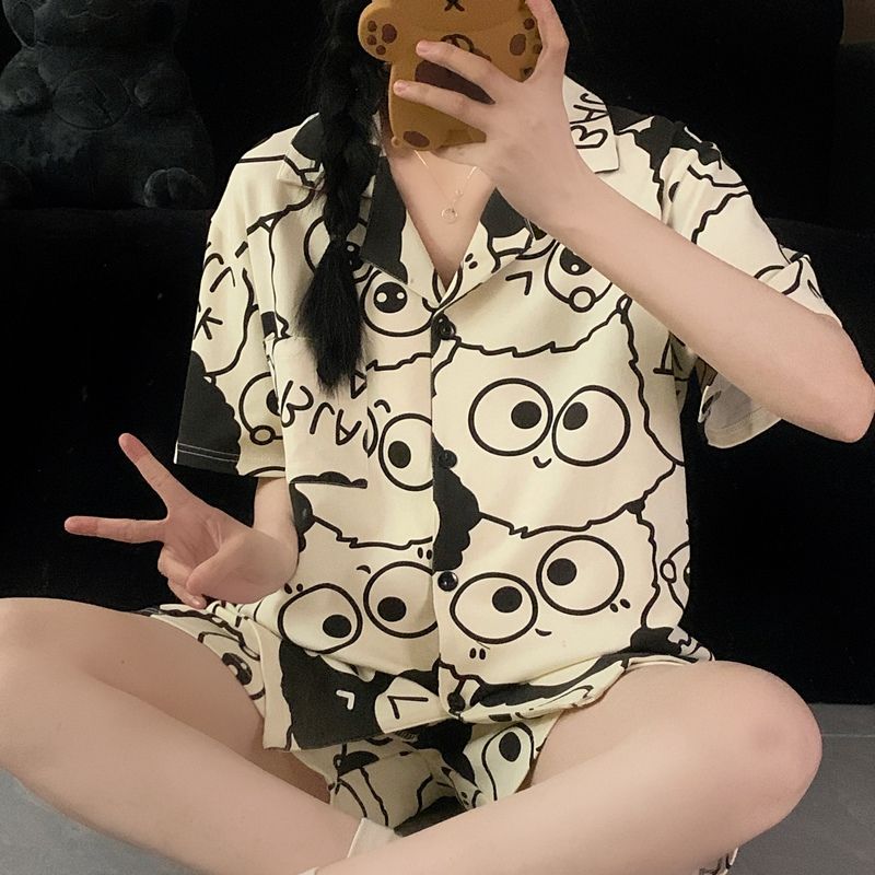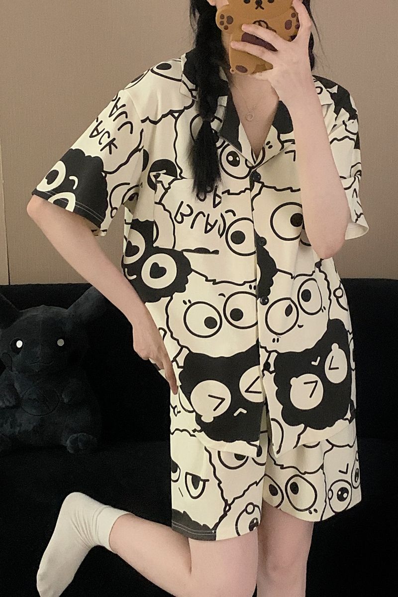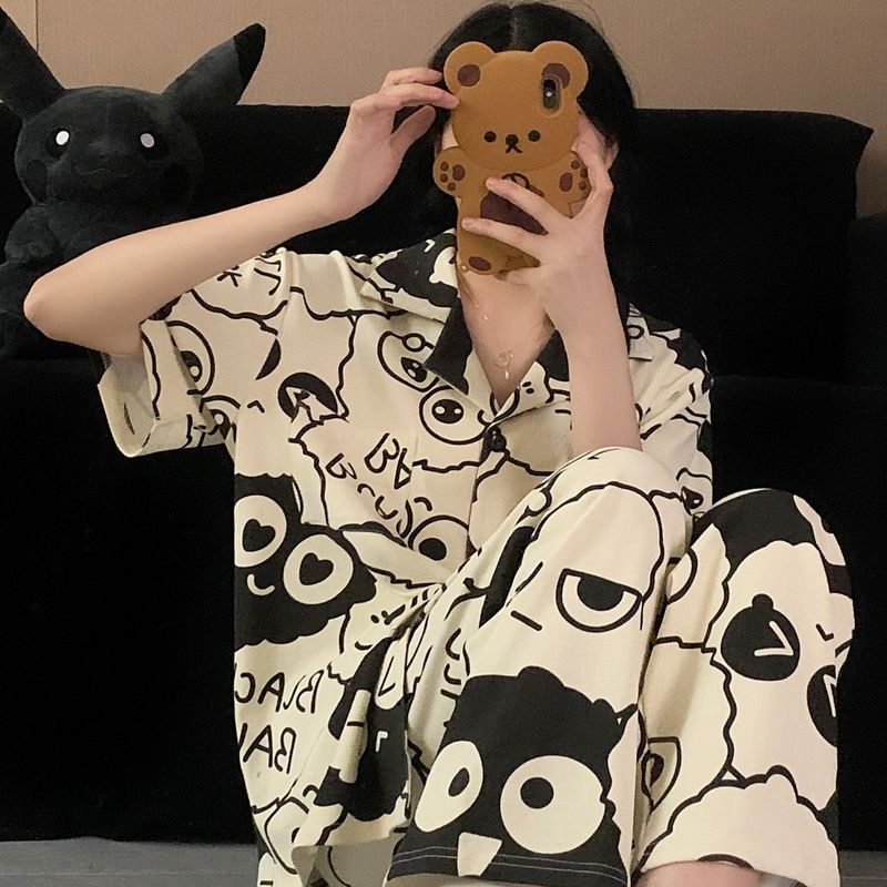 胖mm高颜值卡通煤球三件套短袖睡衣女学生夏季ins宽松大码家居服