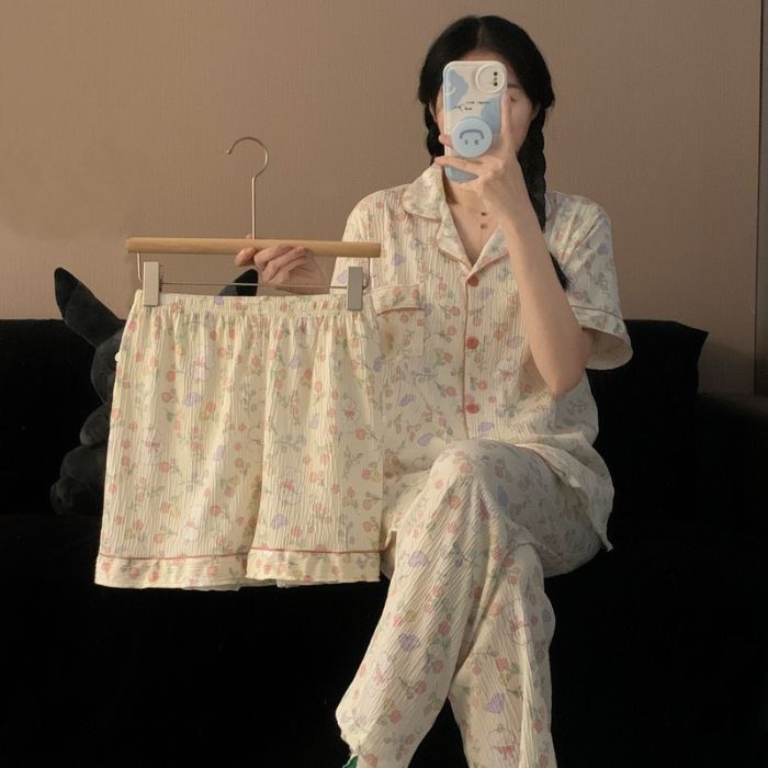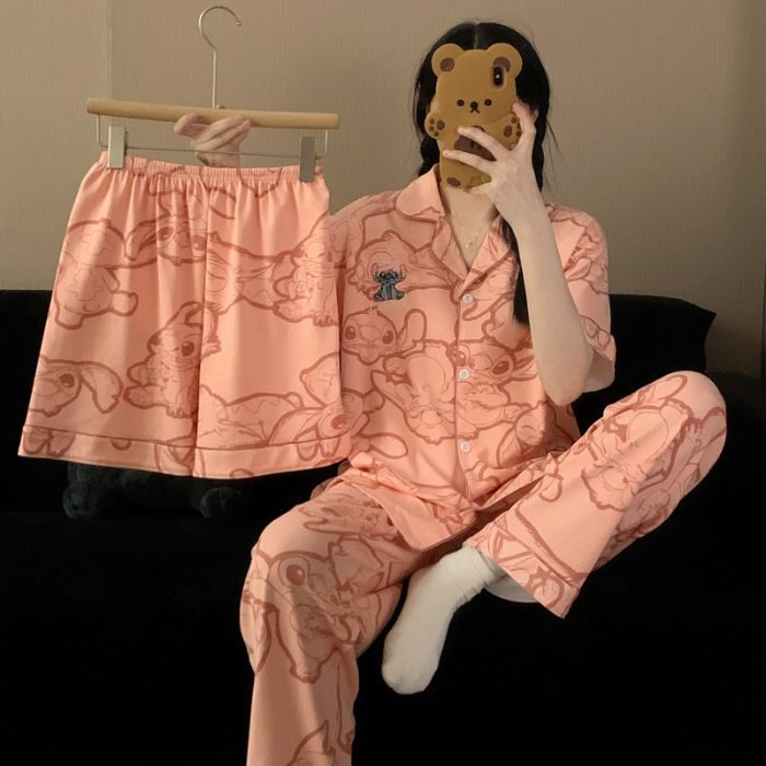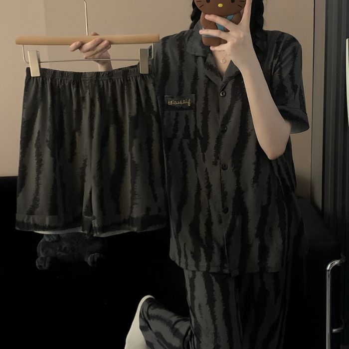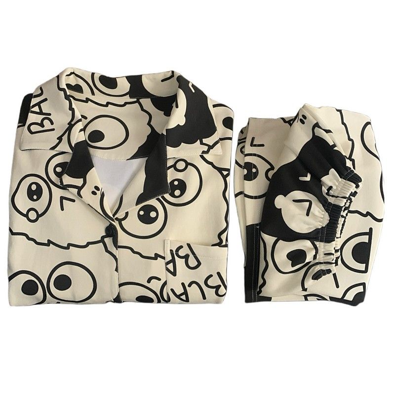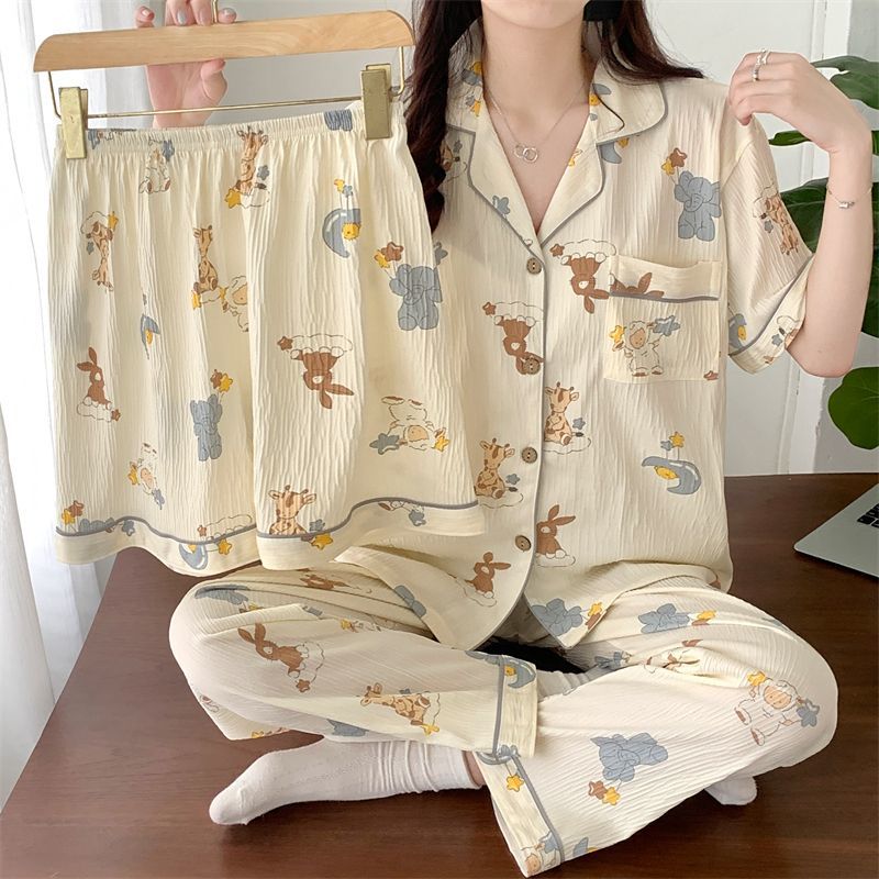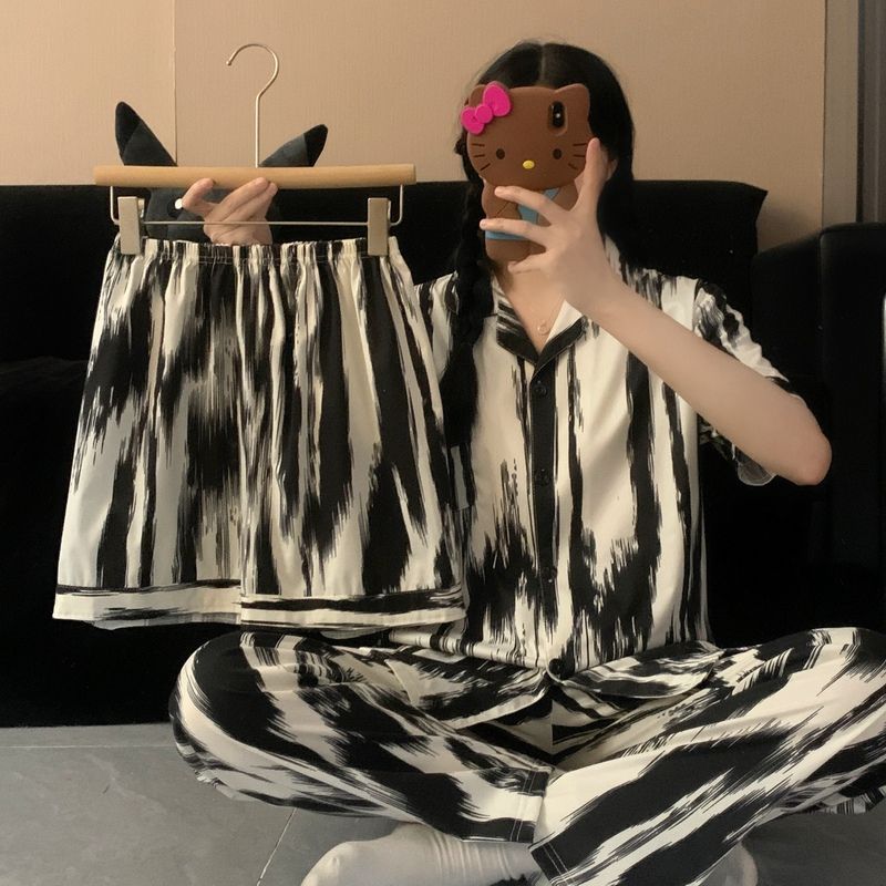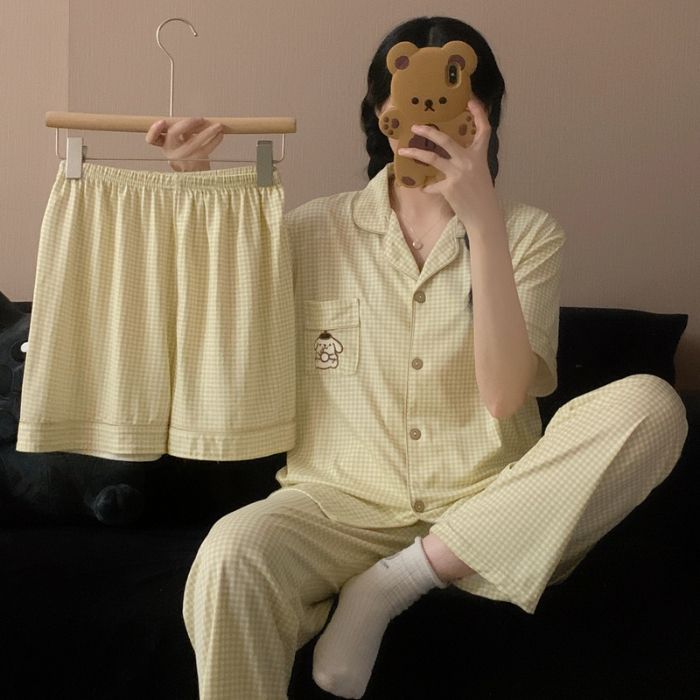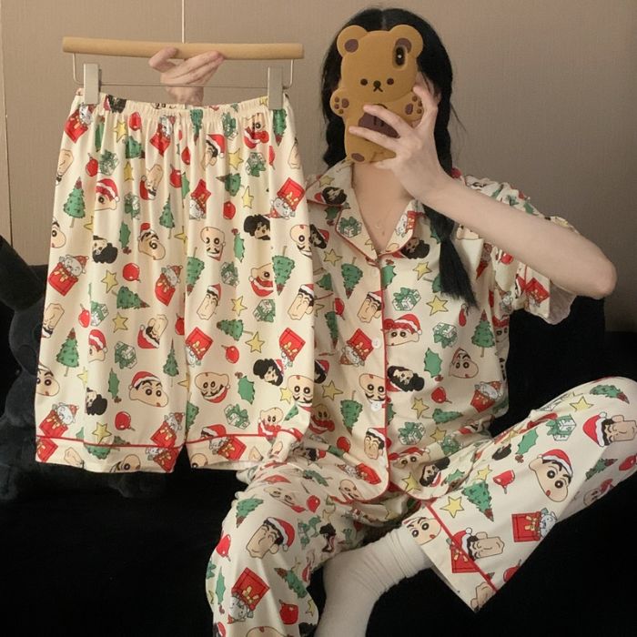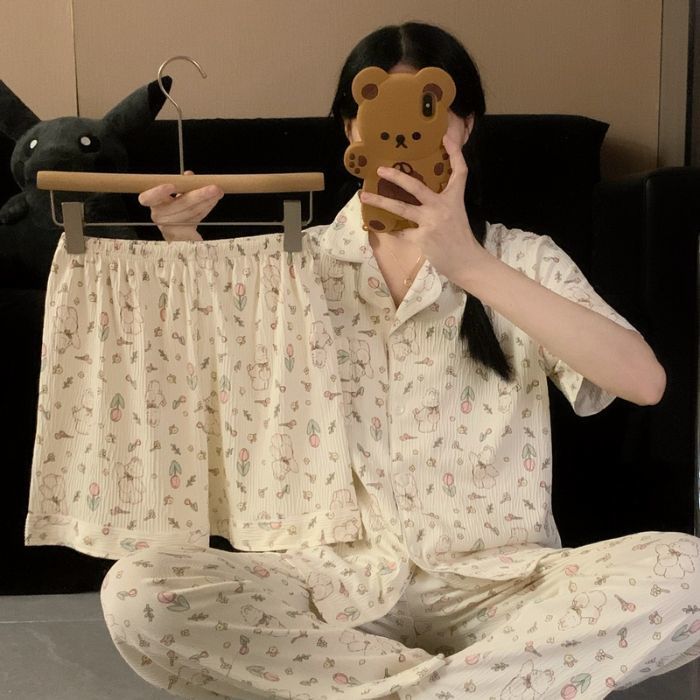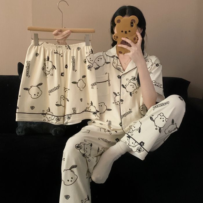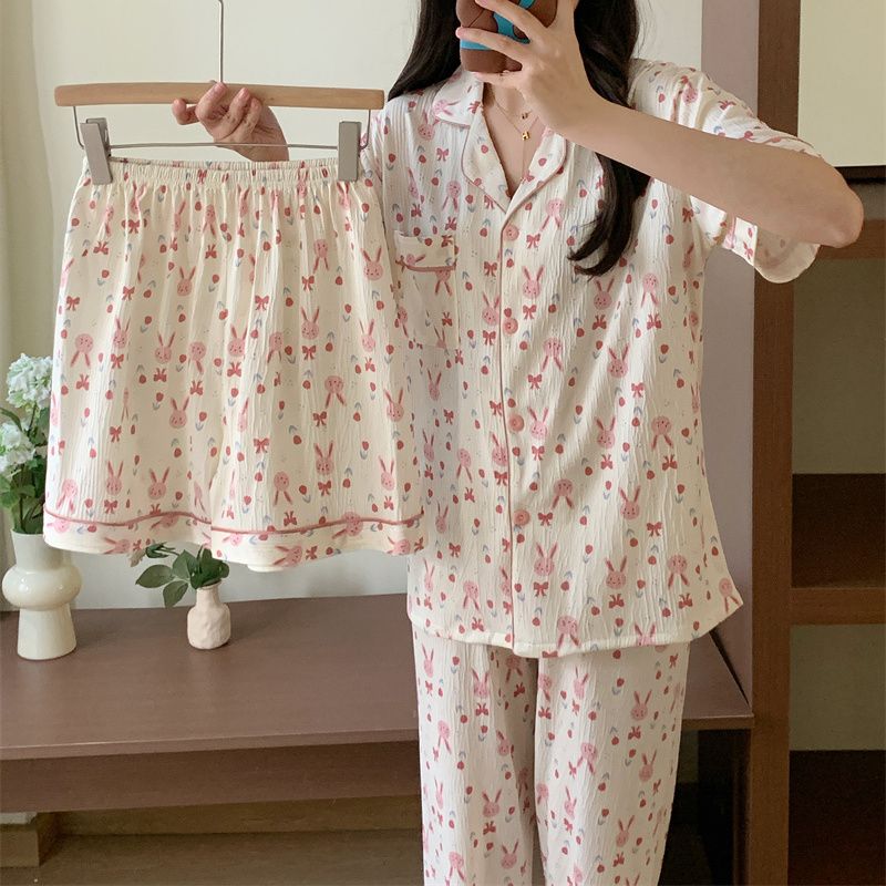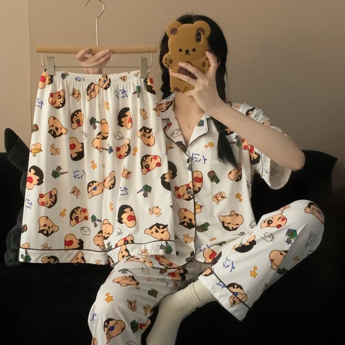 胖mm高颜值卡通煤球三件套短袖睡衣女学生夏季ins宽松大码家居服