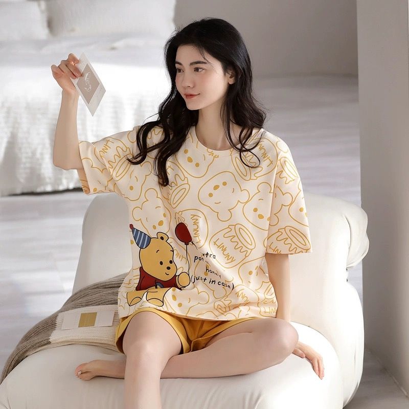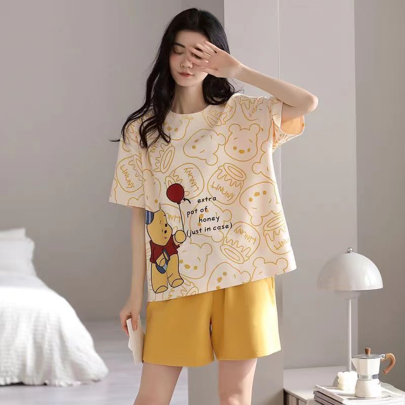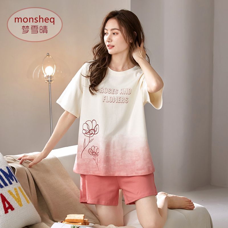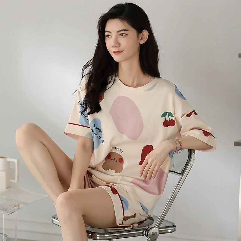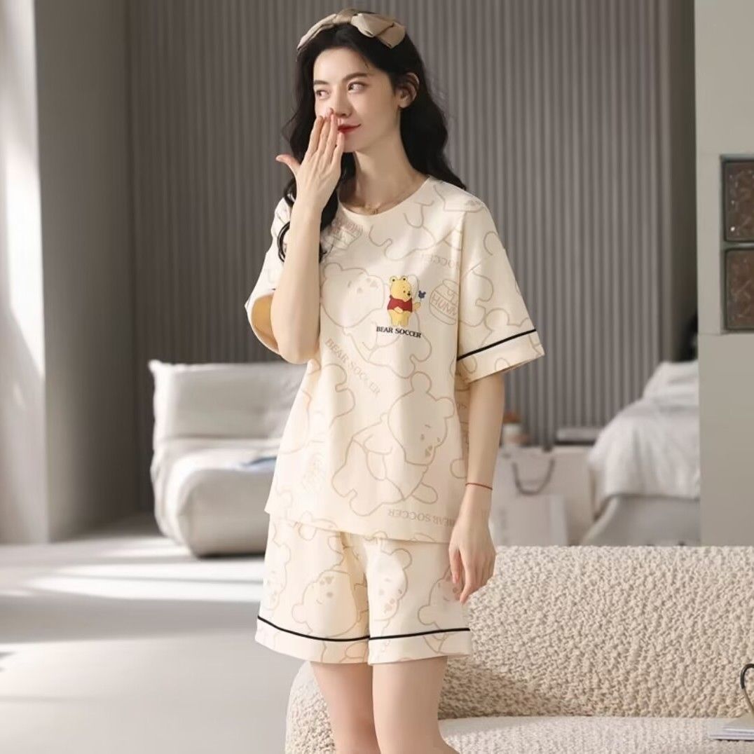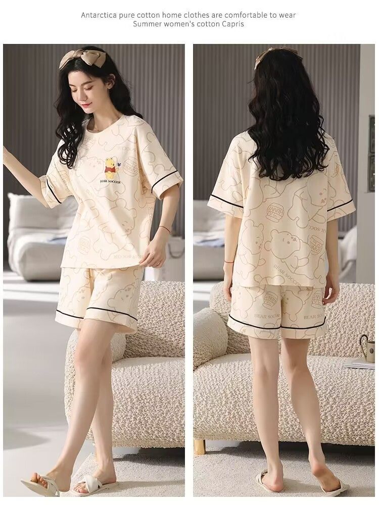 100%纯棉睡衣女短袖短裤可外穿韩版可爱圆领全棉家居服套装