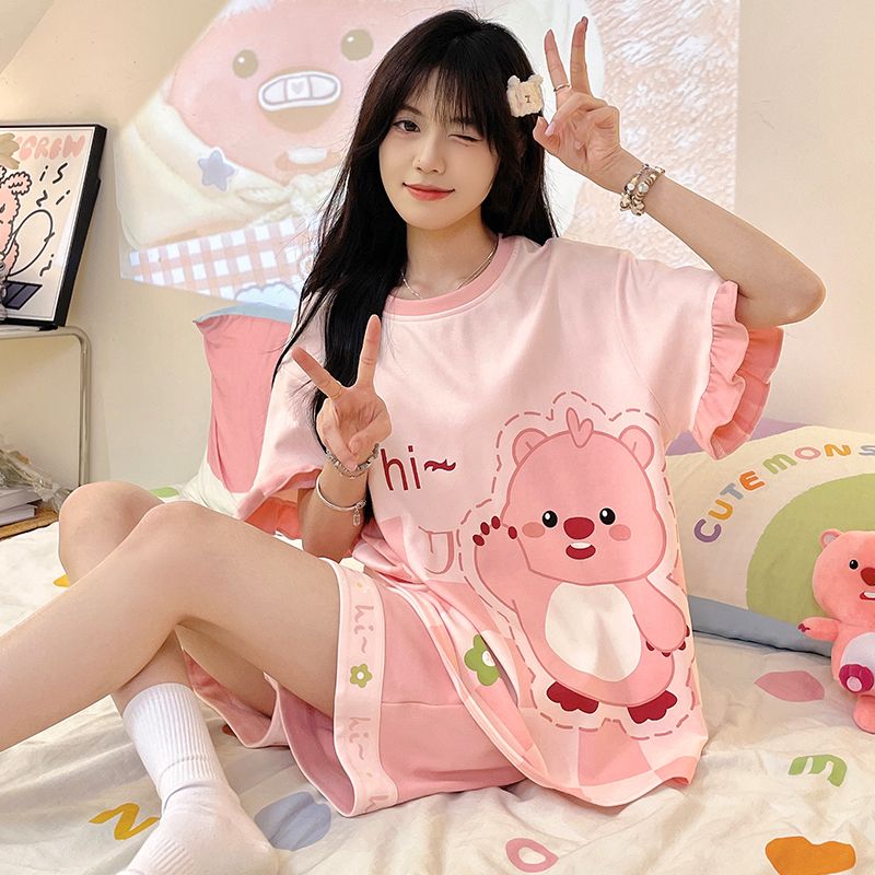 80-300斤加大码睡衣女夏天纯棉薄款短袖胖mm宽松新款学生网红爆款
