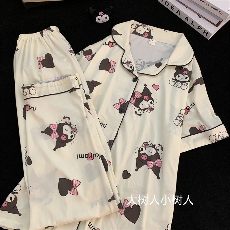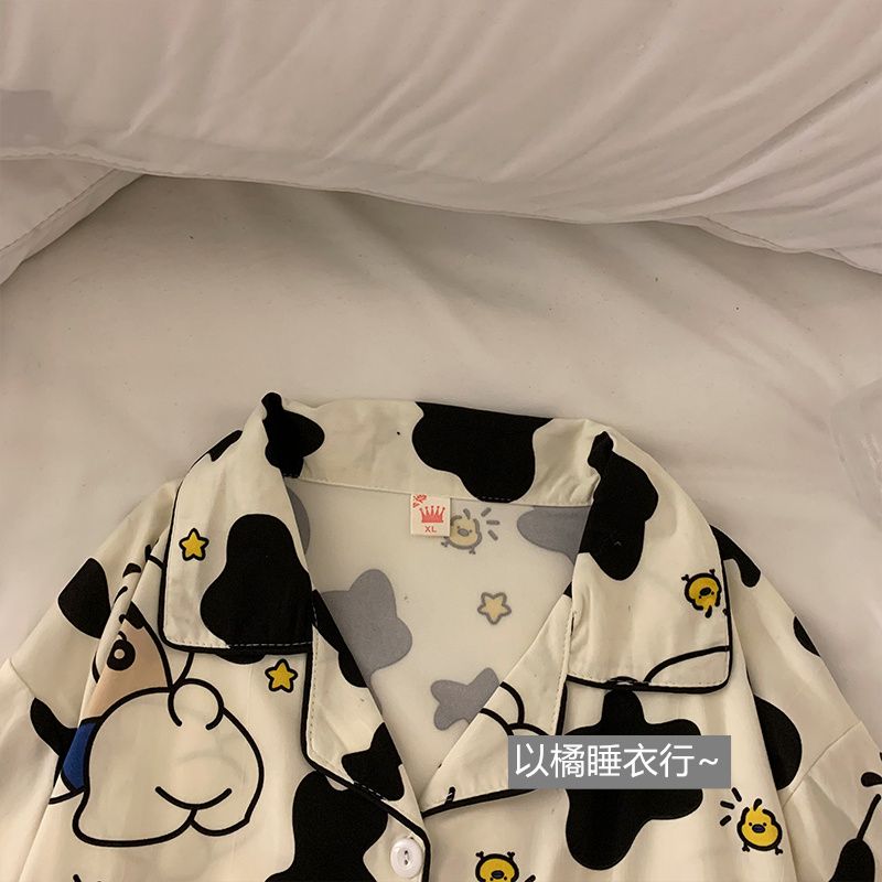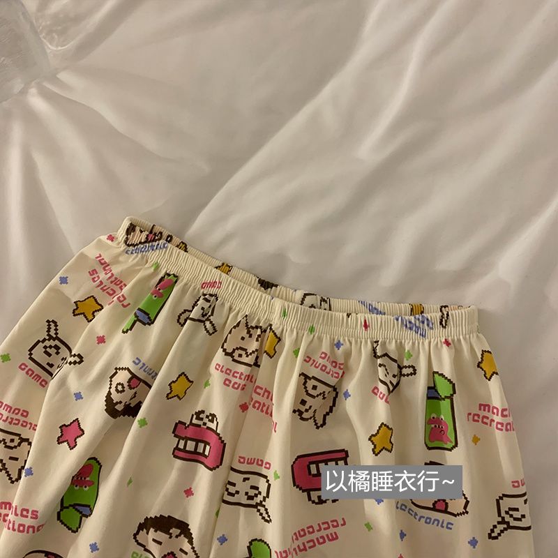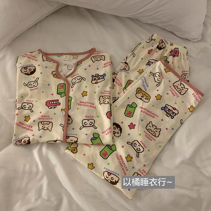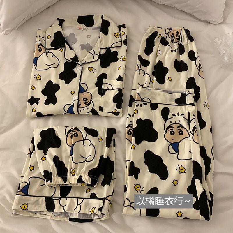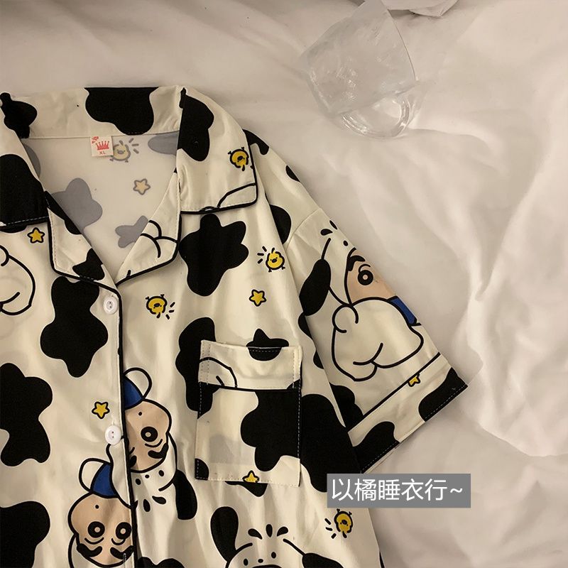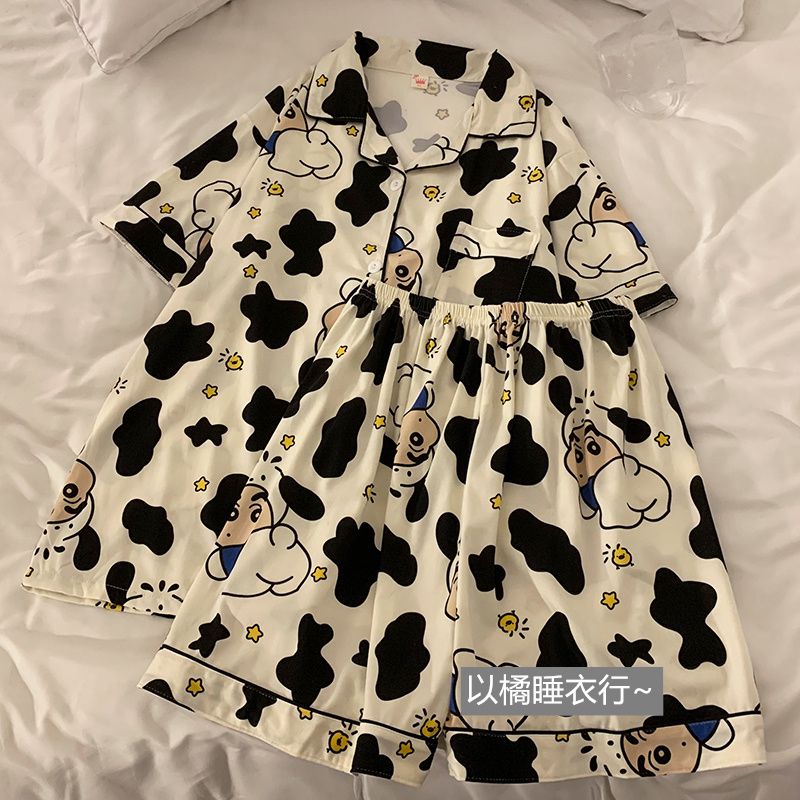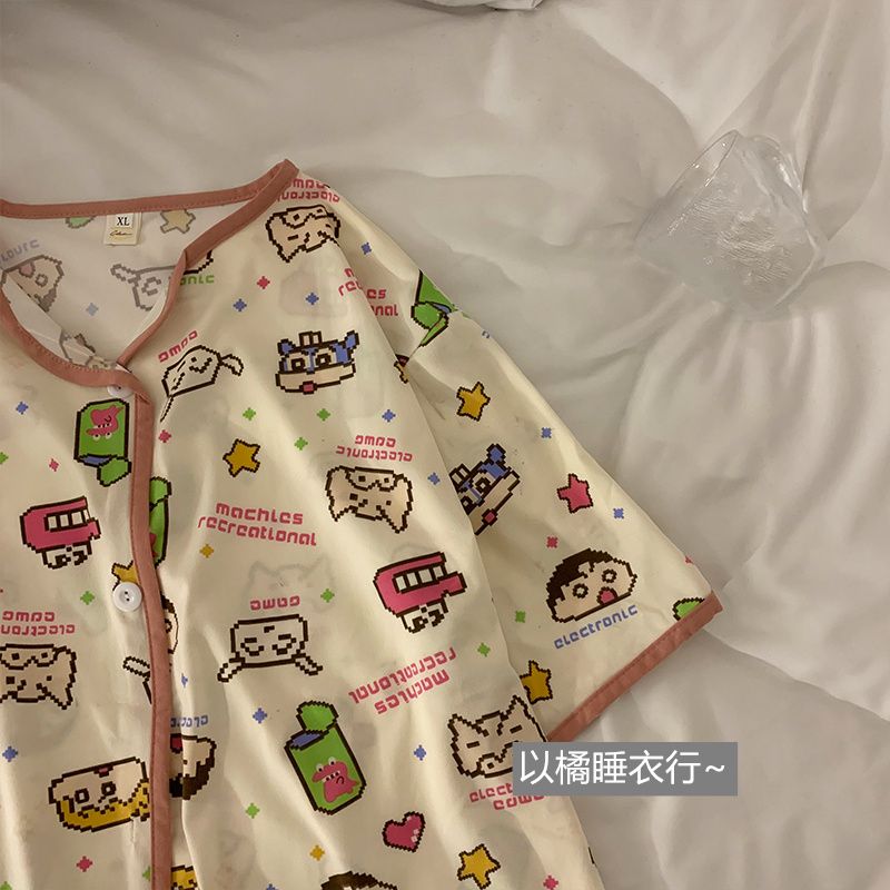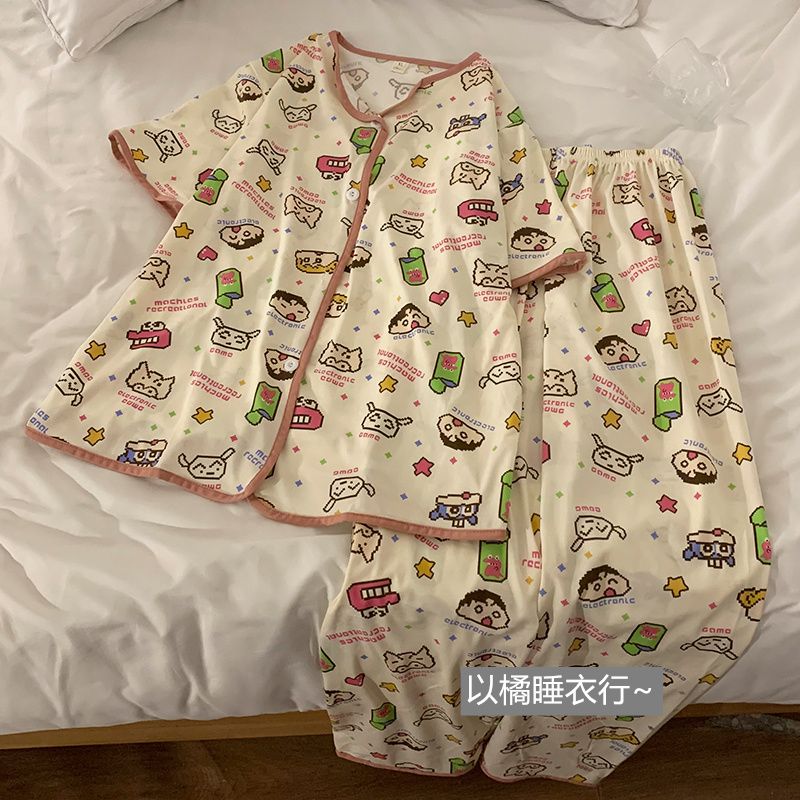 史迪仔三件套睡衣女夏季短袖卡通印花可爱薄款网红家居服大码套装