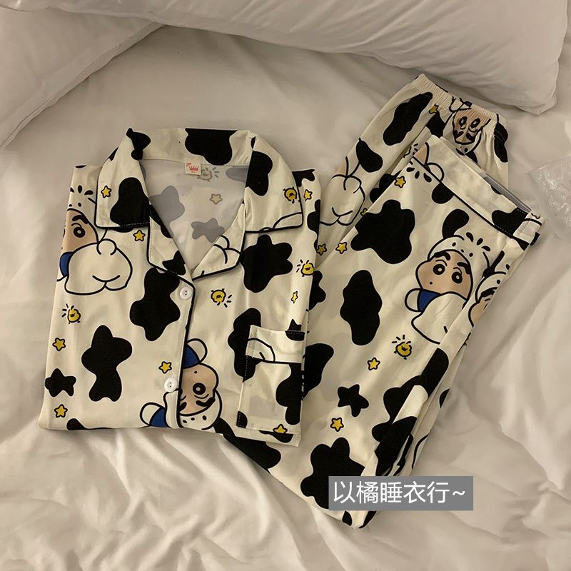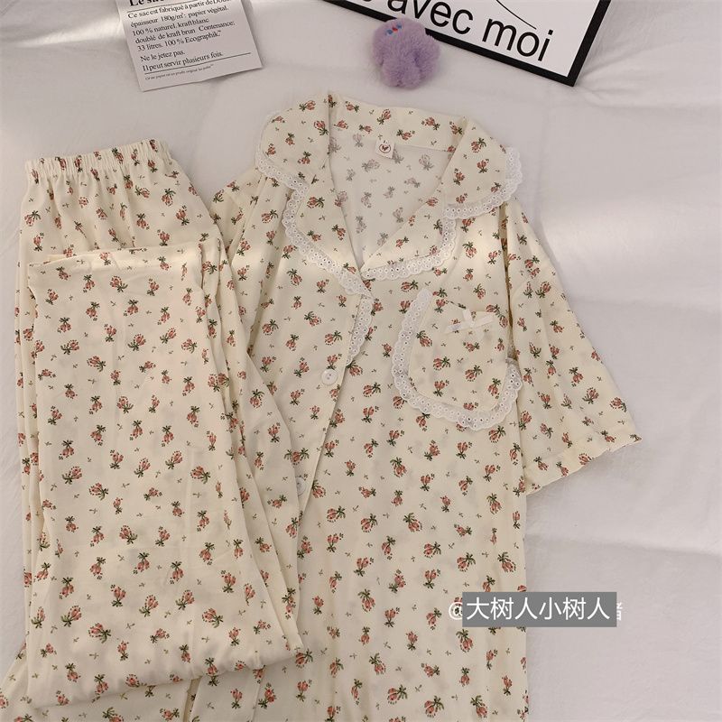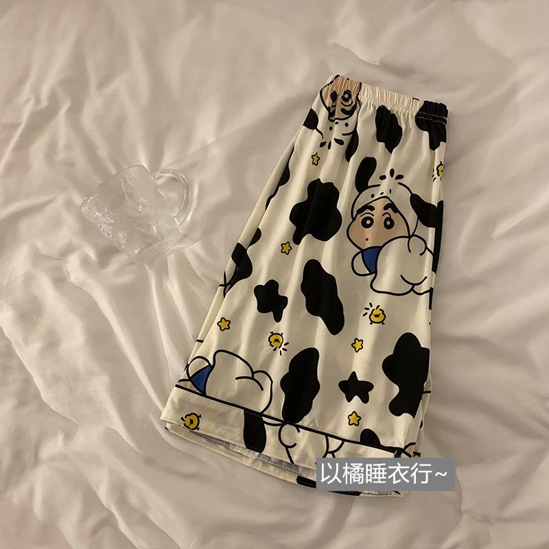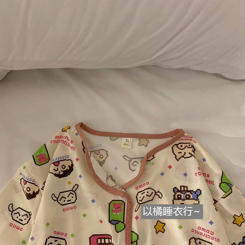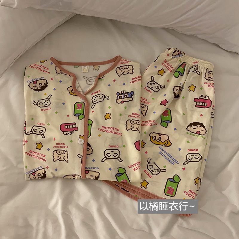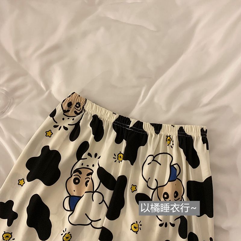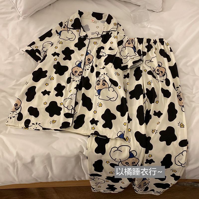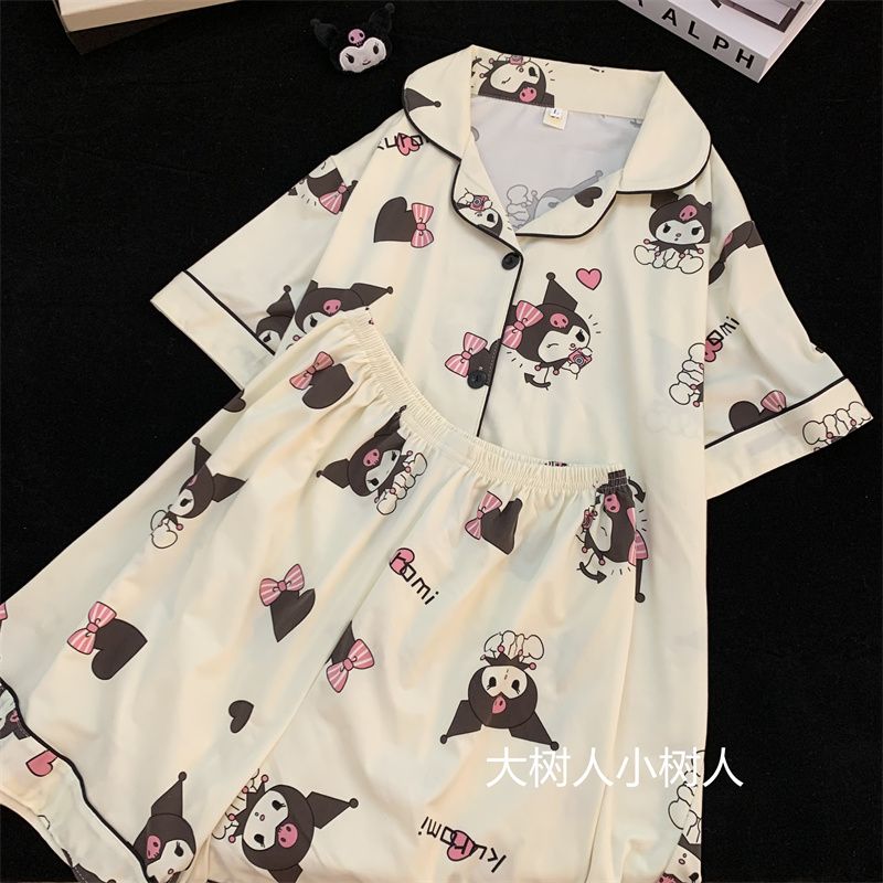 史迪仔三件套睡衣女夏季短袖卡通印花可爱薄款网红家居服大码套装