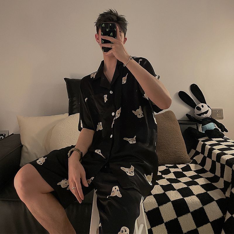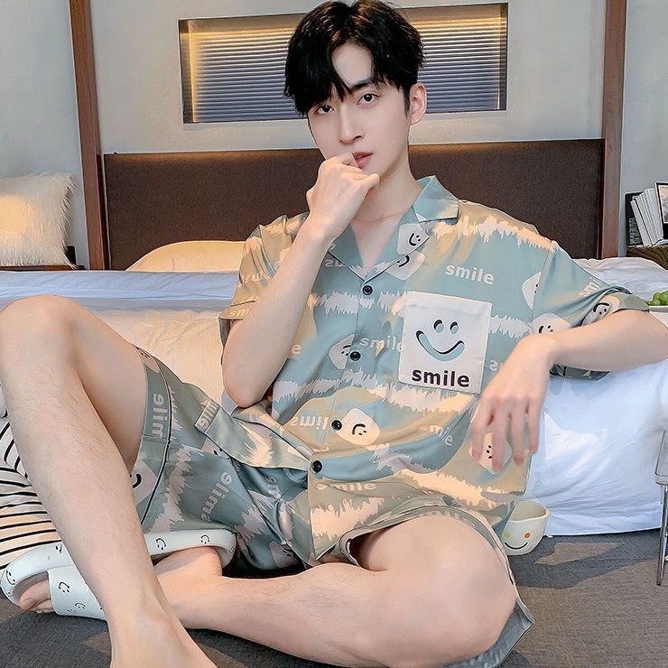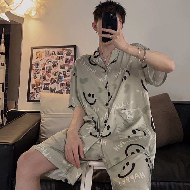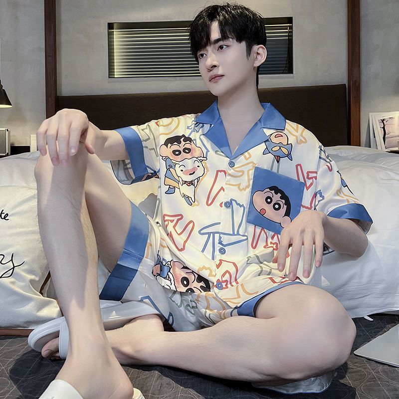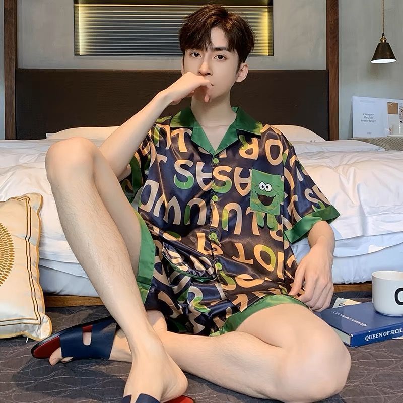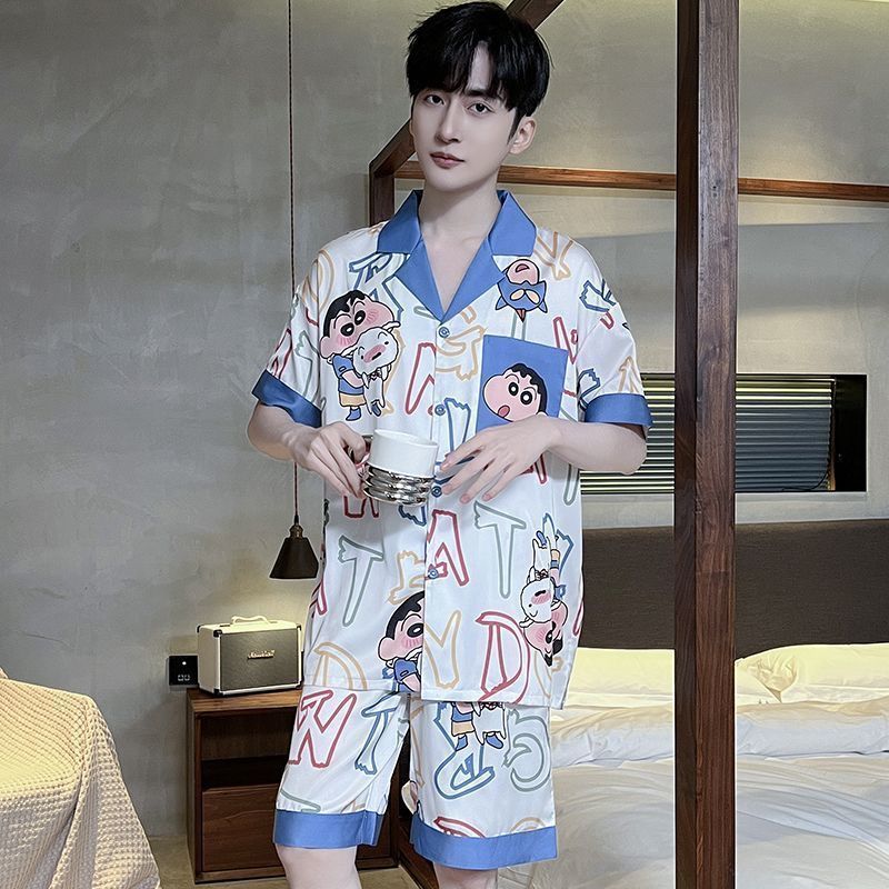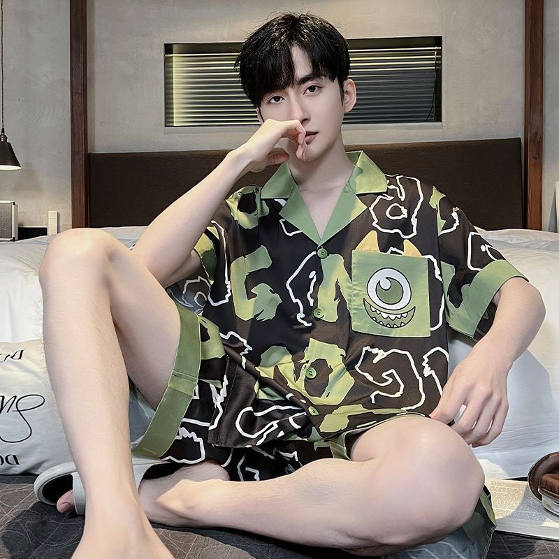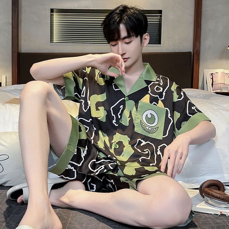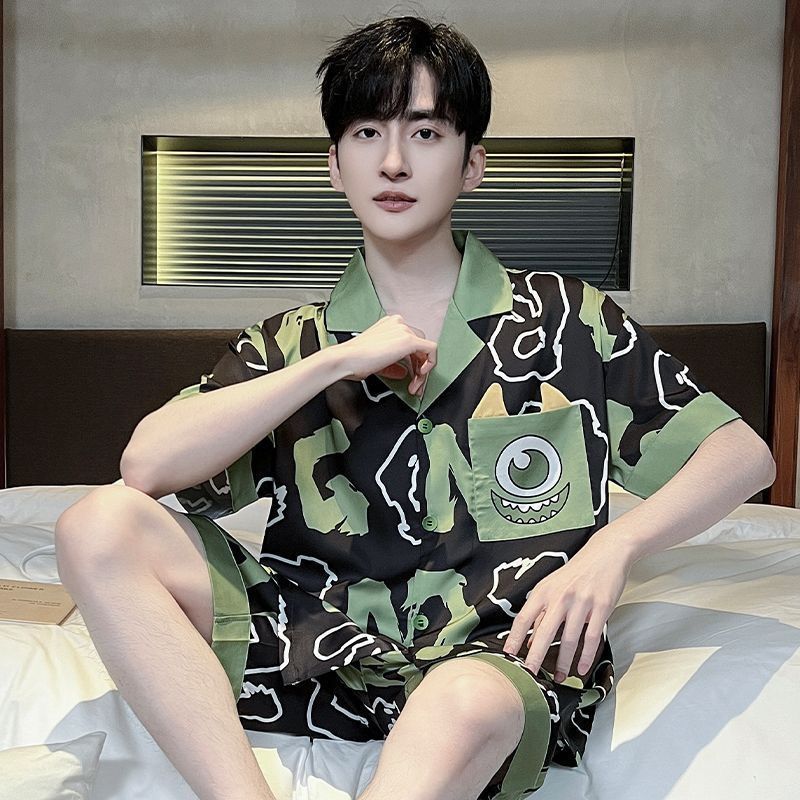 睡衣男冰丝夏季短袖薄款男士高颜值卡通加大码可外穿家居服套装