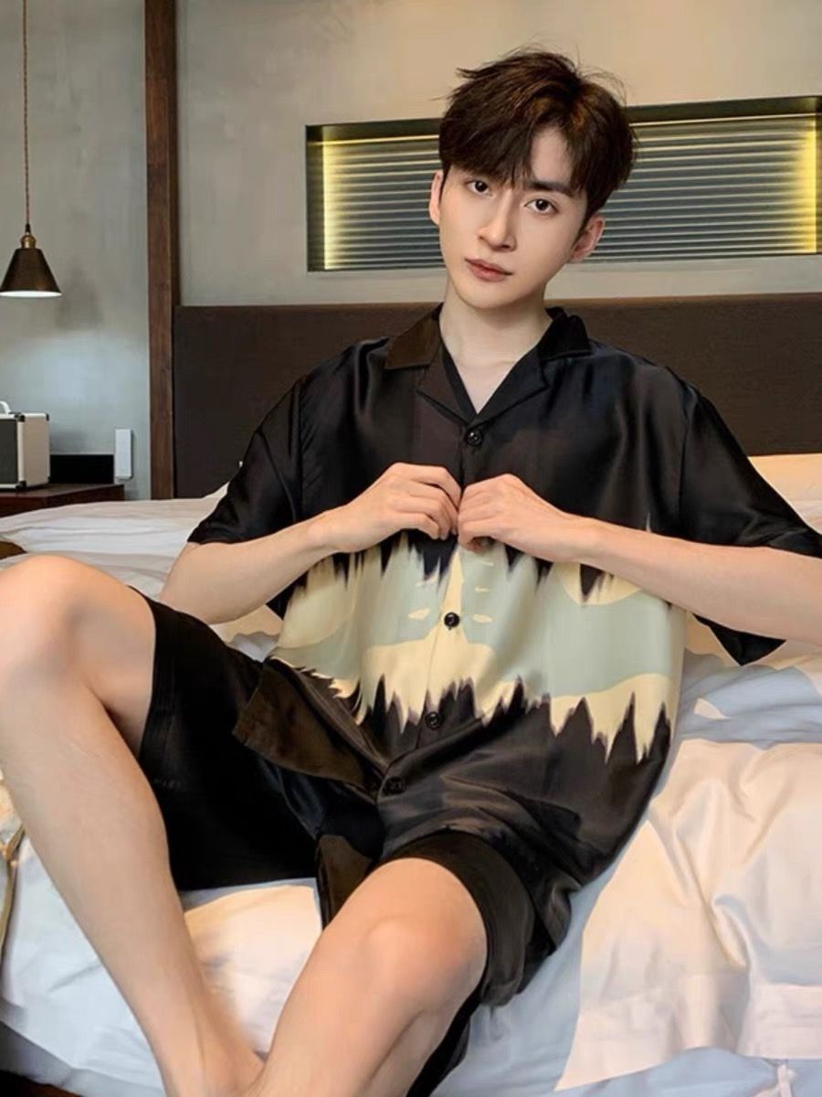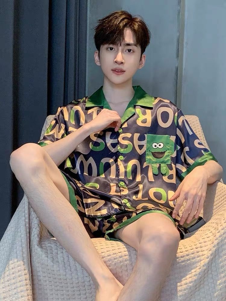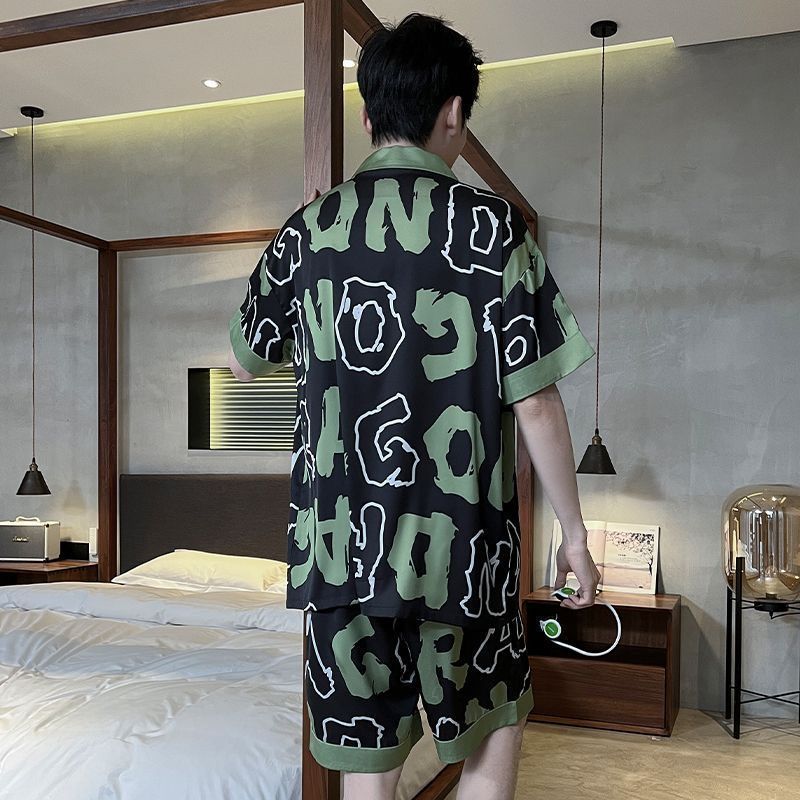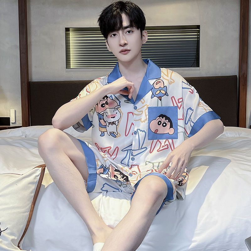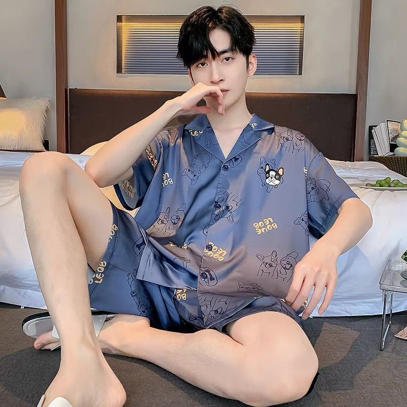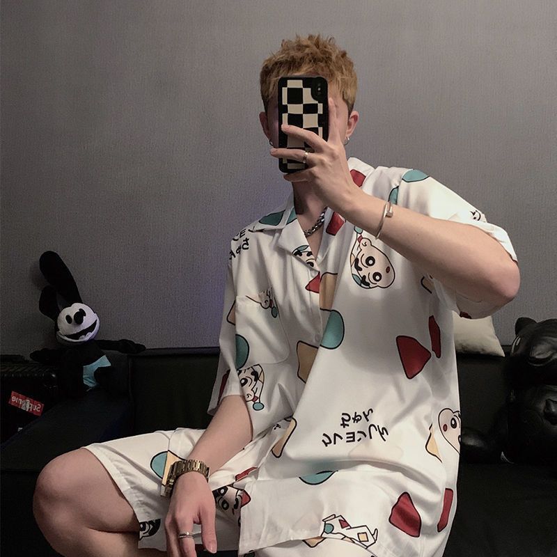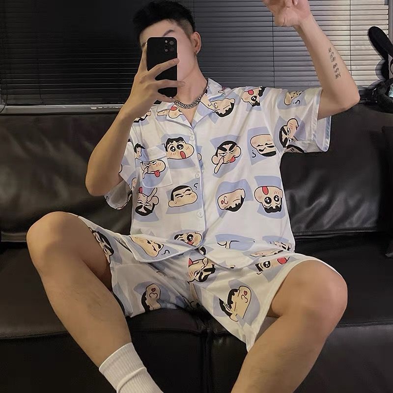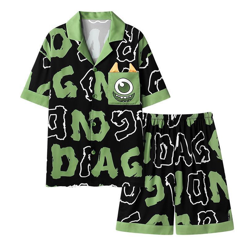 睡衣男冰丝夏季短袖薄款男士高颜值卡通加大码可外穿家居服套装