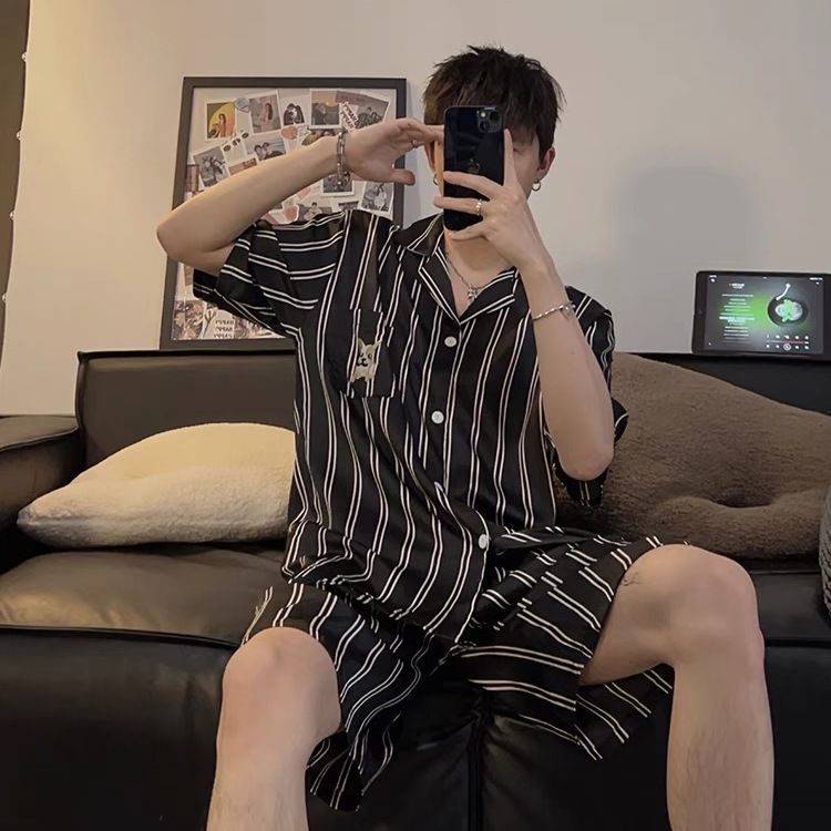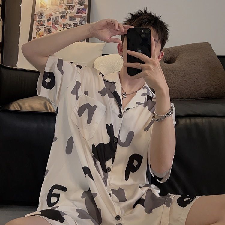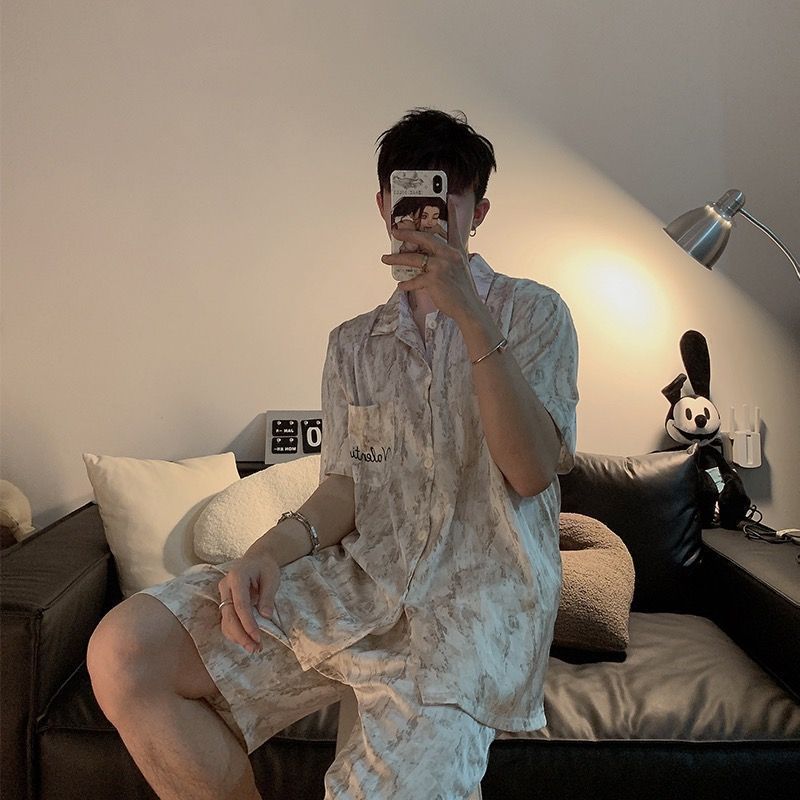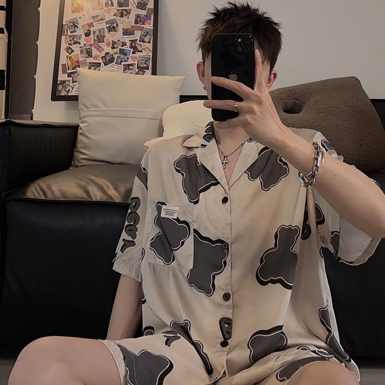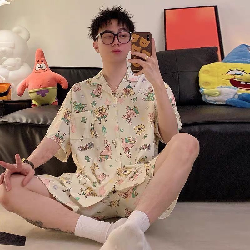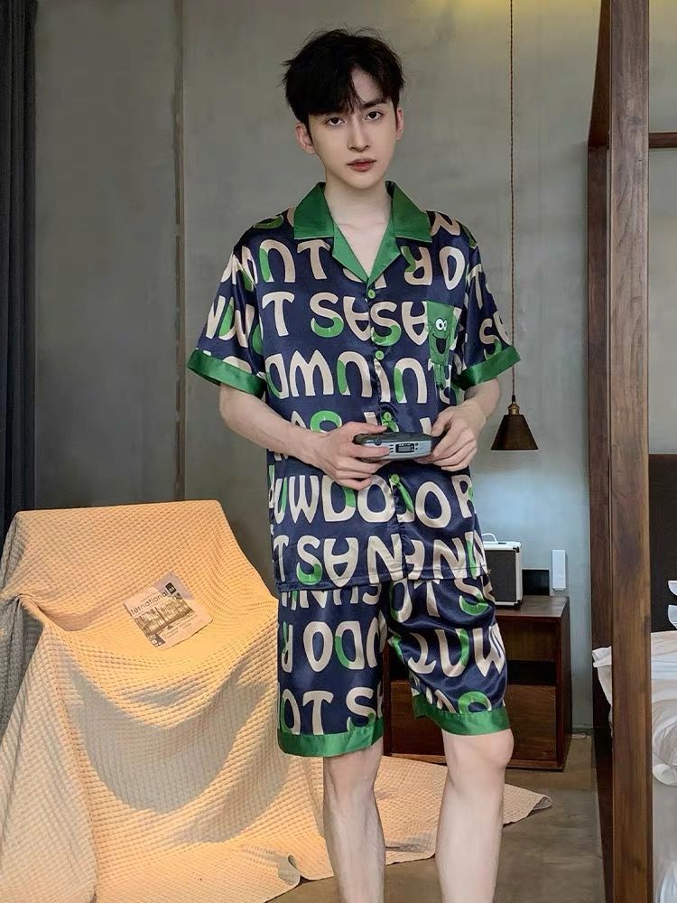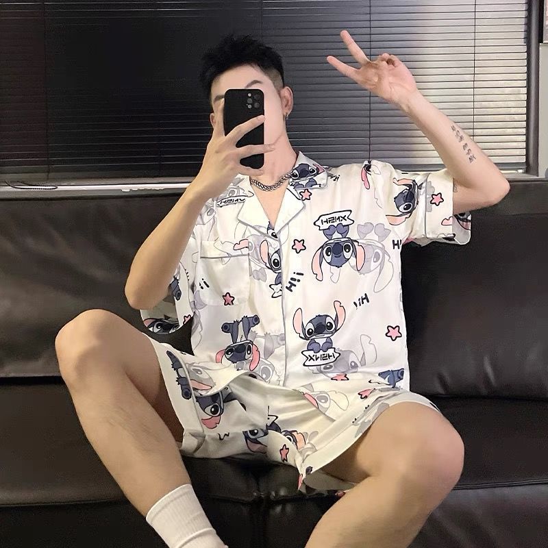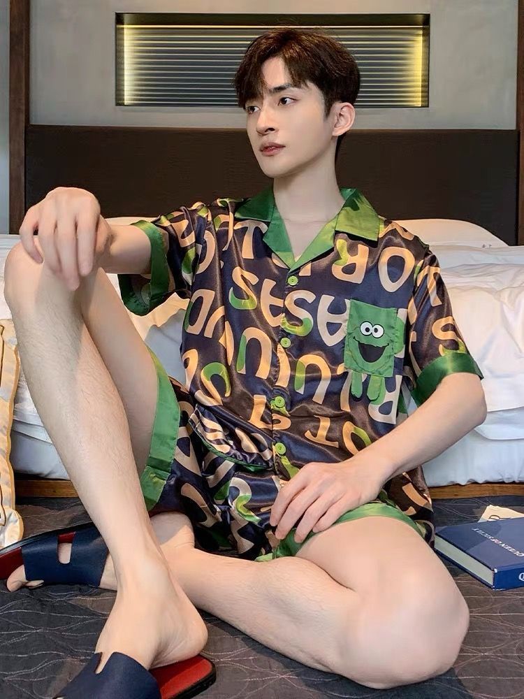 睡衣男冰丝夏季短袖薄款男士高颜值卡通加大码可外穿家居服套装