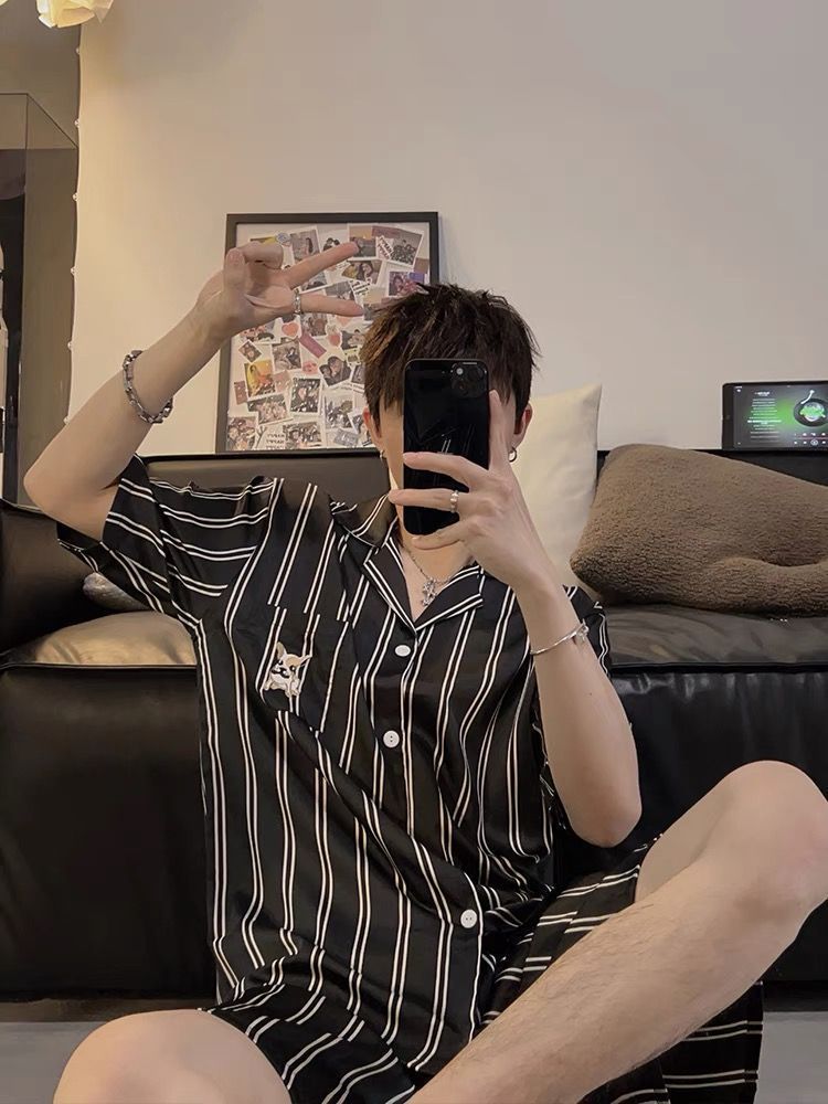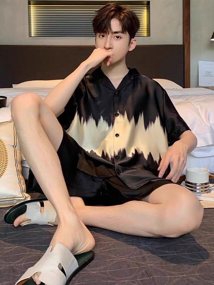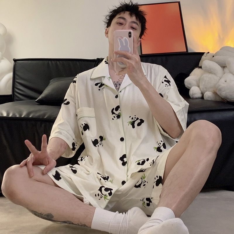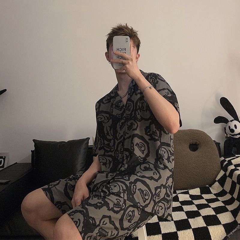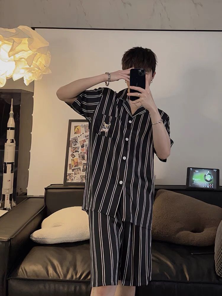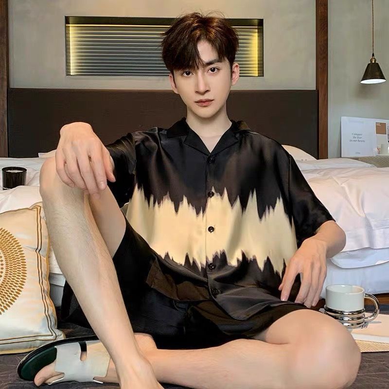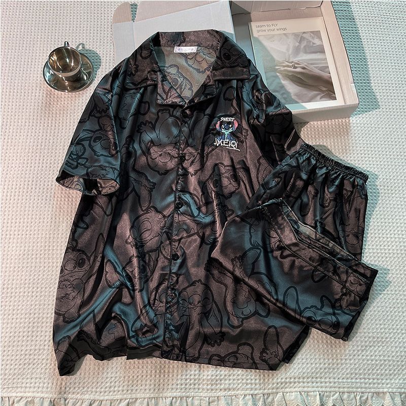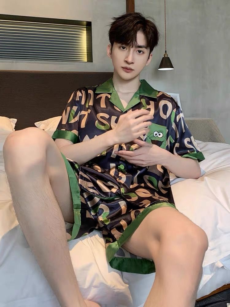 睡衣男冰丝夏季短袖薄款男士高颜值卡通加大码可外穿家居服套装
