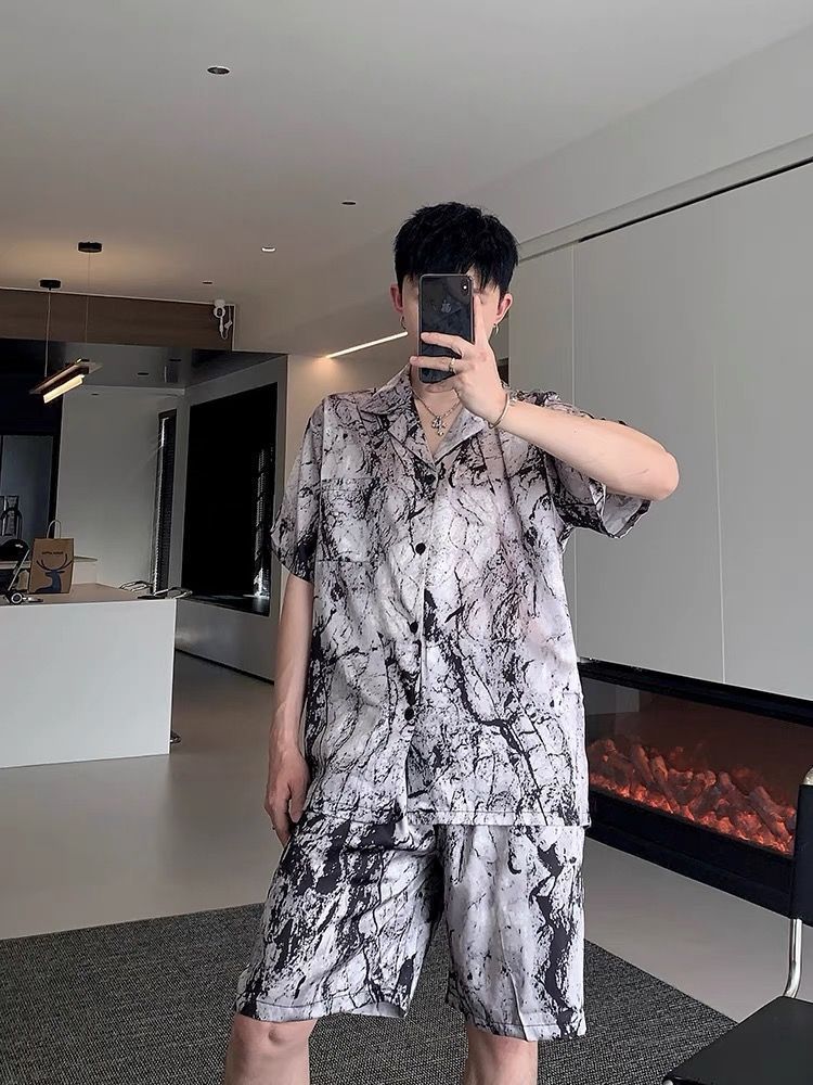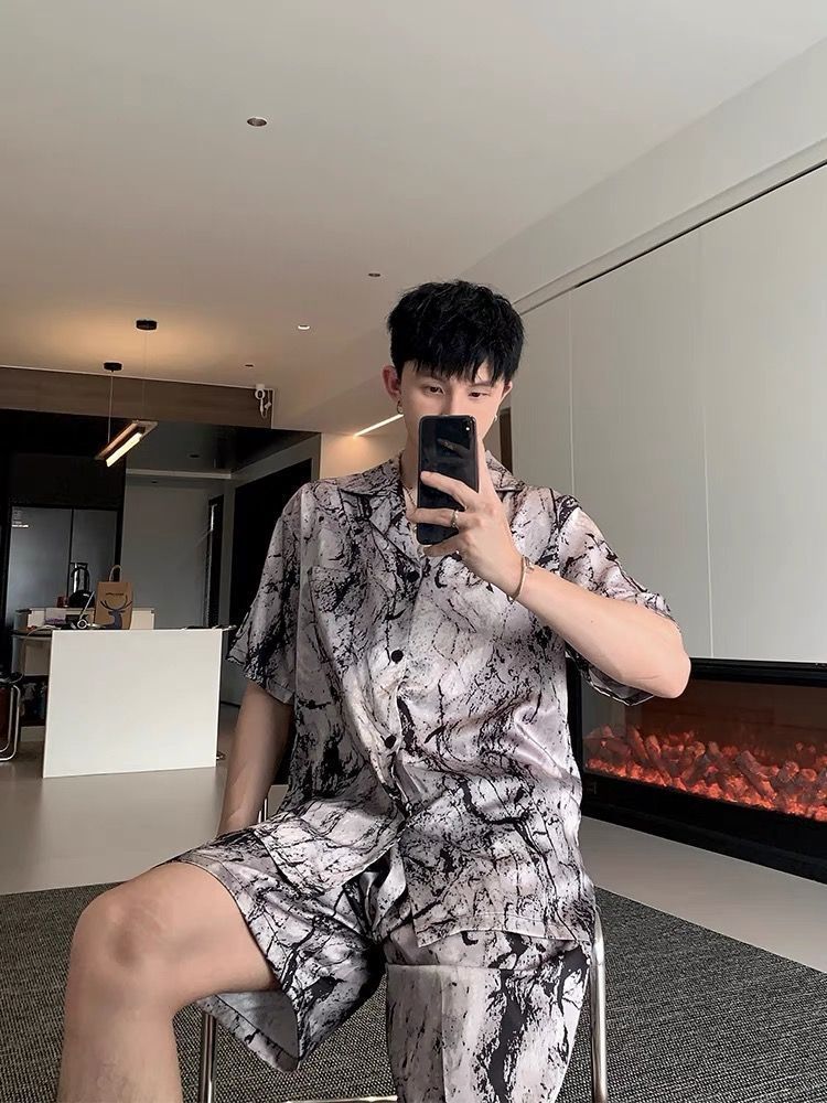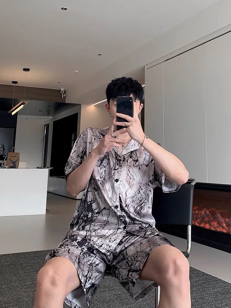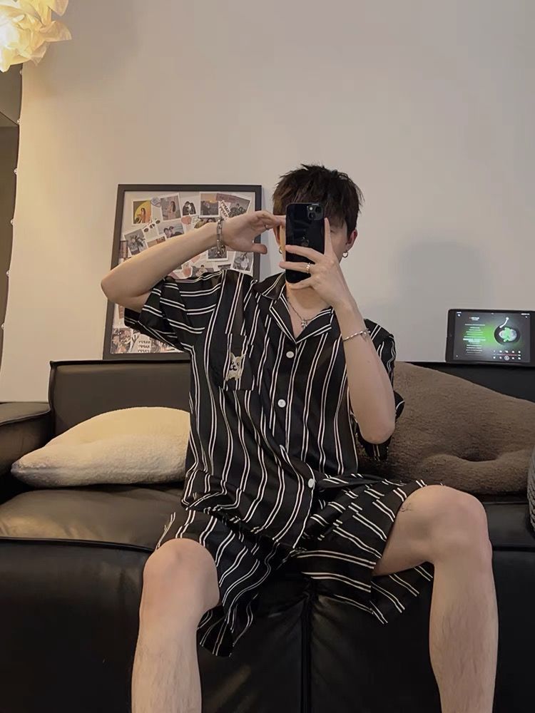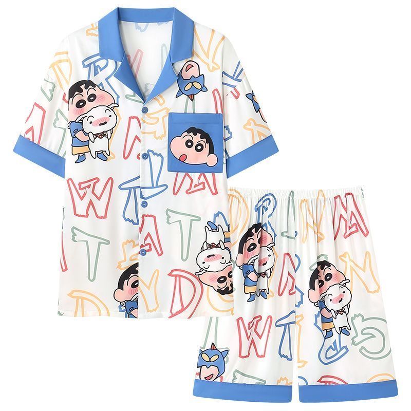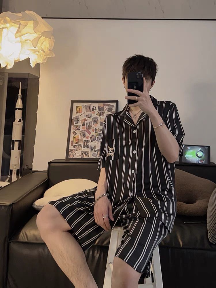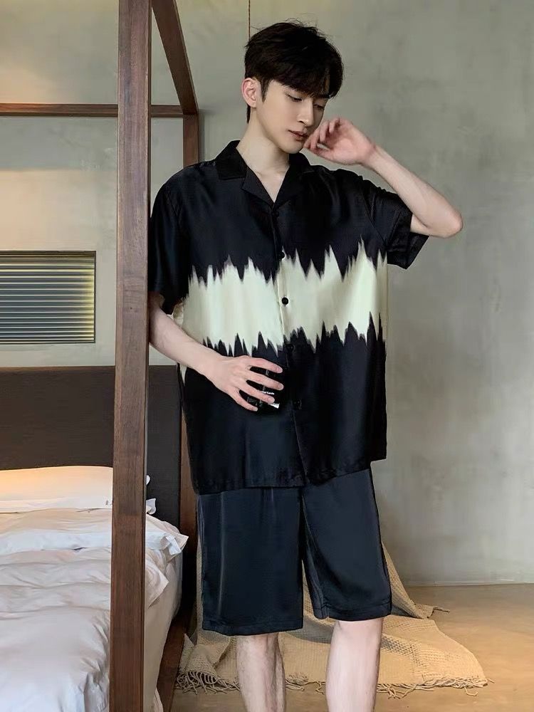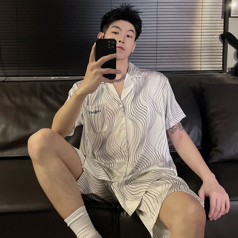 睡衣男冰丝夏季短袖薄款男士高颜值卡通加大码可外穿家居服套装