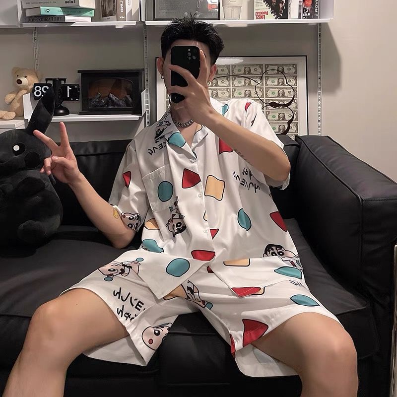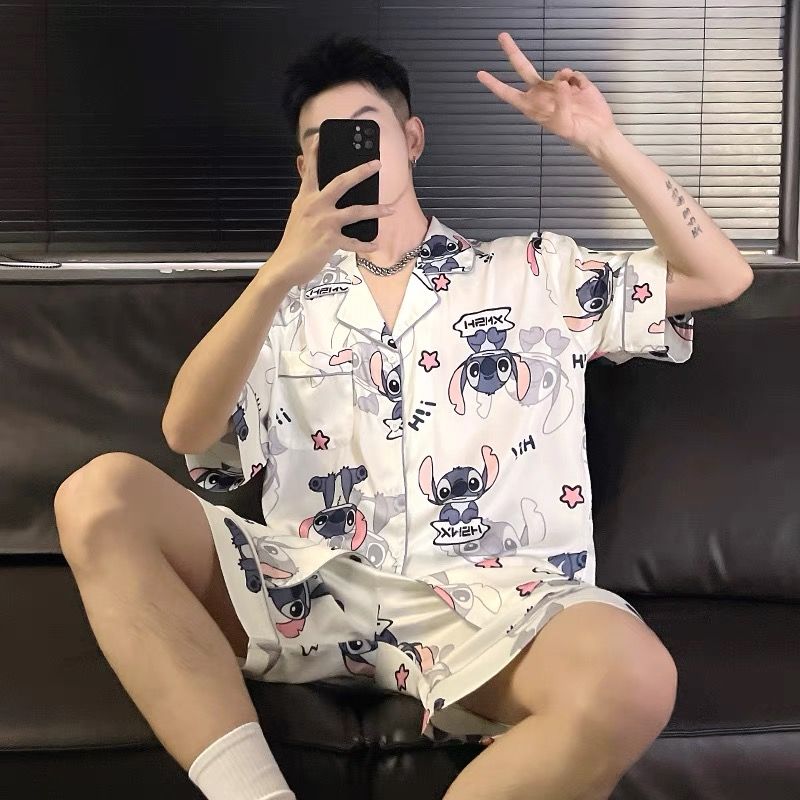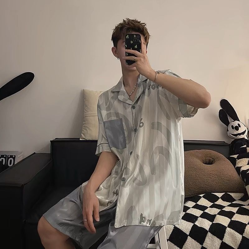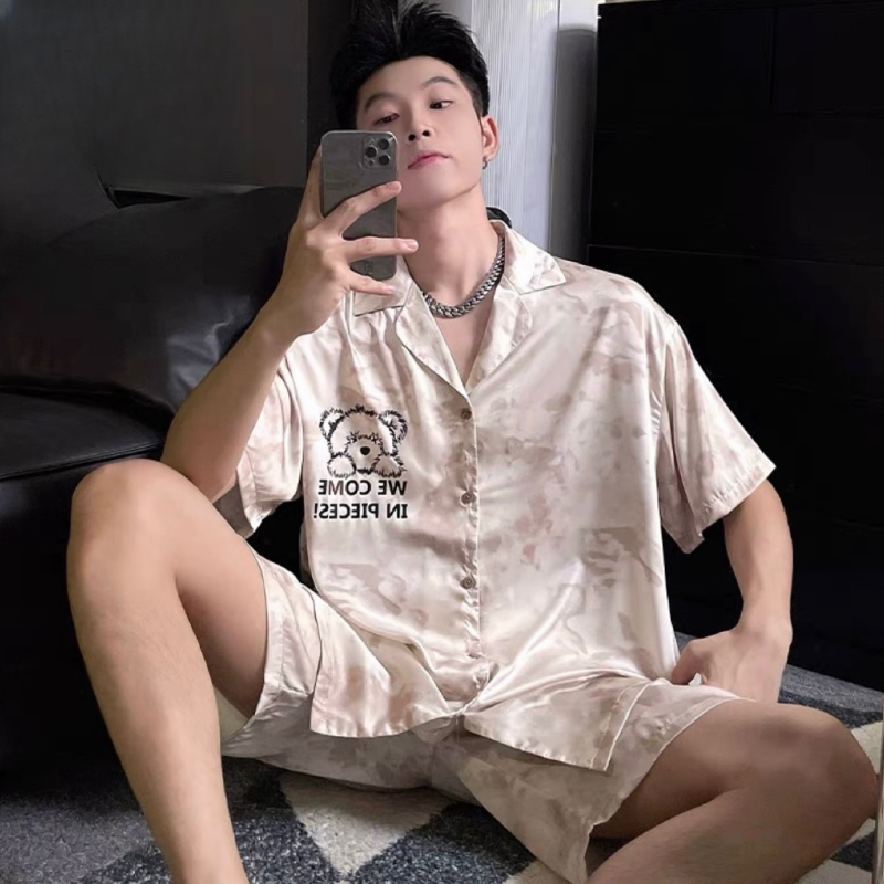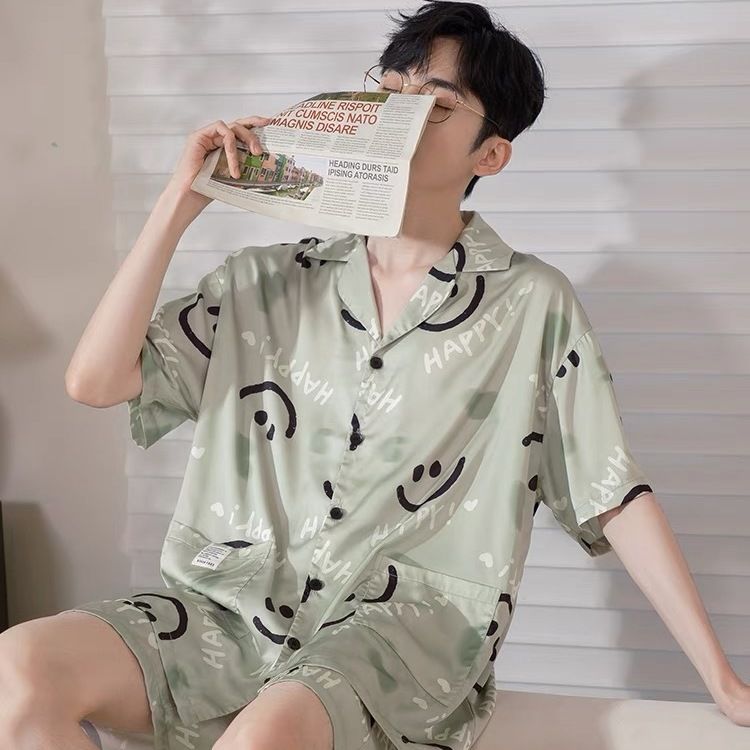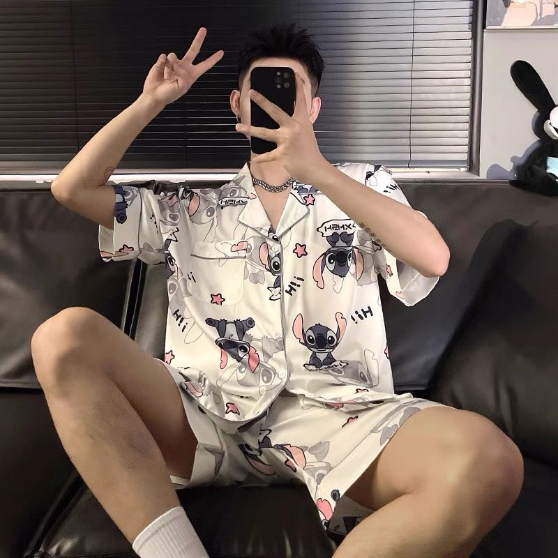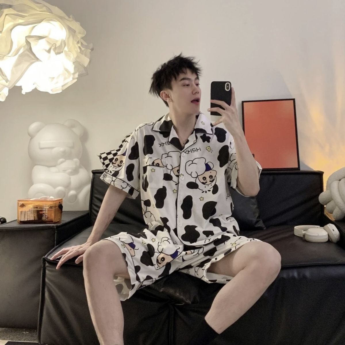 男士睡衣冰丝夏季短袖2024新款青少年卡通丝绸夏天薄款家居服套装