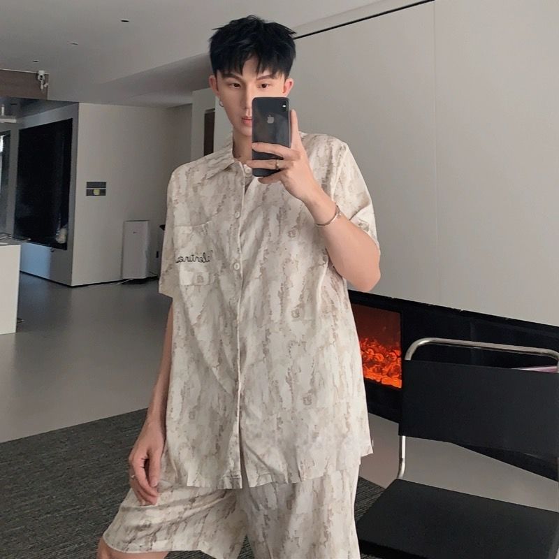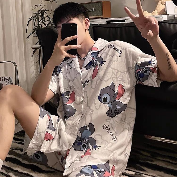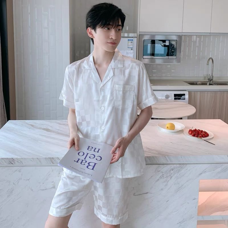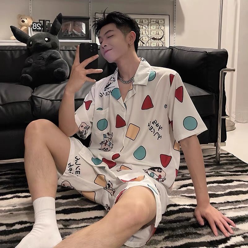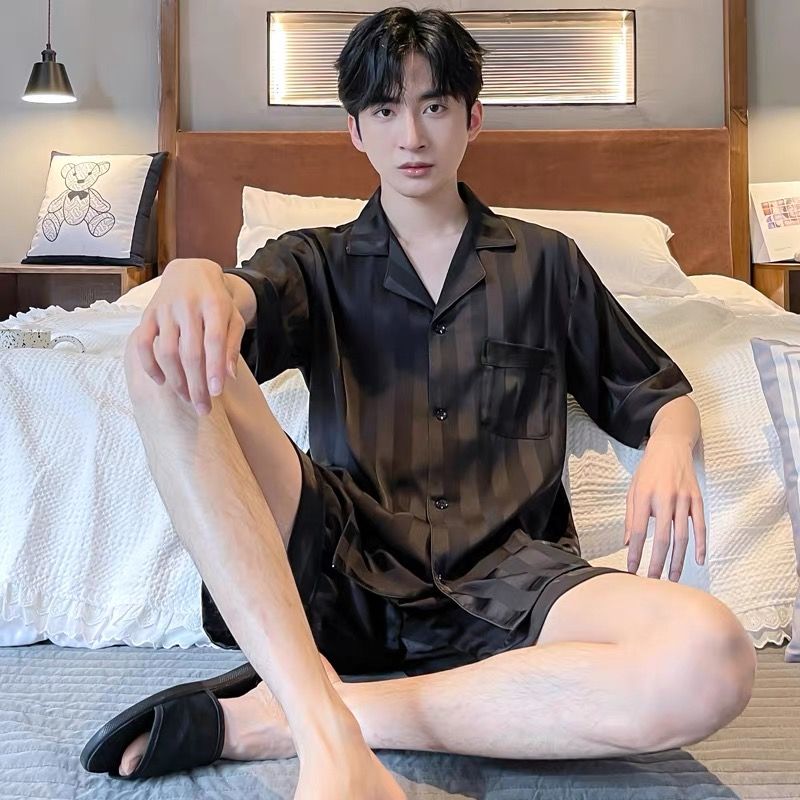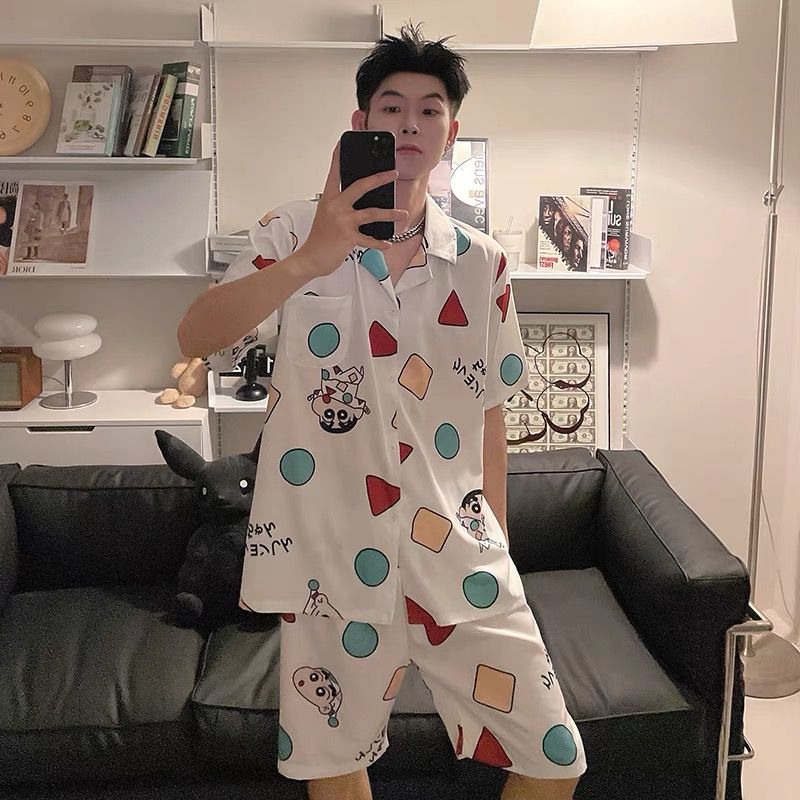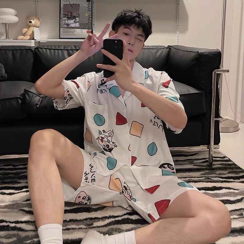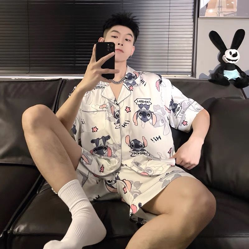 男士睡衣冰丝夏季短袖2024新款青少年卡通丝绸夏天薄款家居服套装