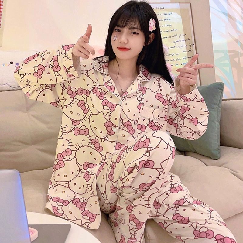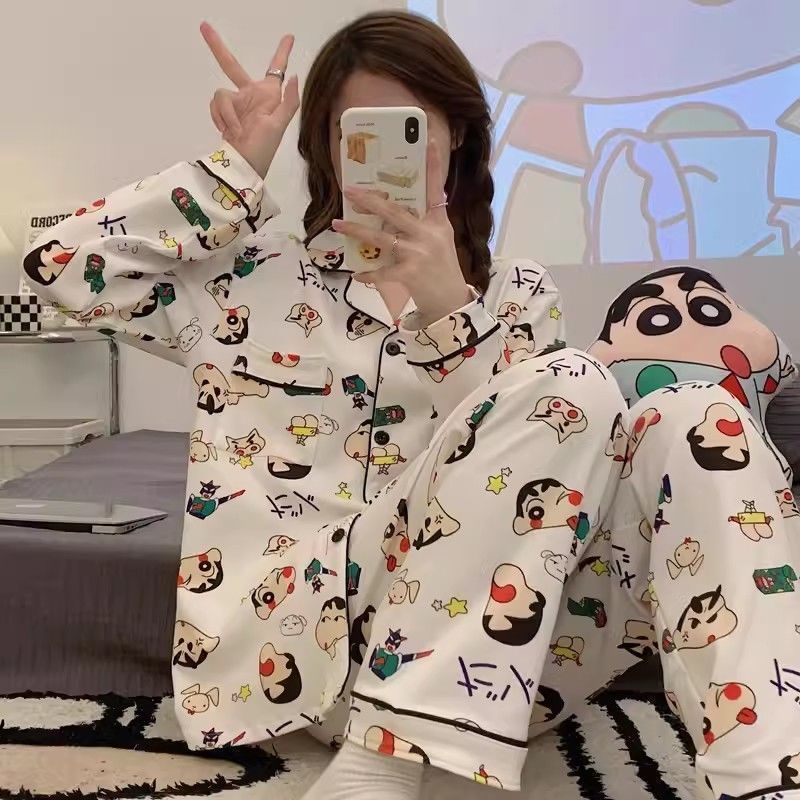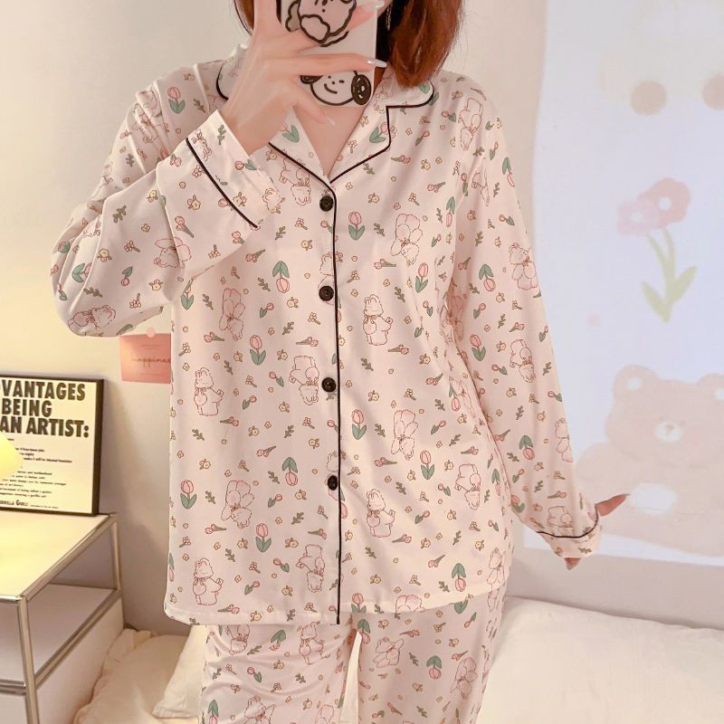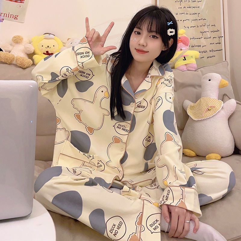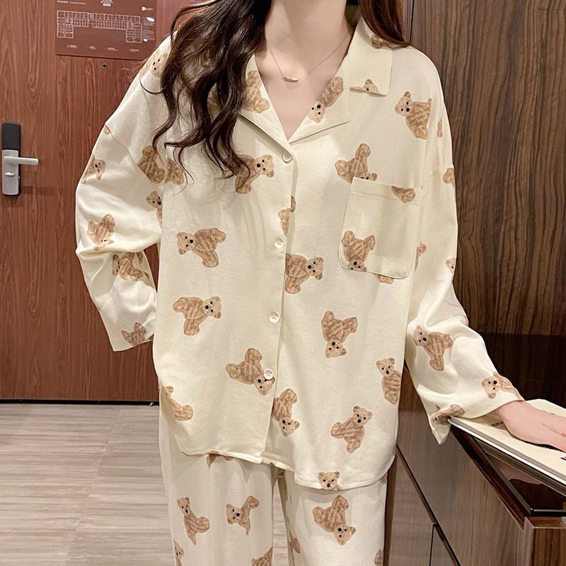 睡衣女春秋款纯棉长袖学生可爱大码家居服夏季2024年新款两件套装