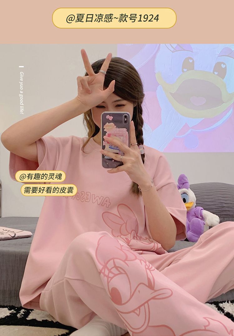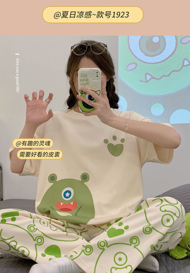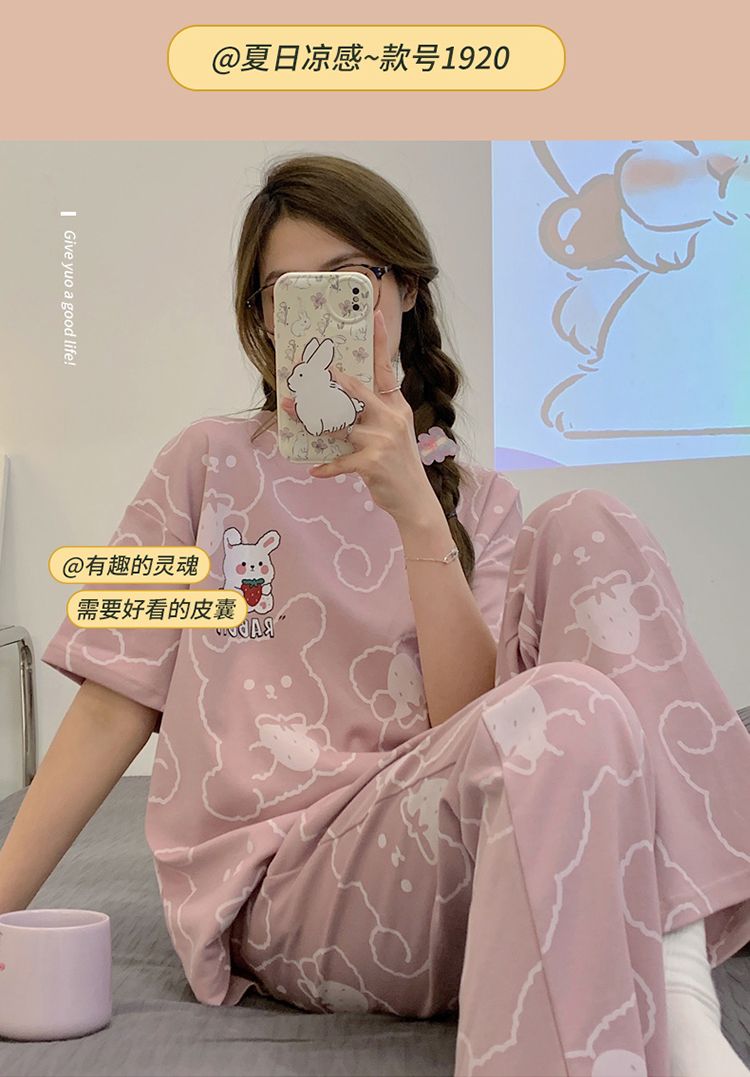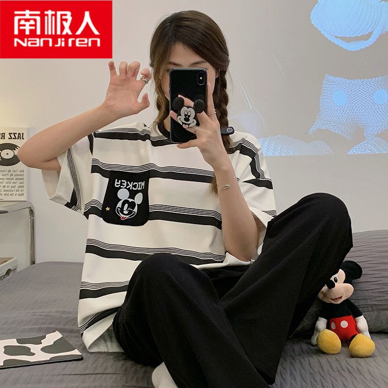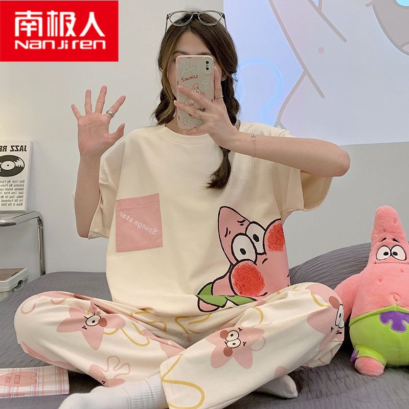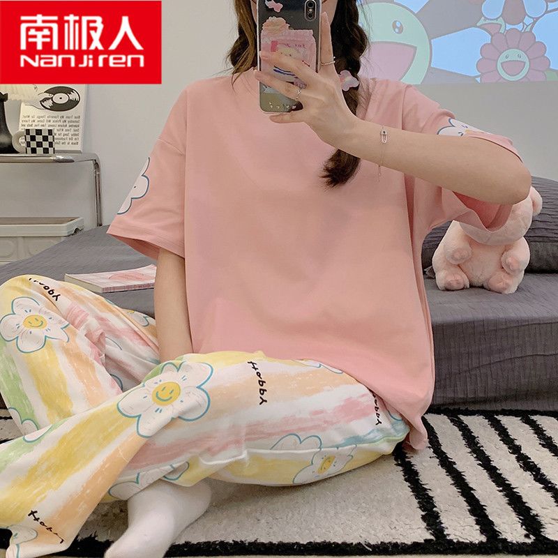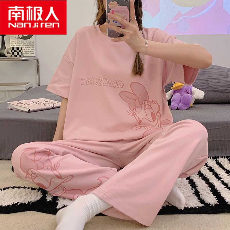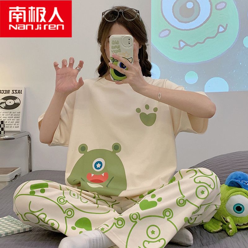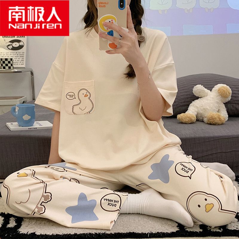 南极人睡衣女2023年新款夏季纯棉短袖长裤两件套装可爱薄款家居服