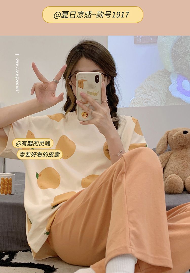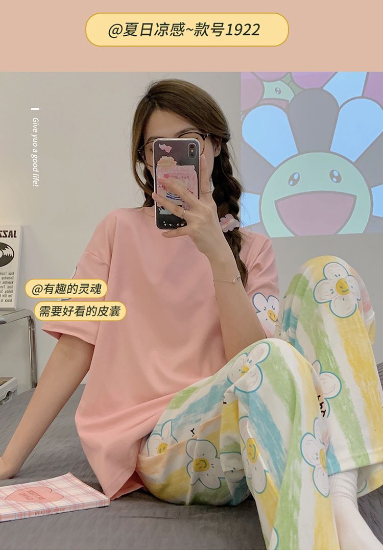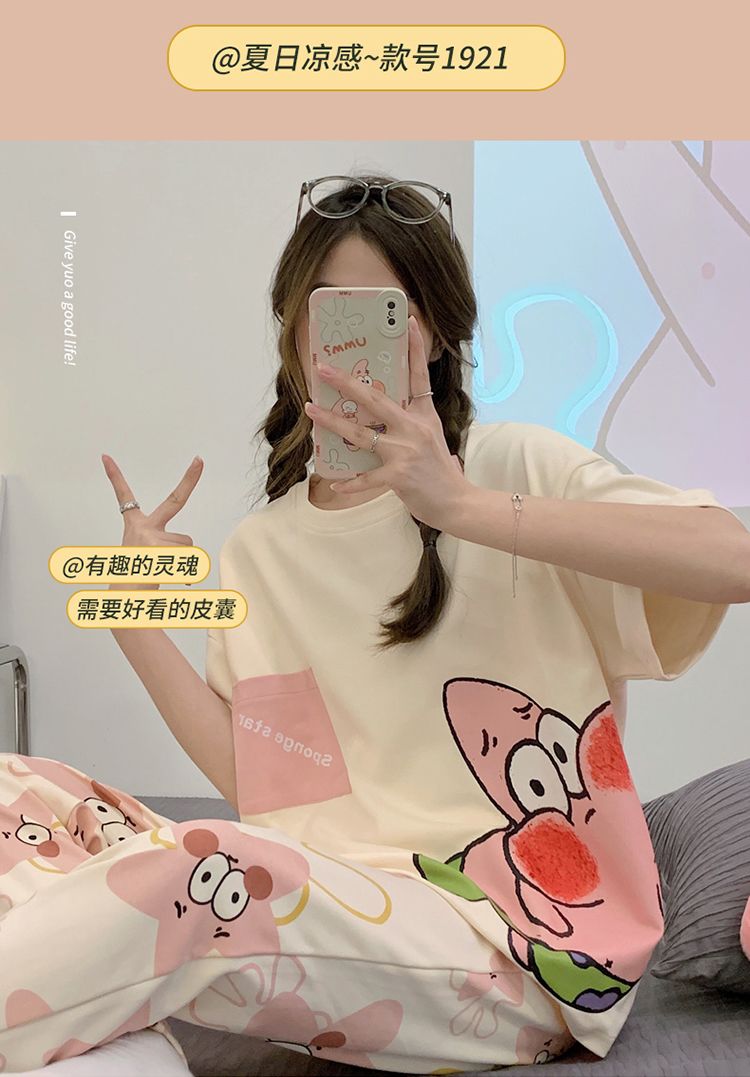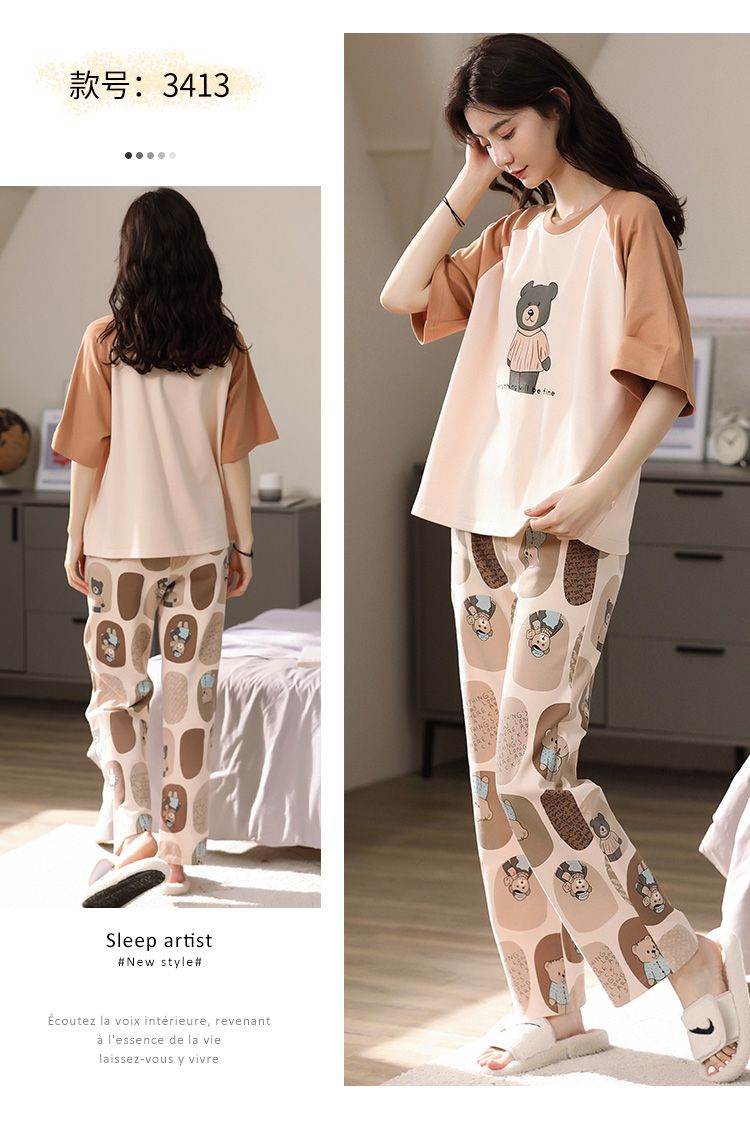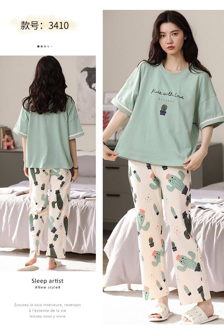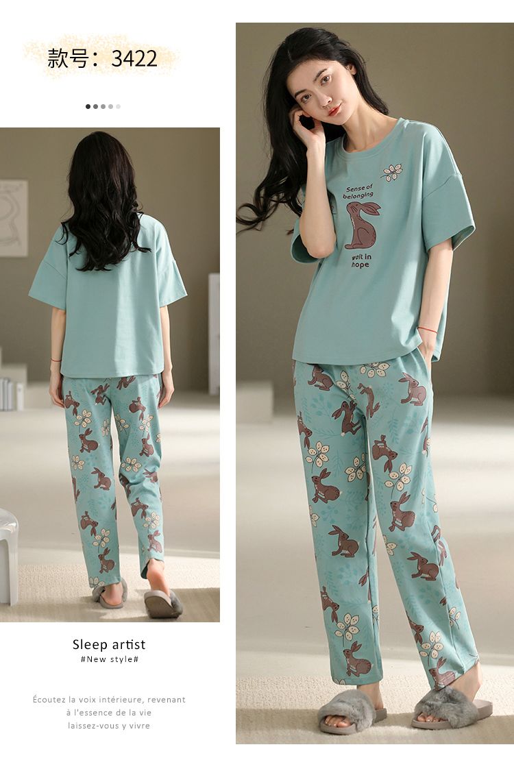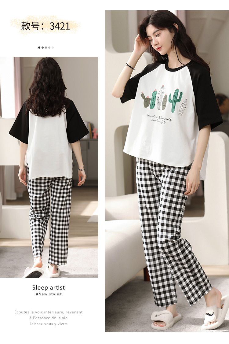 南极人睡衣女2023年新款夏季纯棉短袖长裤两件套装可爱薄款家居服