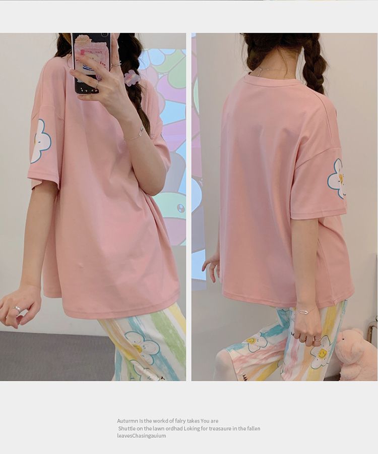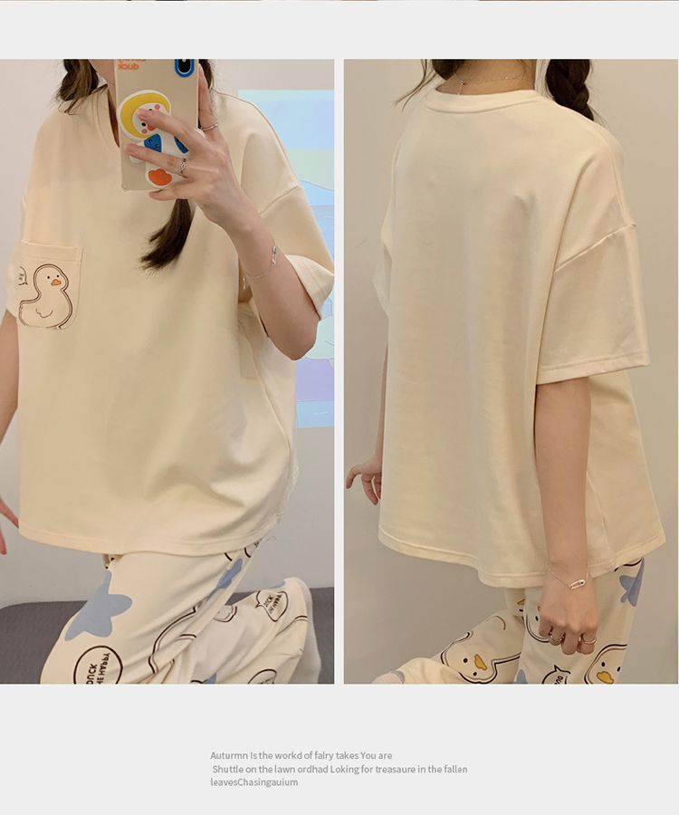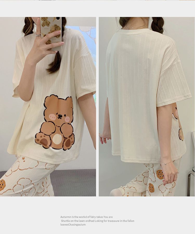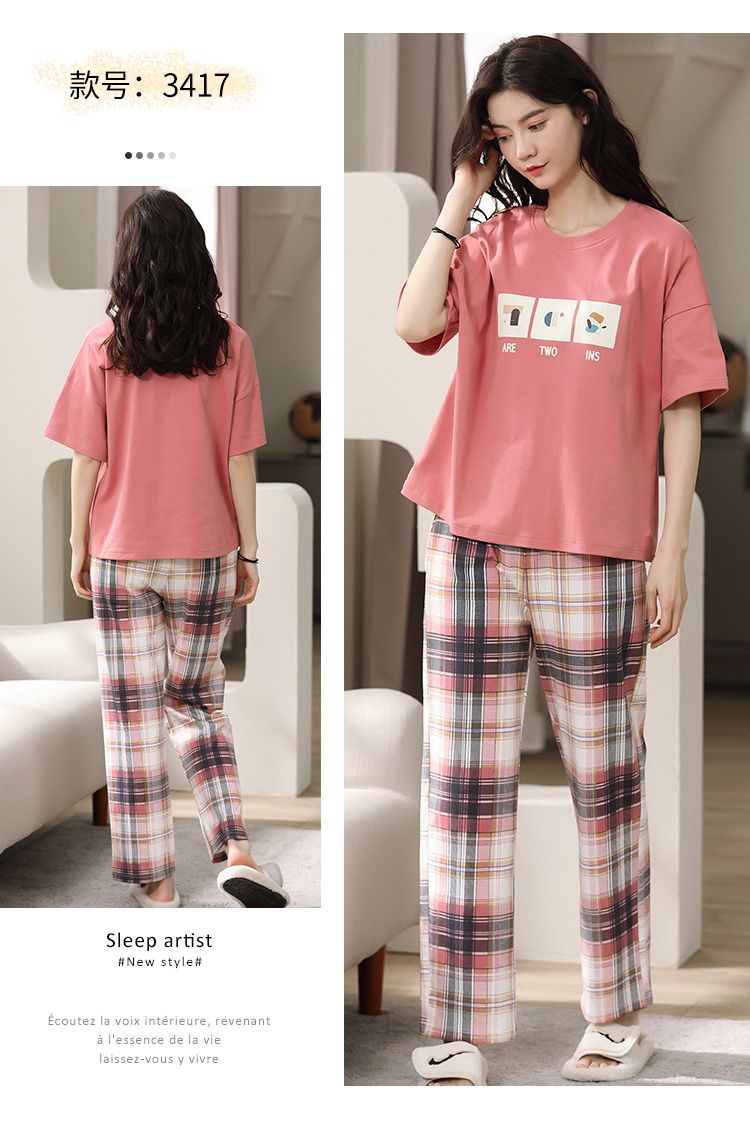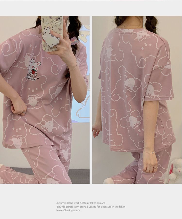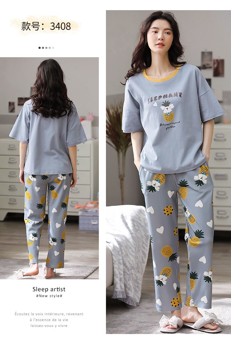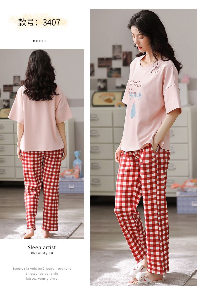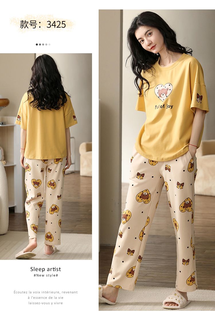 南极人睡衣女2023年新款夏季纯棉短袖长裤两件套装可爱薄款家居服