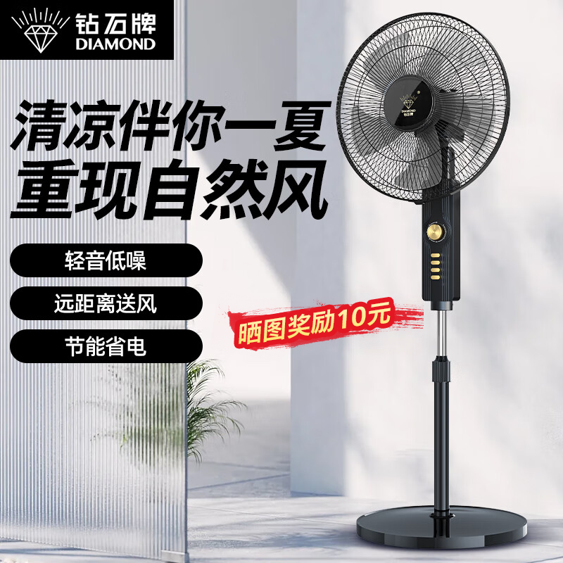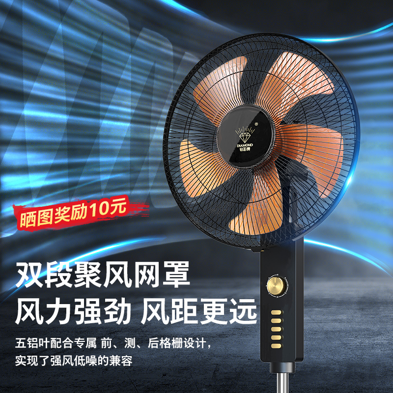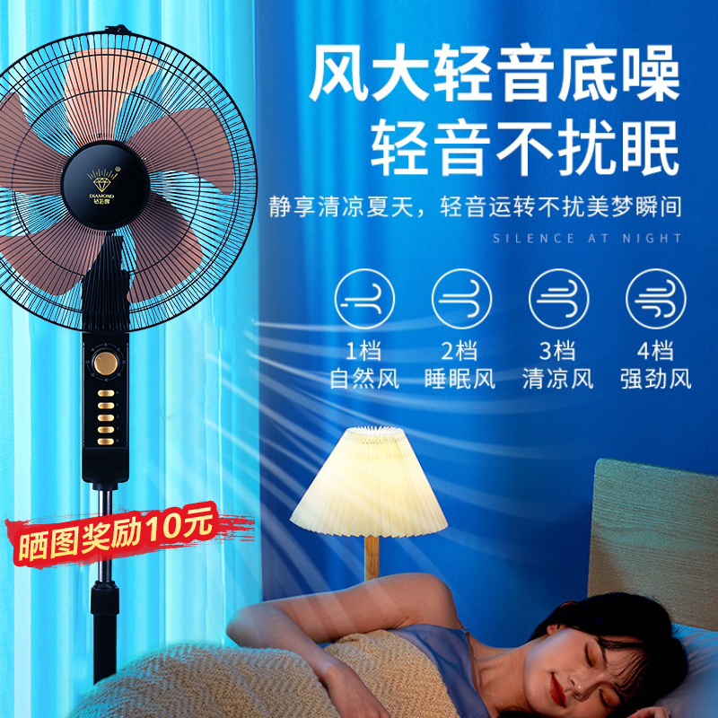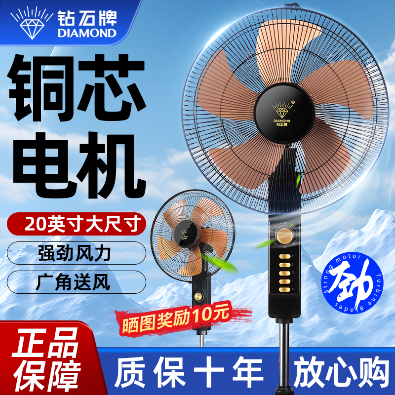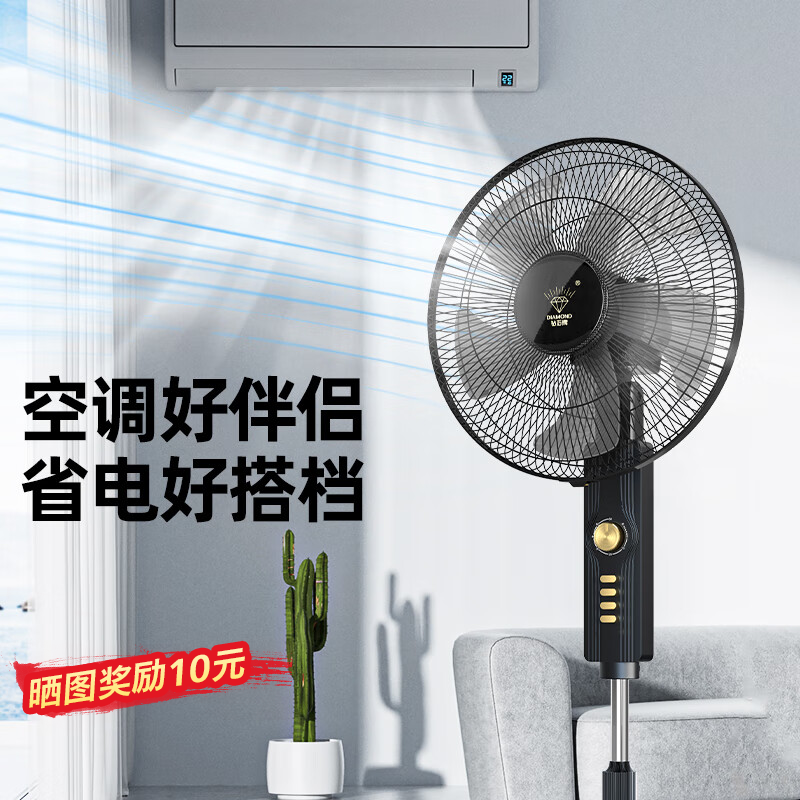 钻石牌风扇落地式电风扇家用卧室强力大风力电扇台立式遥控落地扇