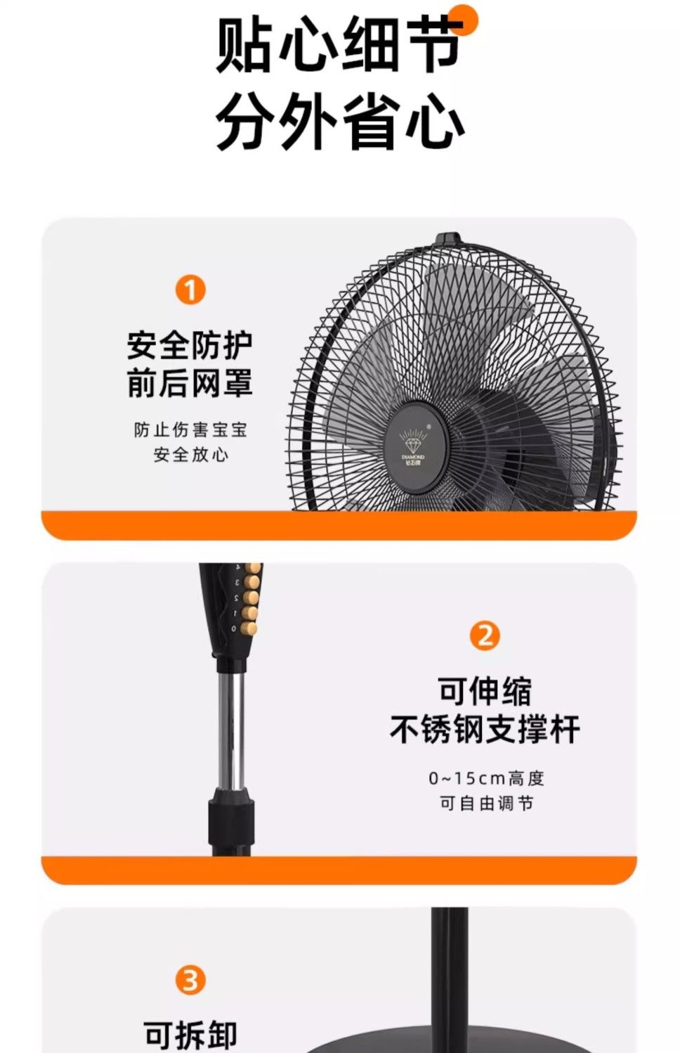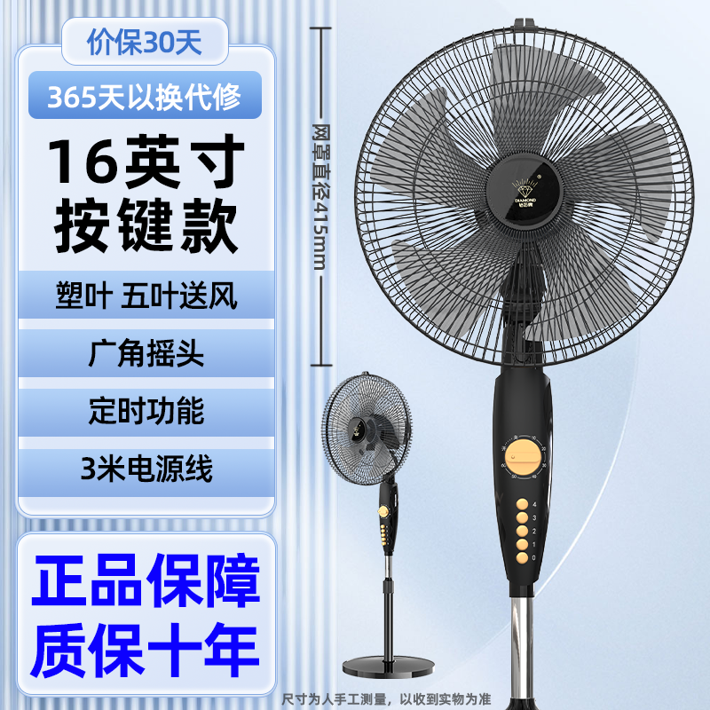 | 16-inch button plastic five-leaf upgraded copper core motor(16英吋 按键款塑五叶 升级铜芯电机) | USD $27.31 | 99999 piece available |