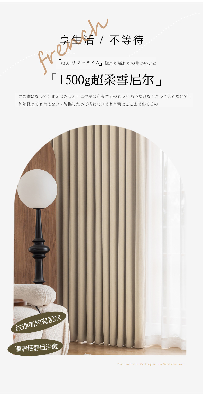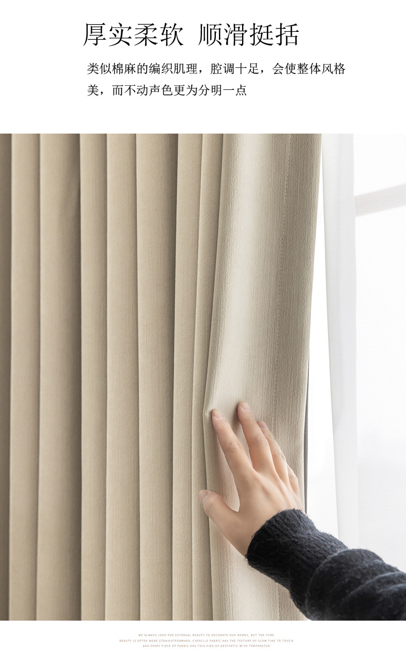 全遮光加厚奶油丝绒雪尼尔窗帘客厅卧室高级感绍兴柯桥成品批发布