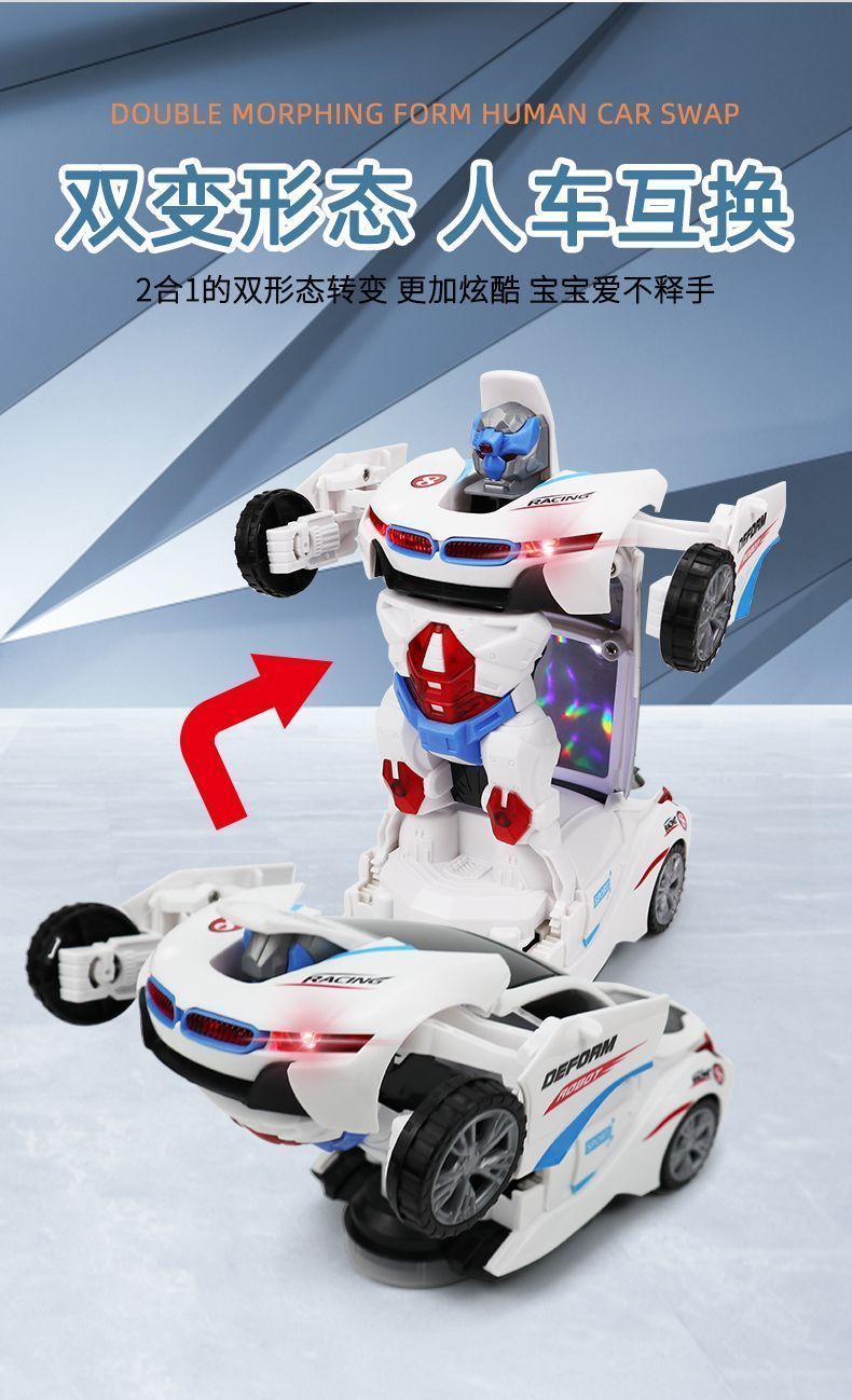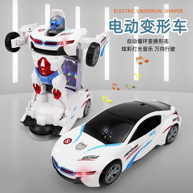 儿童变形机器人玩具汽车男孩3一6岁电动音乐万向赛车宝宝玩具车7