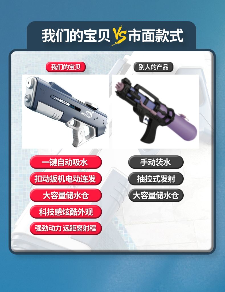 儿童电动连发脉冲水枪自动吸水泼水节玩具强力喷水高压呲水枪男孩