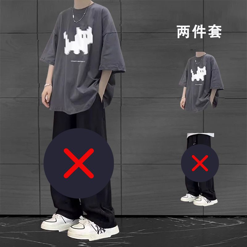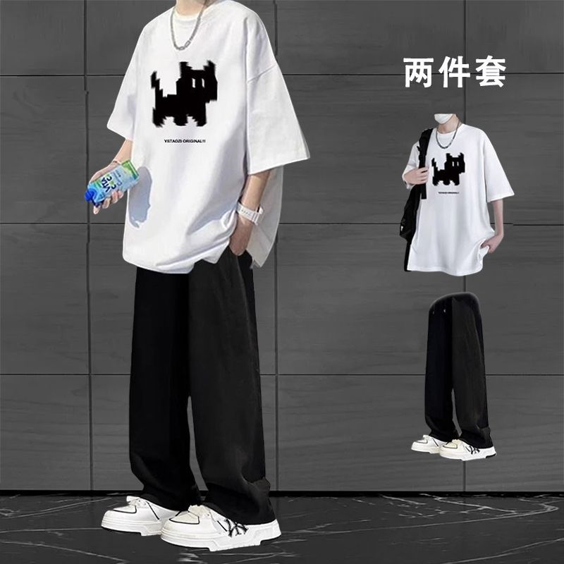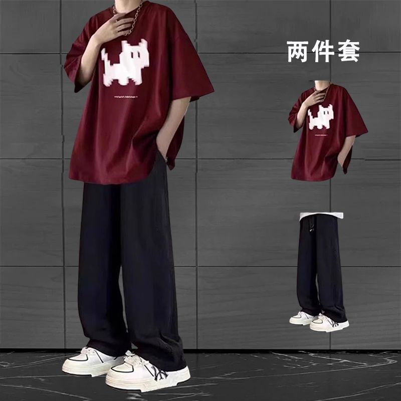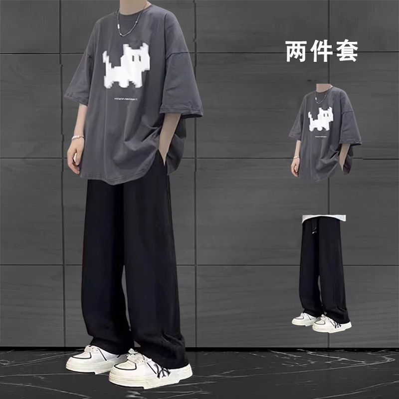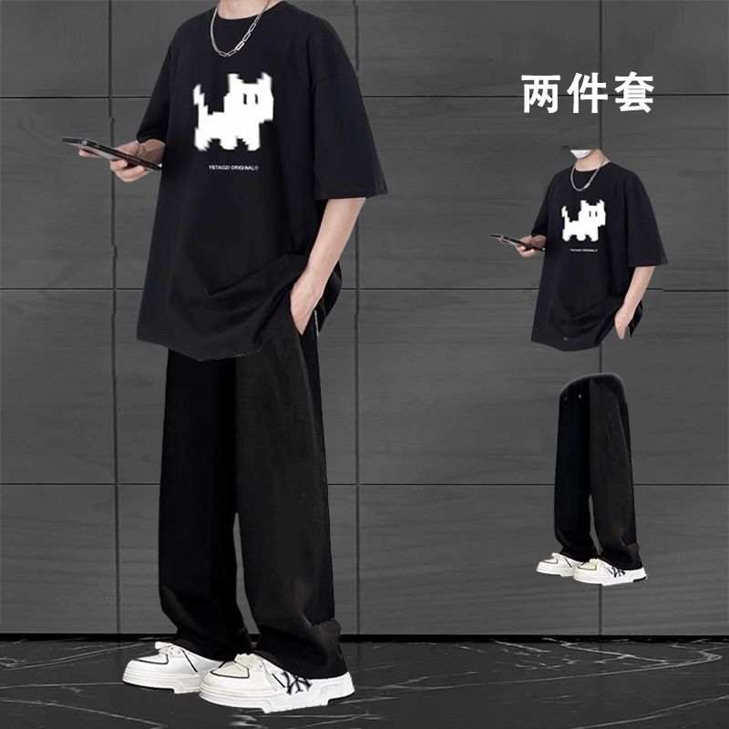 夏季套装短袖t恤男一套青少年学生帅气搭配男装运动休闲裤t两件套