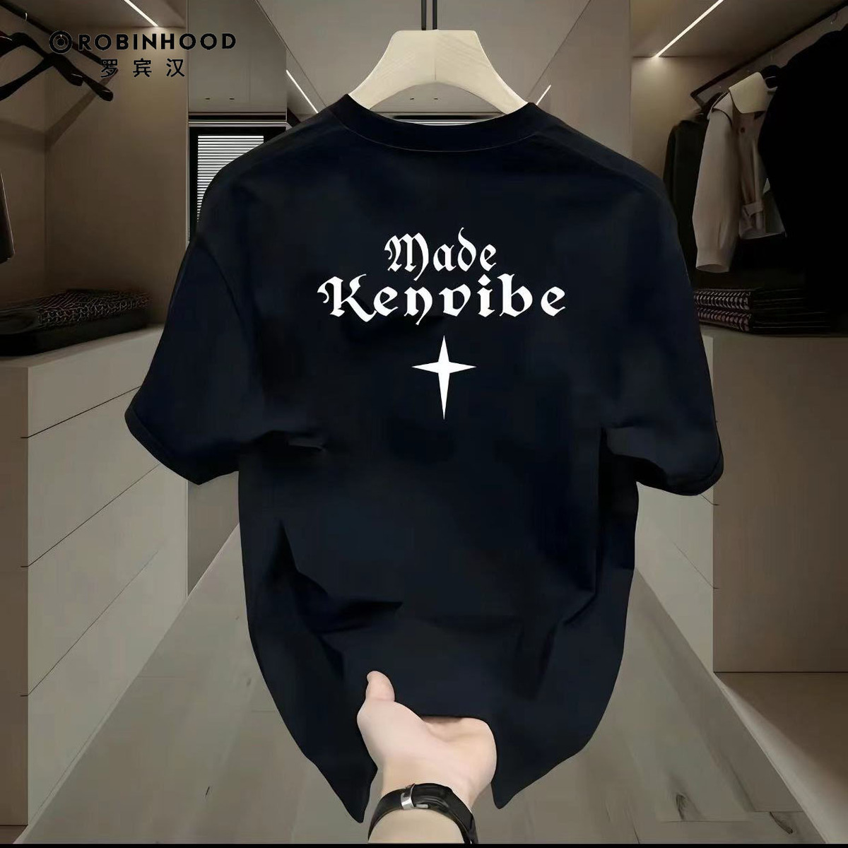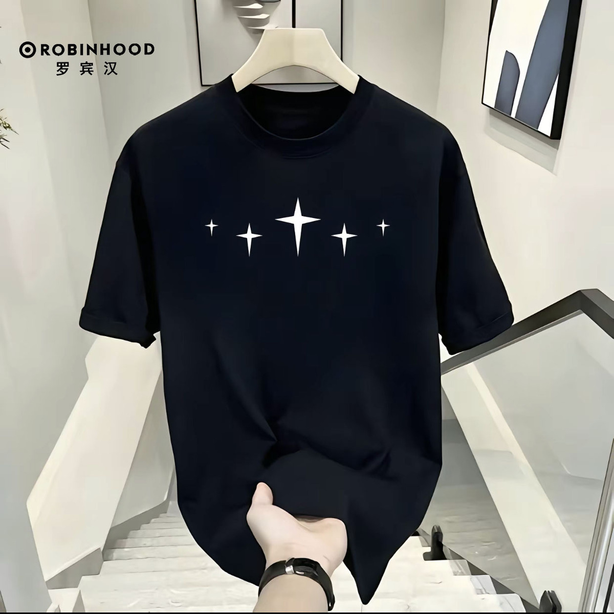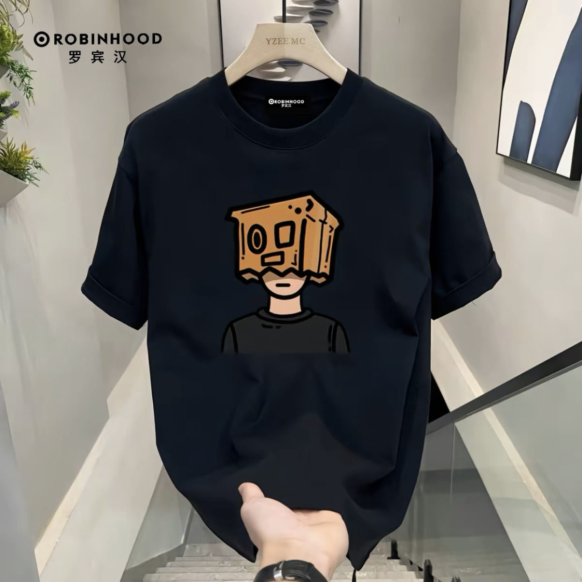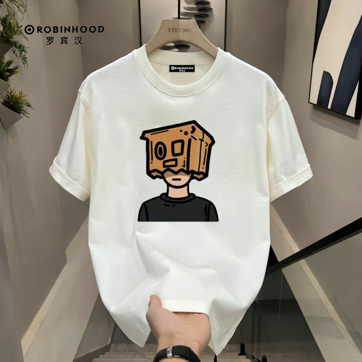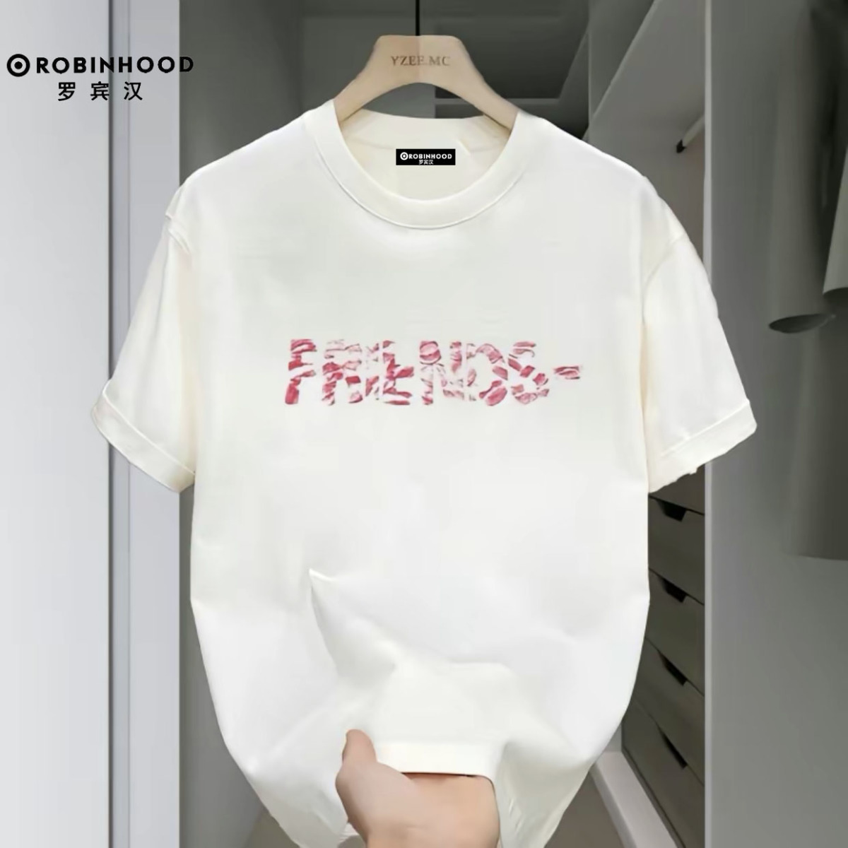 罗宾汉100%纯棉短袖T恤男女ins风宽松简约百搭上衣潮牌情侣装T恤