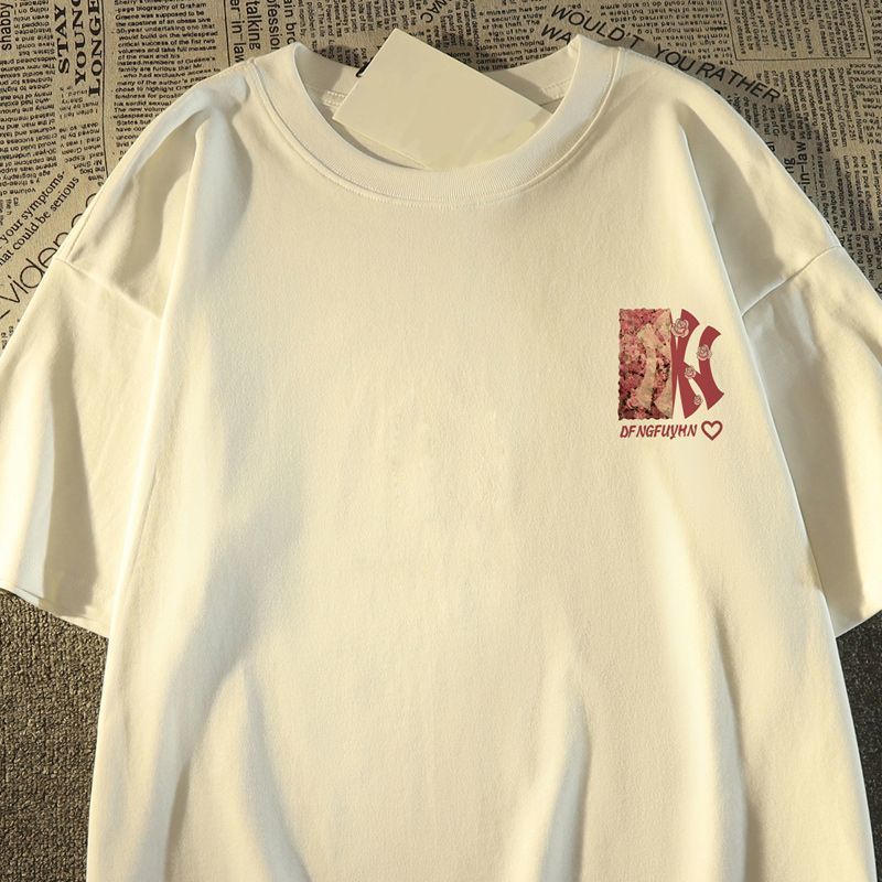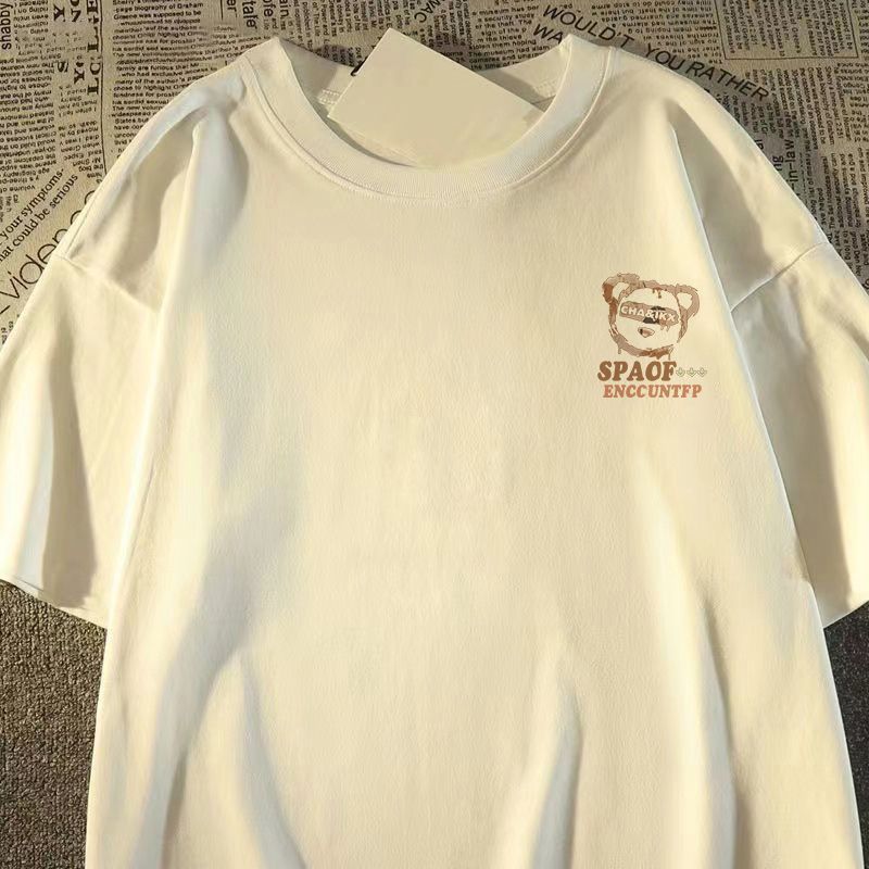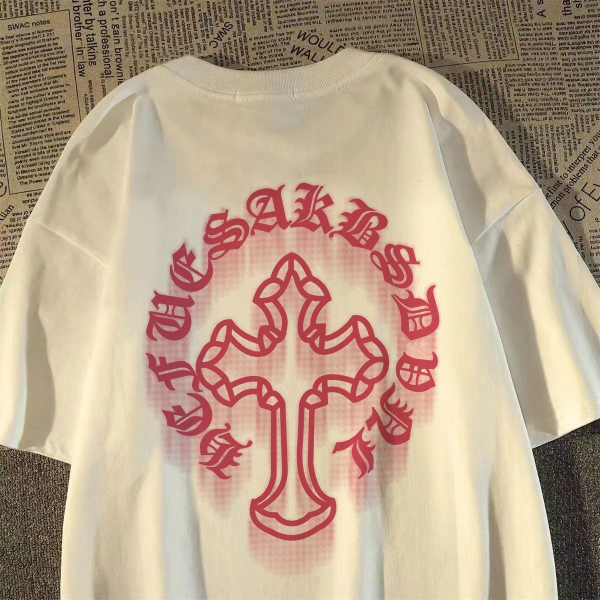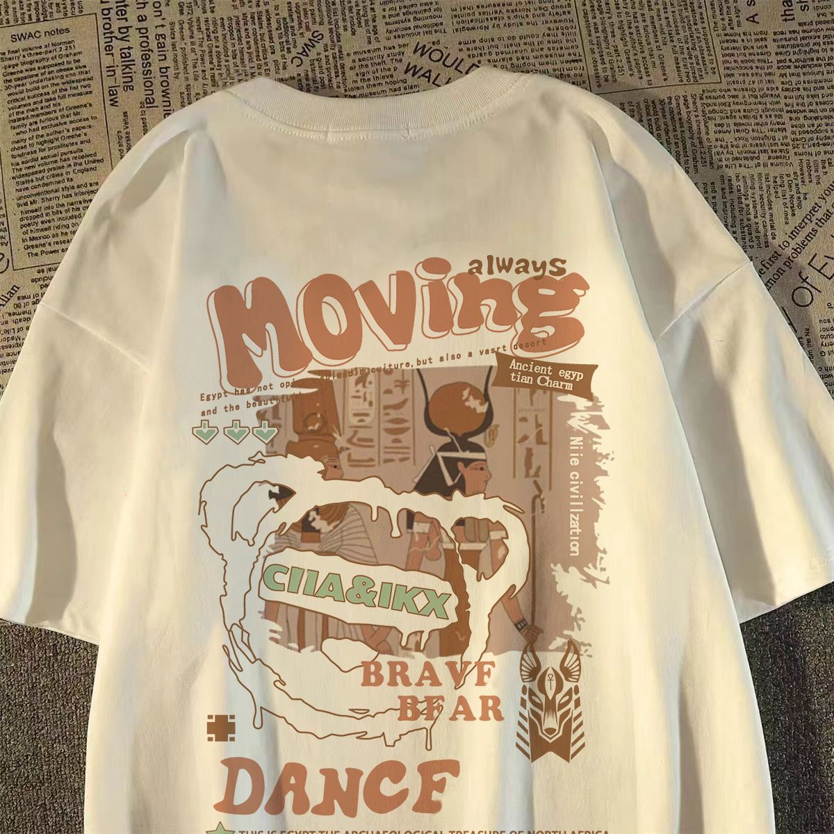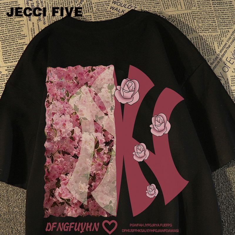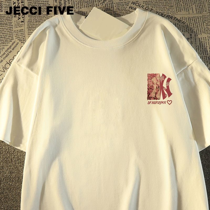 JECCIFIVE100%纯棉美式复古短袖T恤男夏2024新款宽松百搭上衣ins
