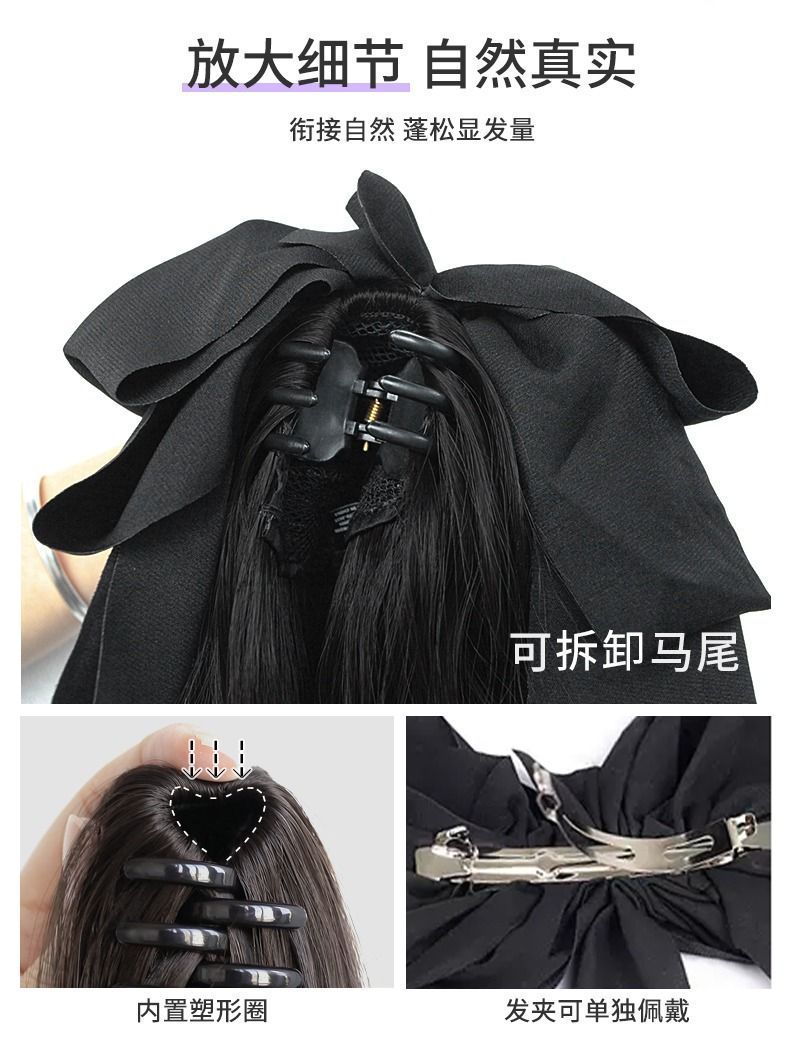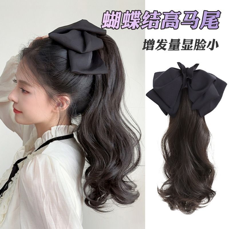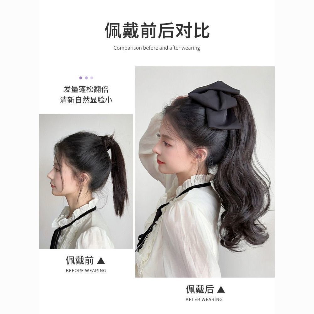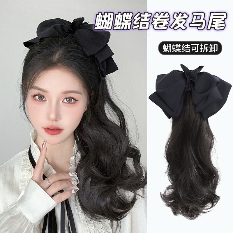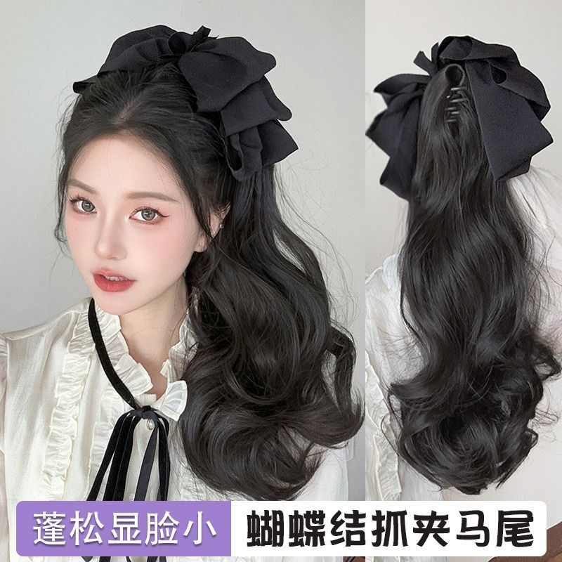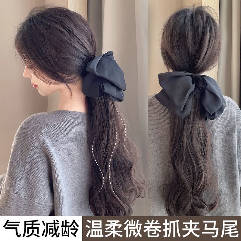 蝴蝶结马尾女抓夹大波浪头饰低马尾长发仿真发低扎发辫子卷发马尾