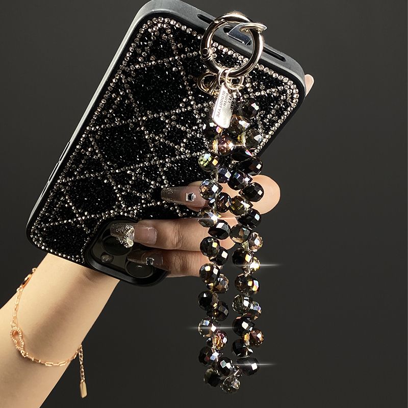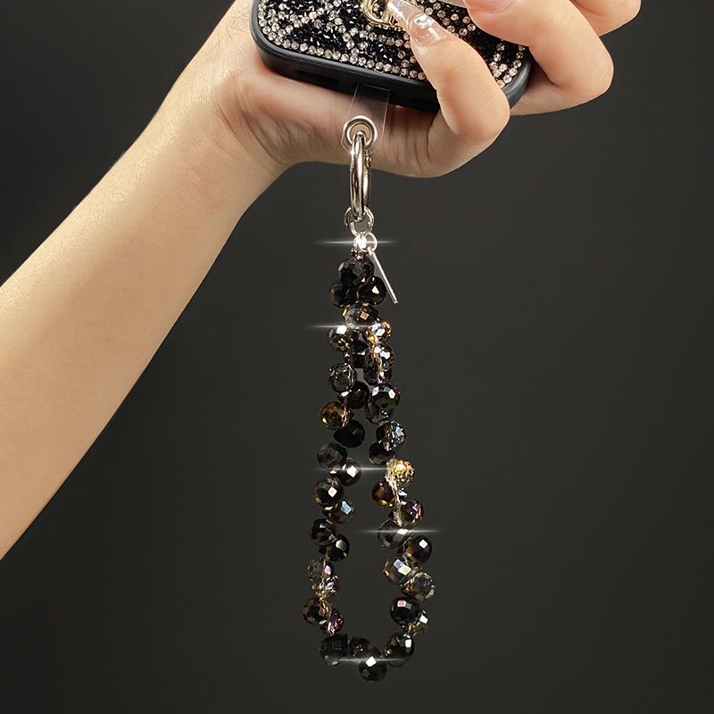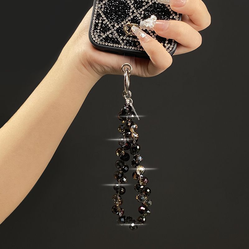 时尚黑琥珀炫彩水晶手机链女2024年新款手机壳挂链串珠链条挂绳