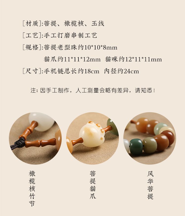 猫爪菩提串珠手机挂绳链条手机壳挂件手腕绳子短款女精致挂饰吊坠