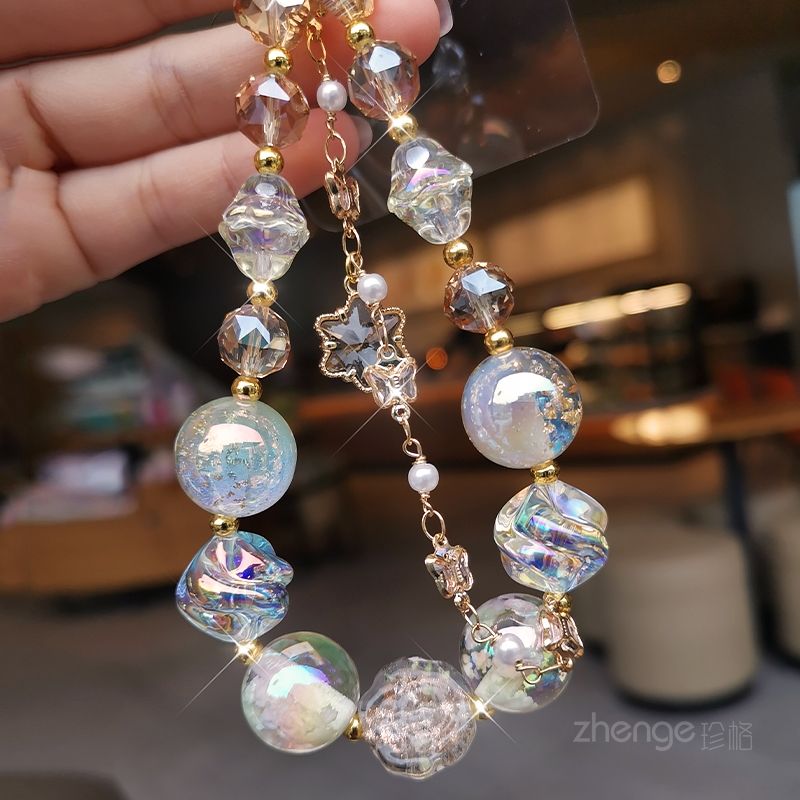 手机挂绳梦幻星空水晶珠手链女款精品手作时尚小香风手提手腕挂饰