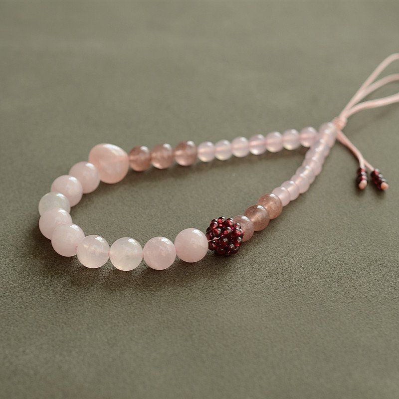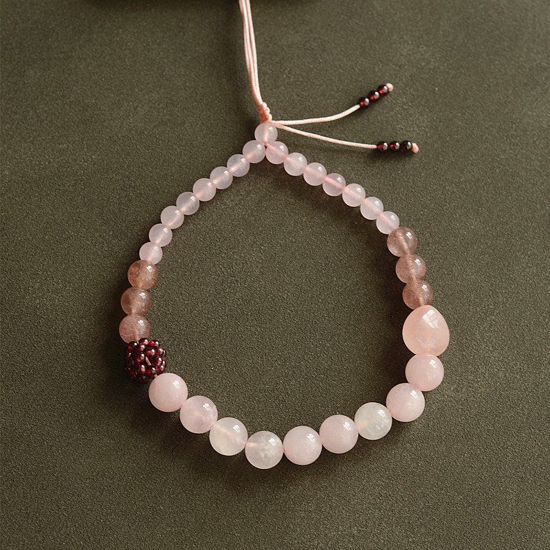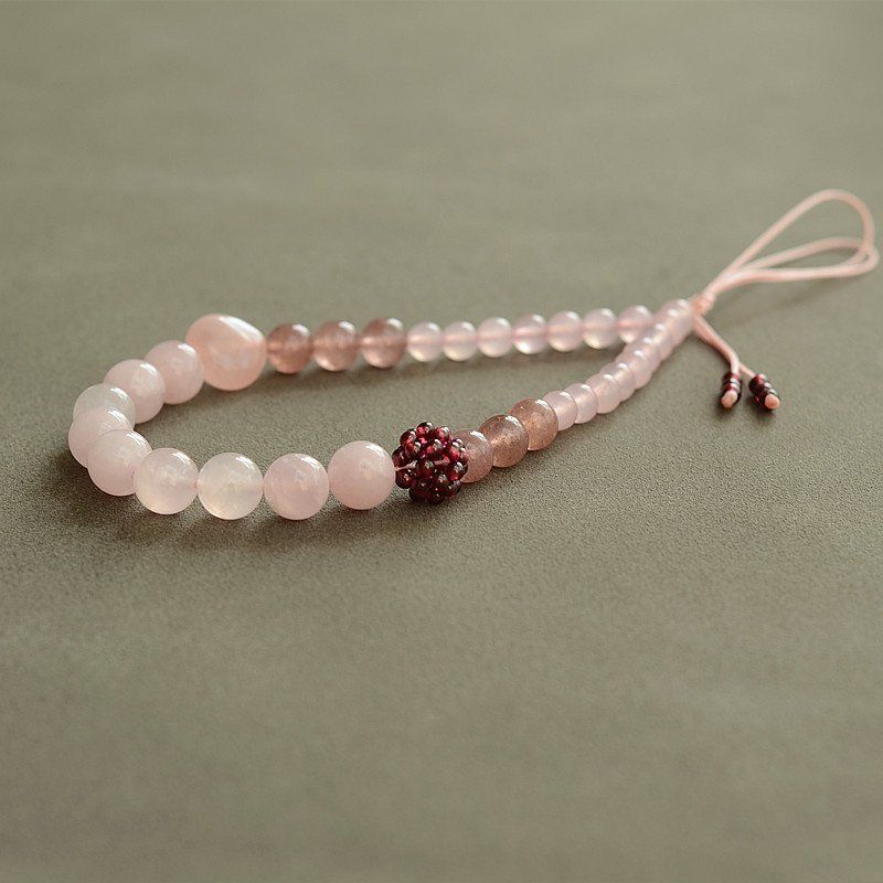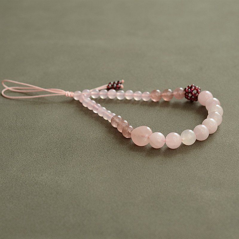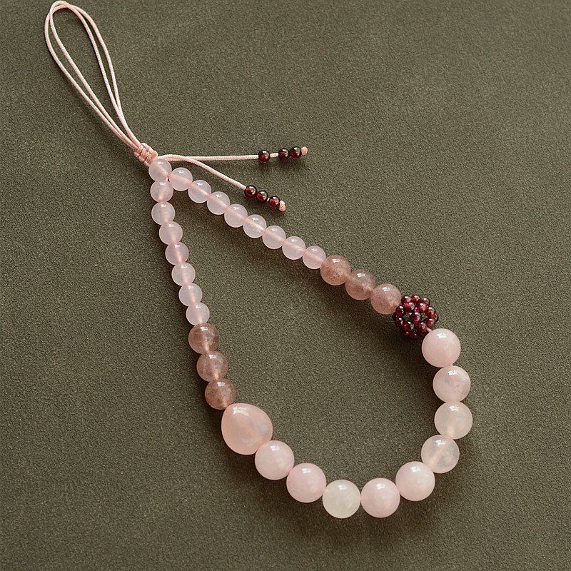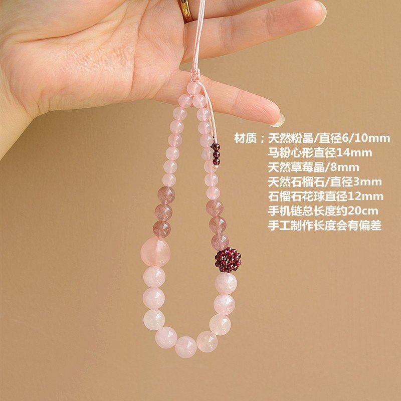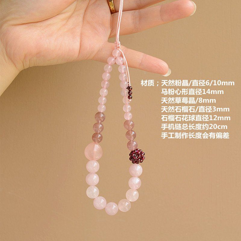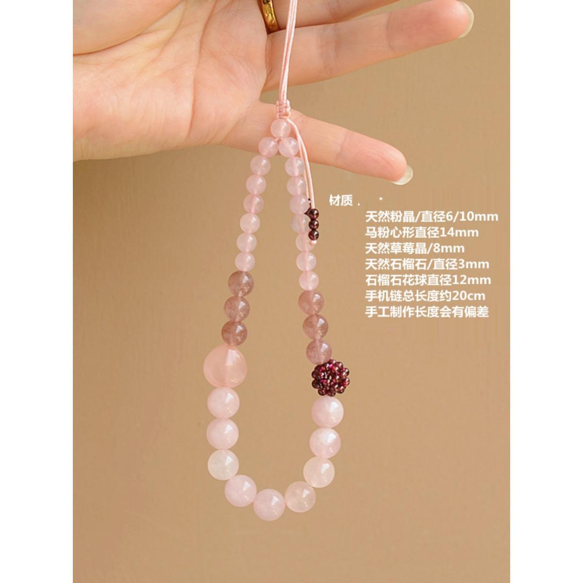 粉水晶石榴石草莓晶水晶手机挂绳女款挂件挂饰手机链手机坠防丢
