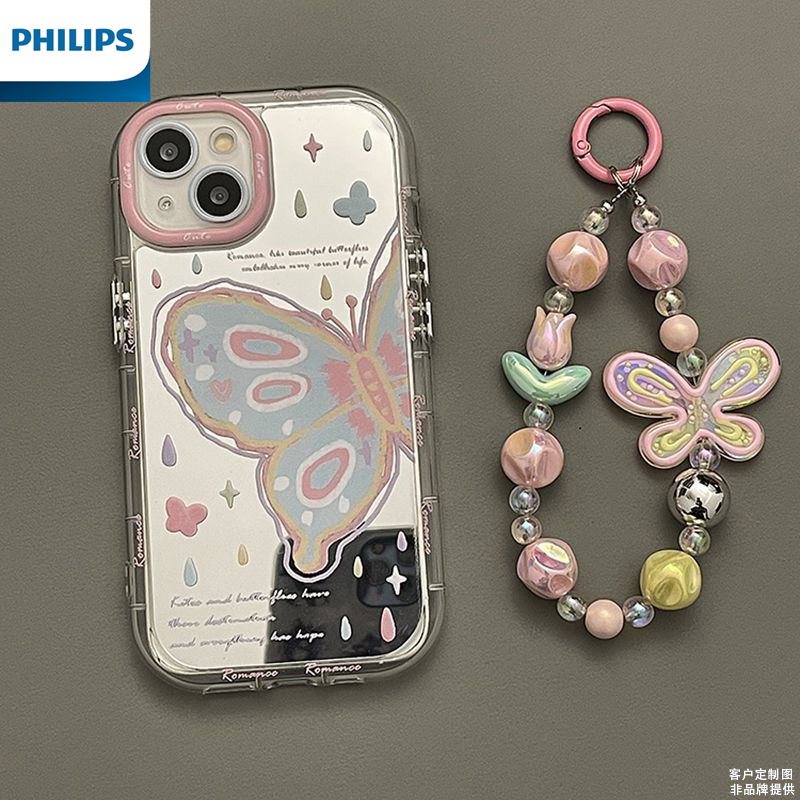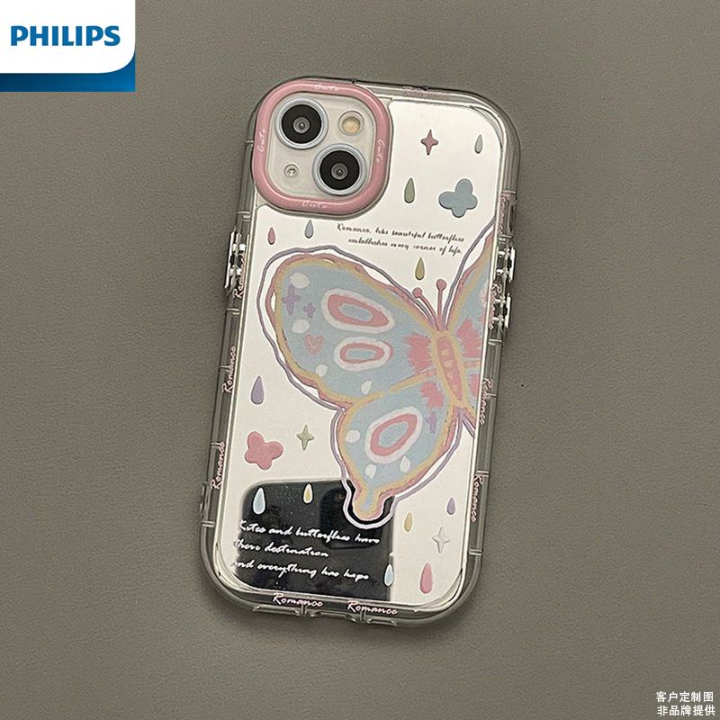飞利浦镜面蝴蝶适用iphone15plus手机壳14/13pro个性12mini女软壳