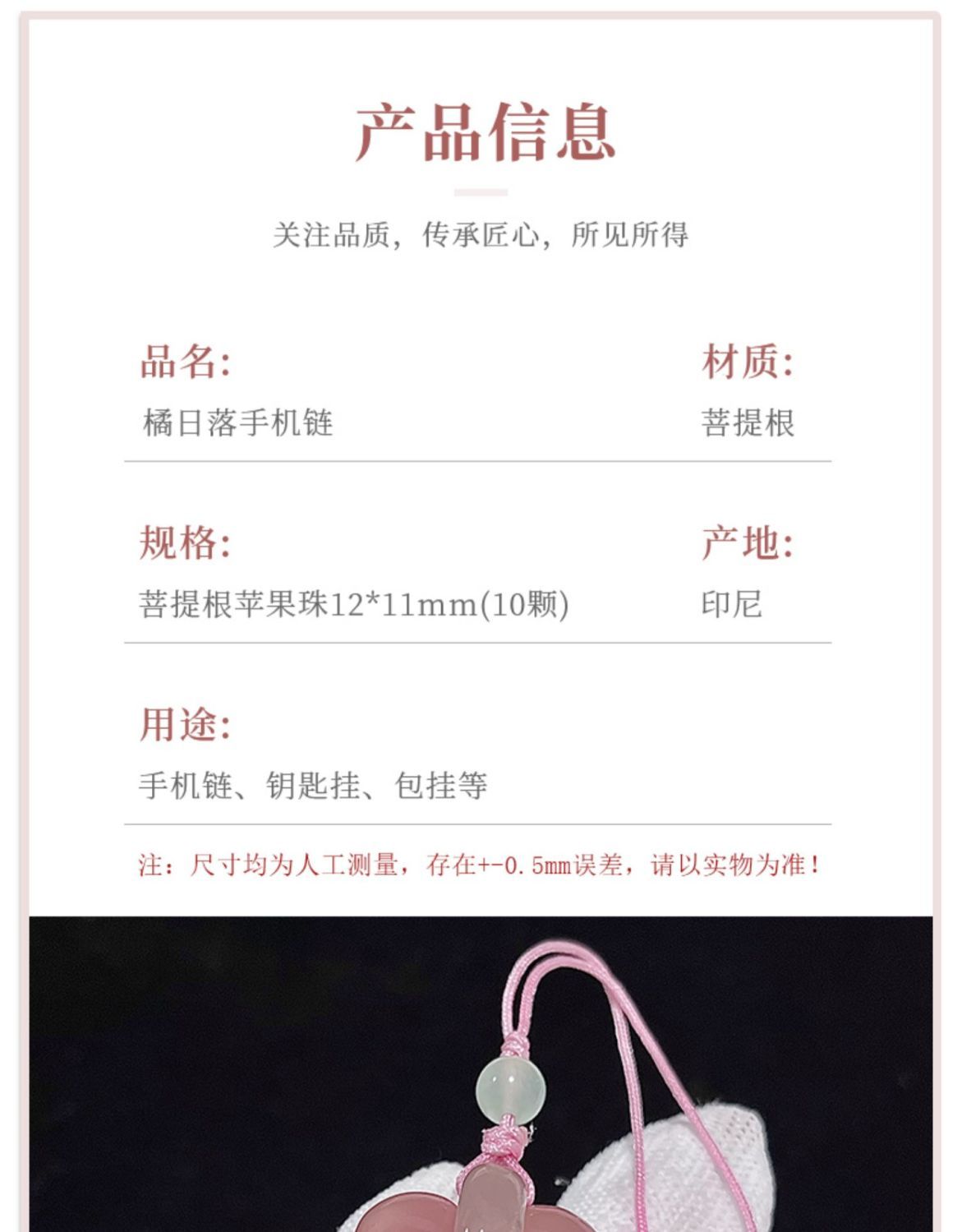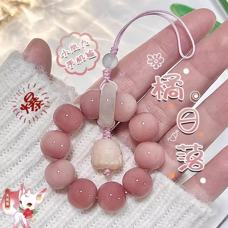 ~橘日落粉色菩提根手机链挂绳情侣手机壳挂件短款U盘吊坠钥匙链女