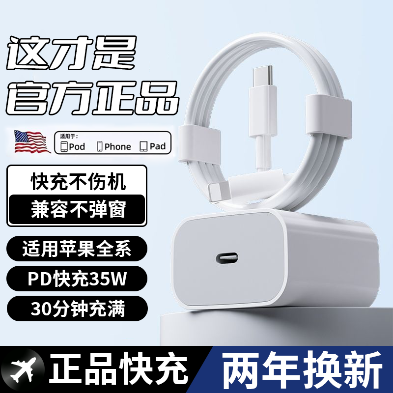 适用苹果充电线充电头PD35WiPhone14/13/11/12/x/8通用数据线套装