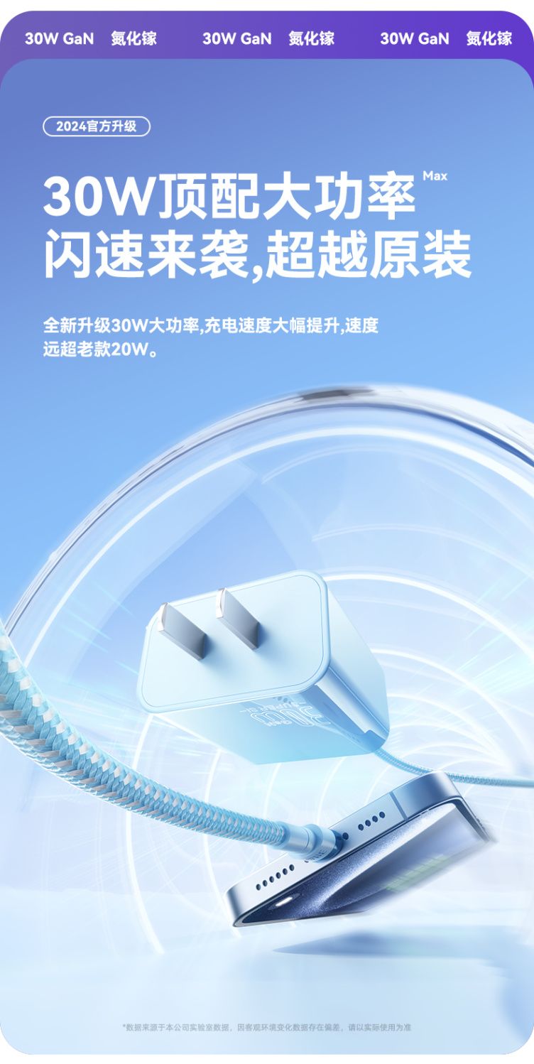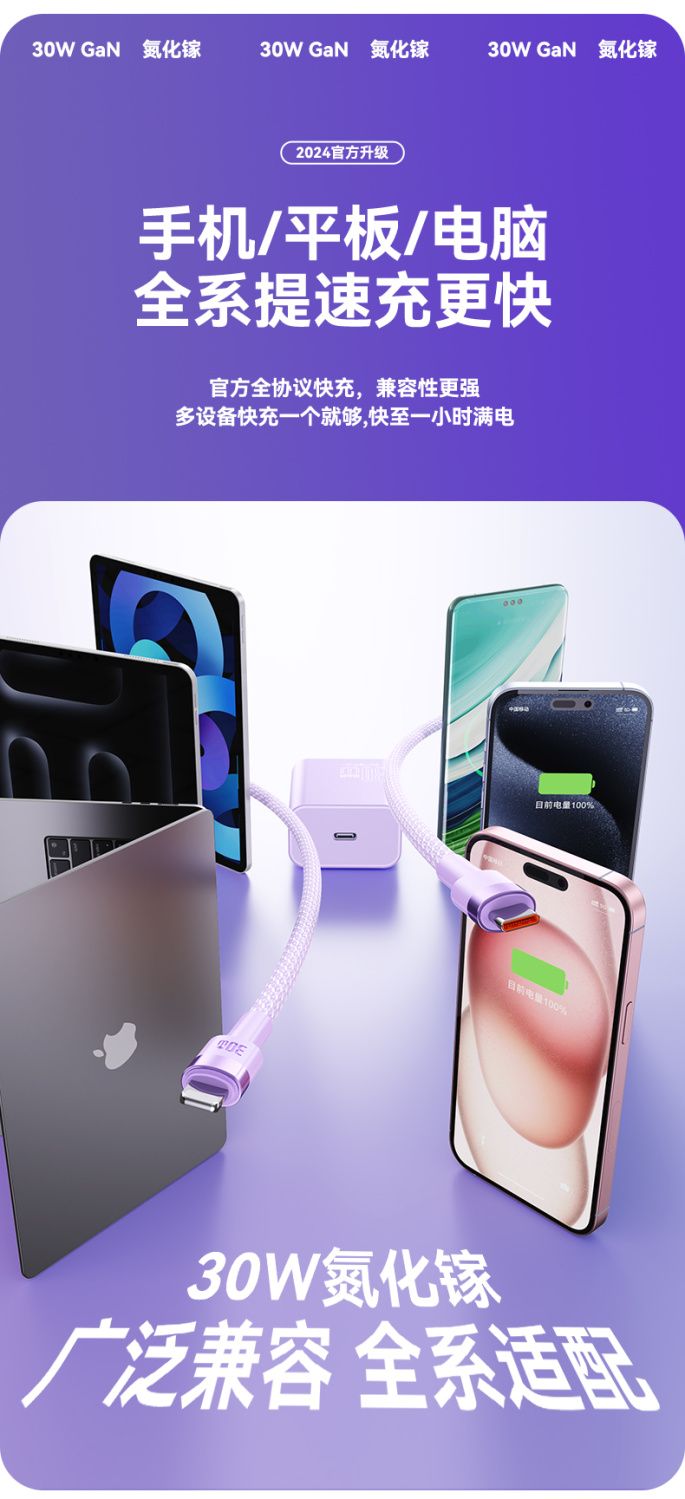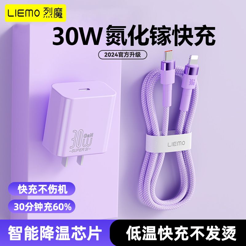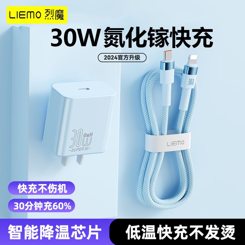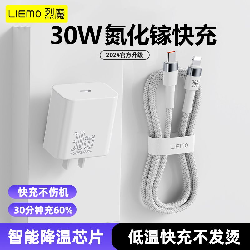 烈魔30w氮化镓适用苹果14充电器头iPhone12闪充数据线13pro平板11