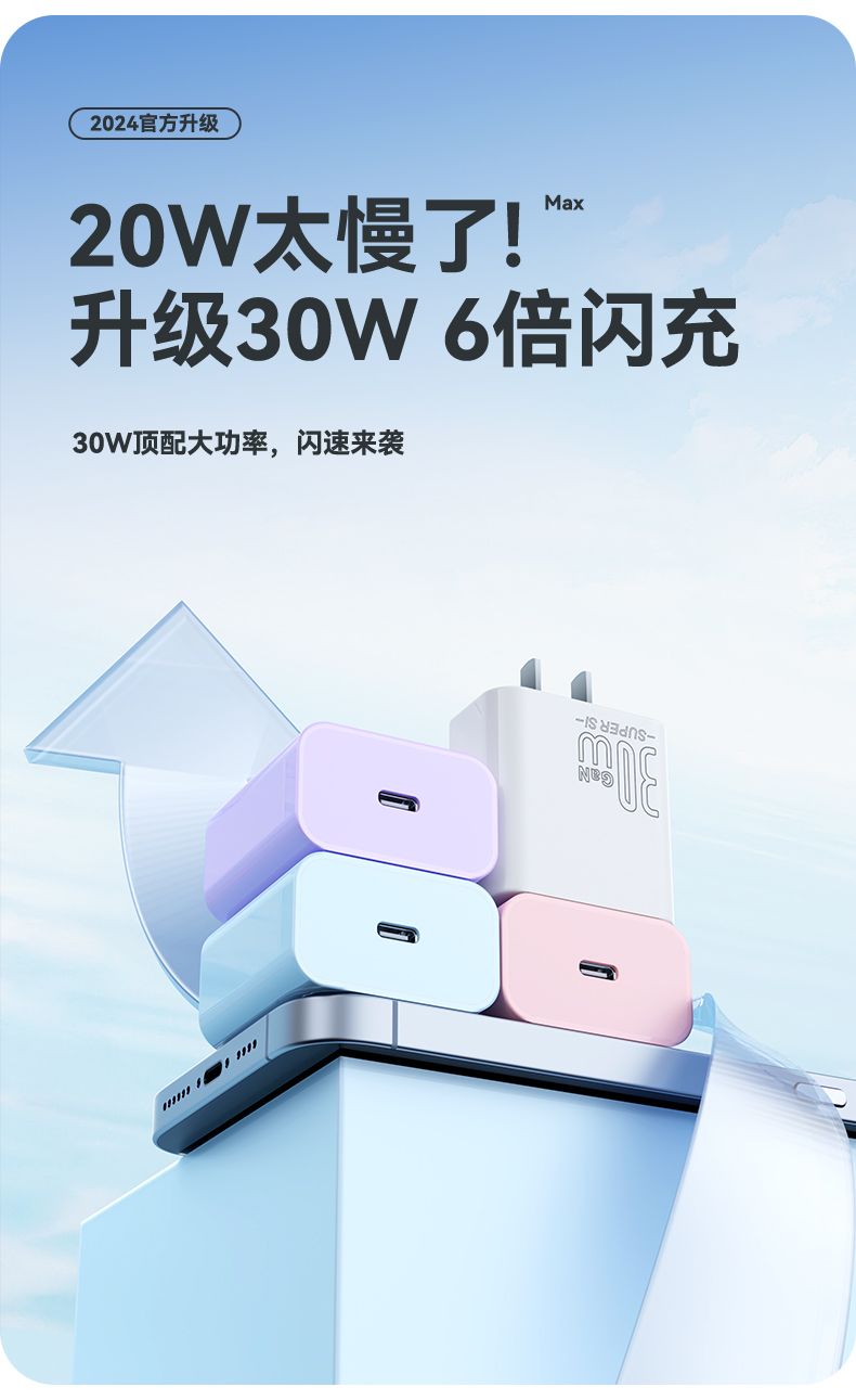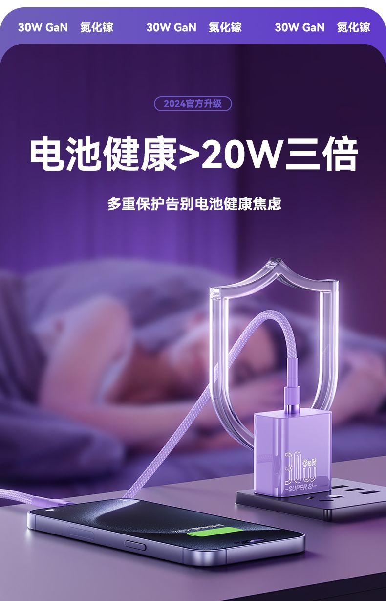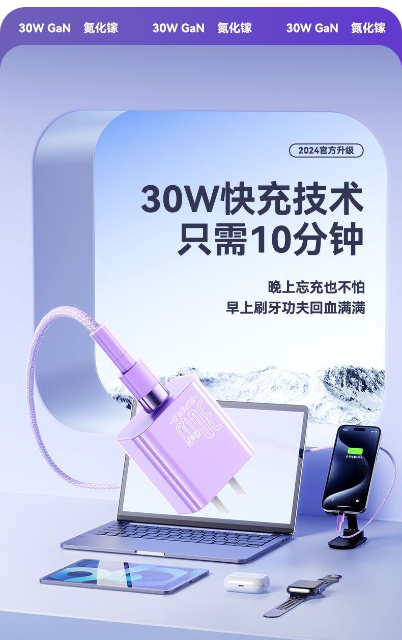 烈魔30w氮化镓适用苹果14充电器头iPhone12闪充数据线13pro平板11