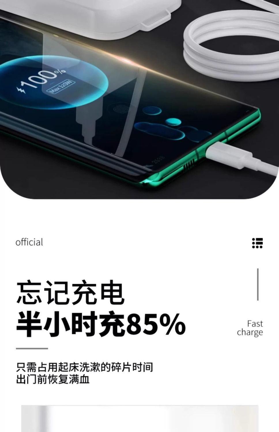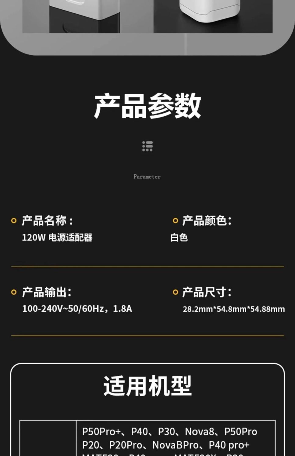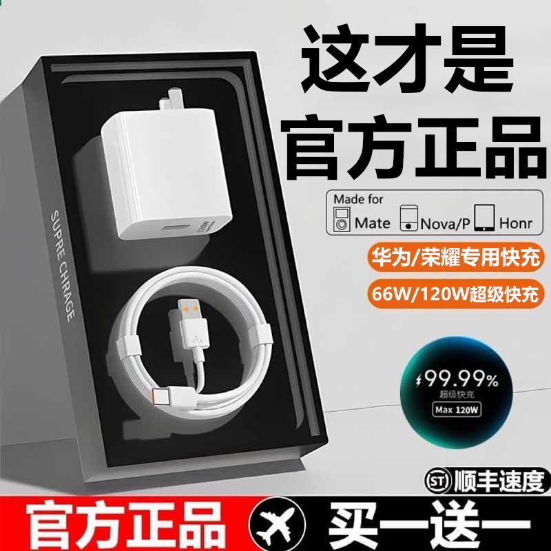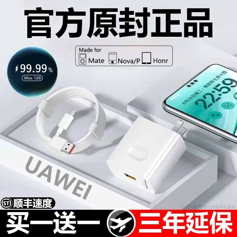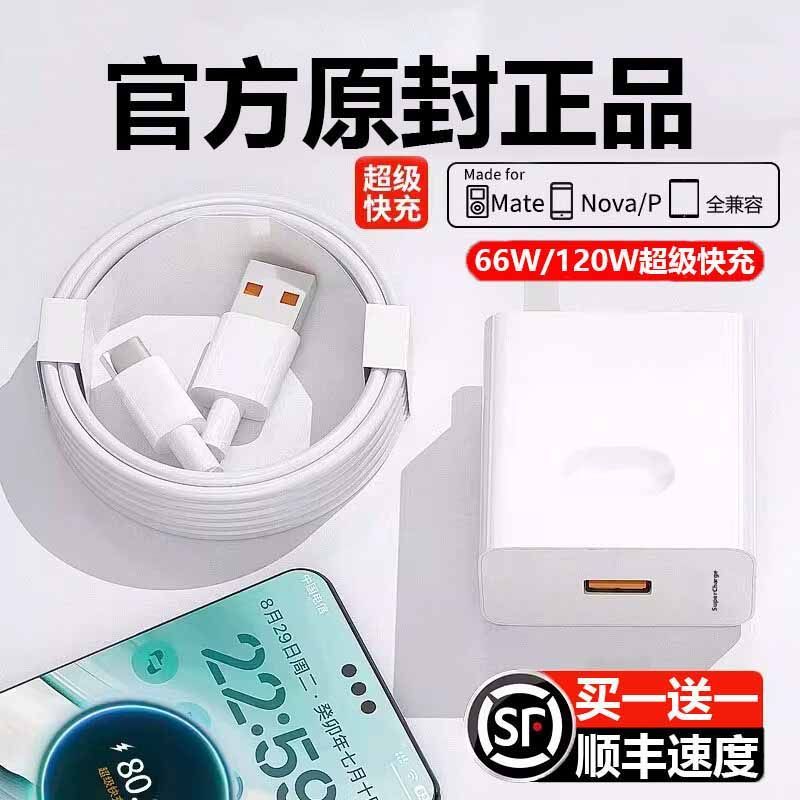 120W超级快充头适用华为充电器mate60/P40pro手机数据线荣耀nova+