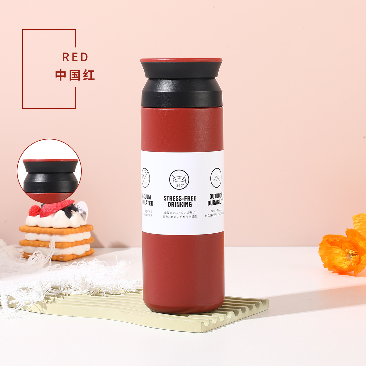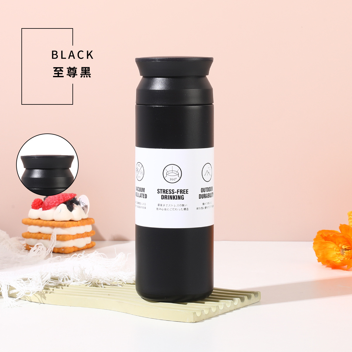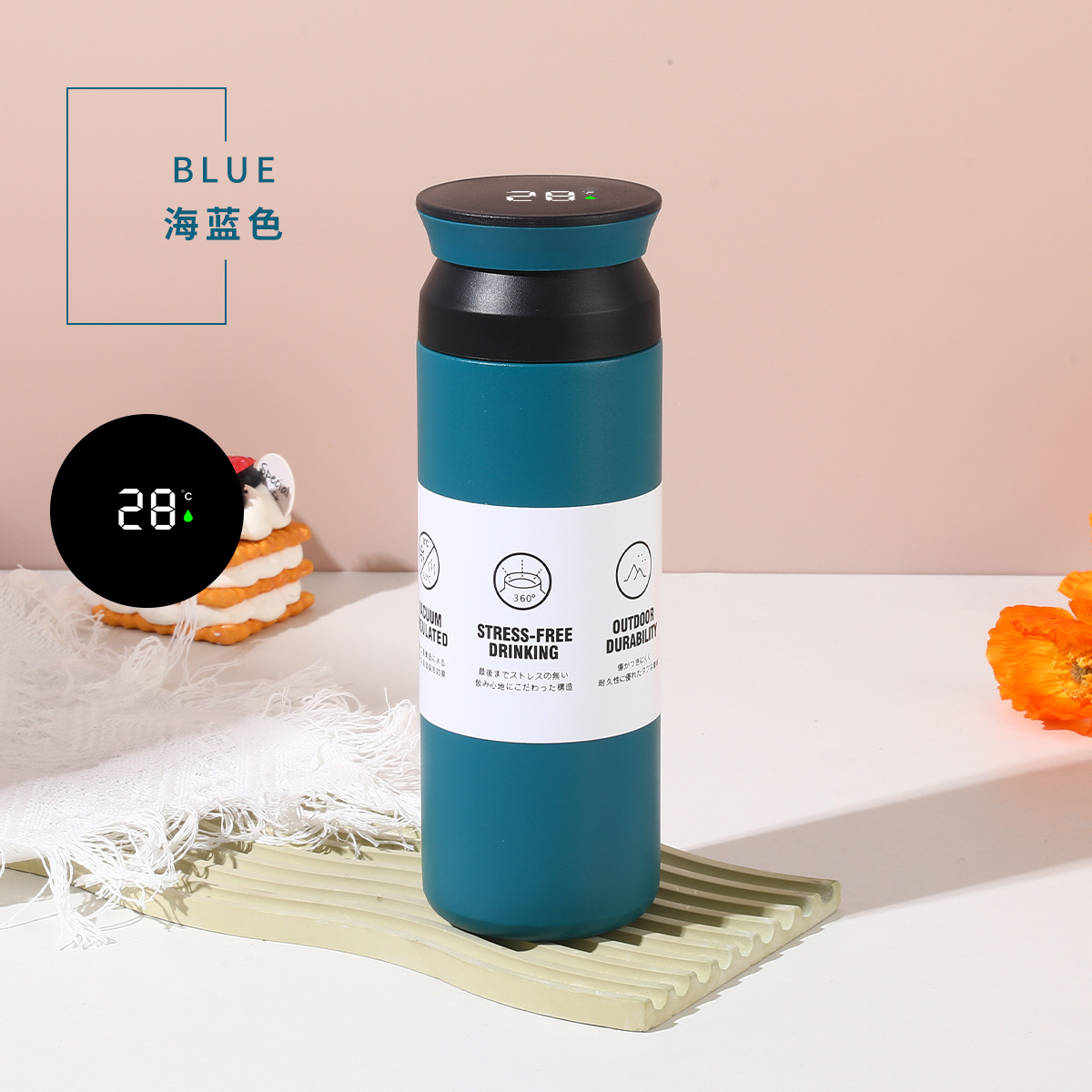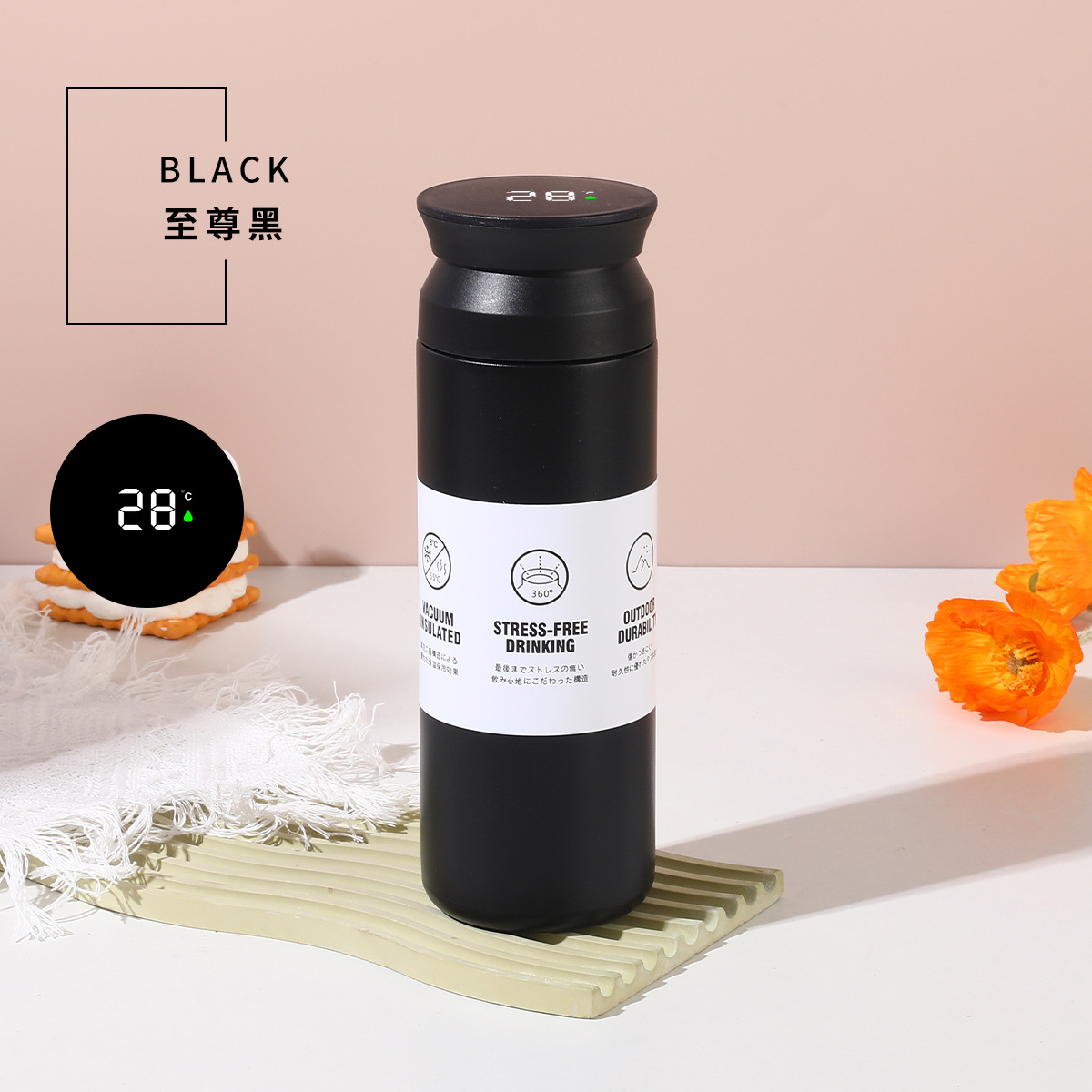 新款创意手提简约元素杯304不锈钢双层保温杯智能平盖温显随手杯