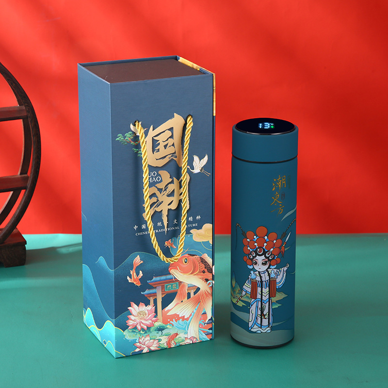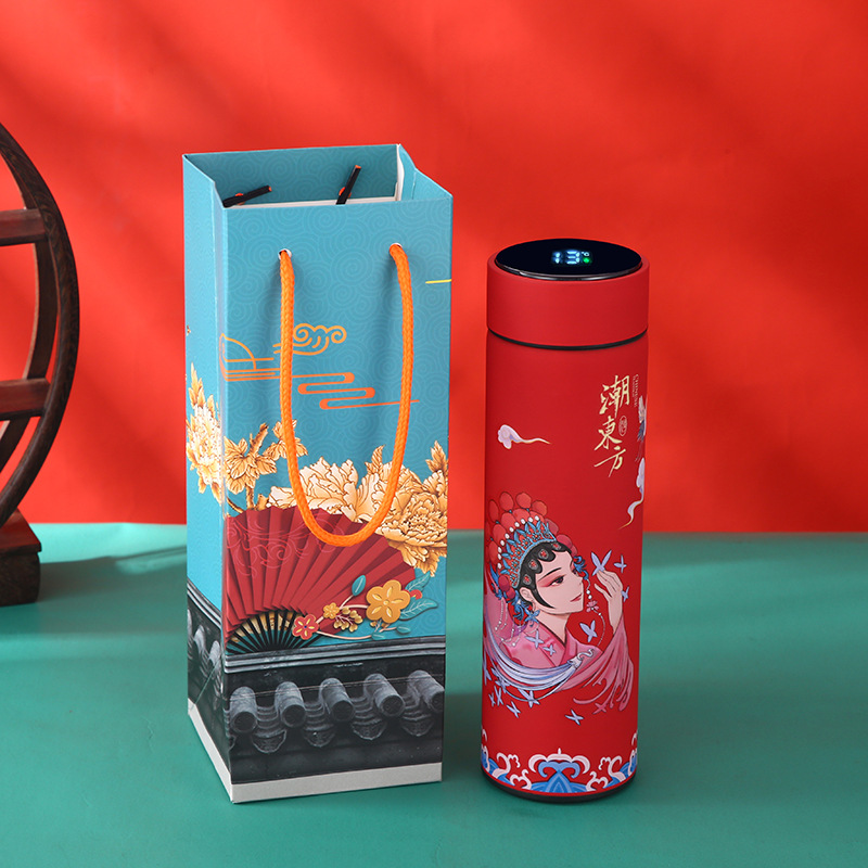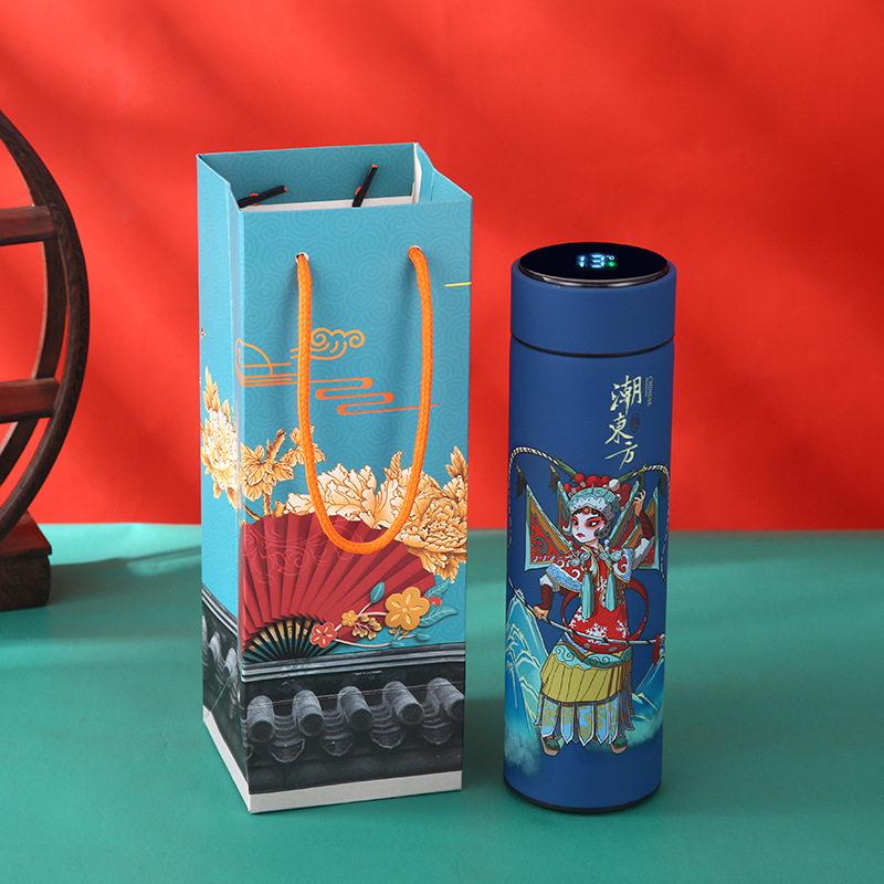 京剧国潮智能保温杯双层真空智能温度杯中国风保温礼品杯套装批发