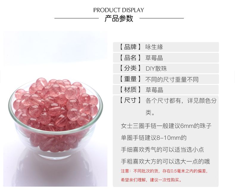 | 6a ice strawberry crystal 10mm [19 pcs]](6A冰种草莓晶10mm【19颗】) | USD $5.66 | 99999 piece available |