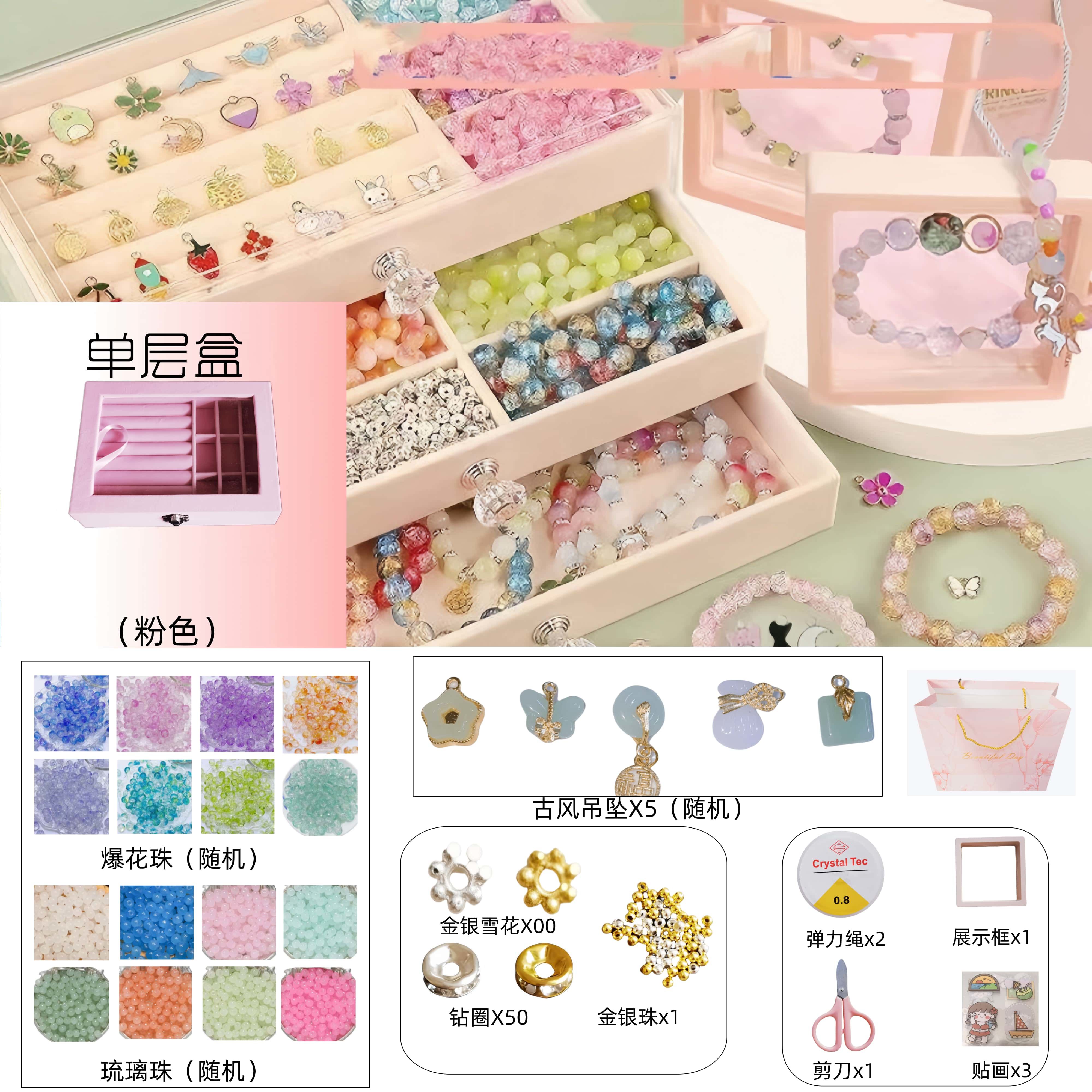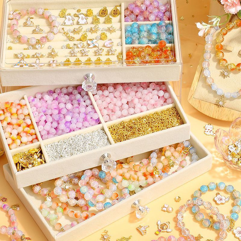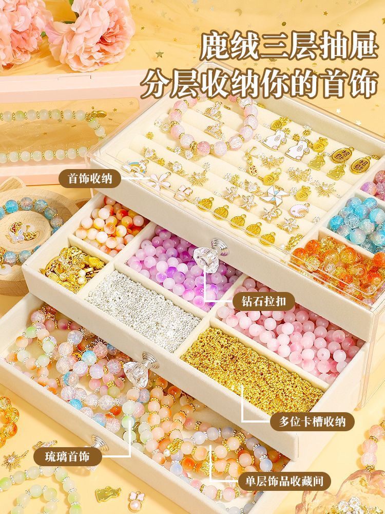 串珠套装新款水晶琉璃珠diy手工玩具材料女孩子项链手链益智玩具